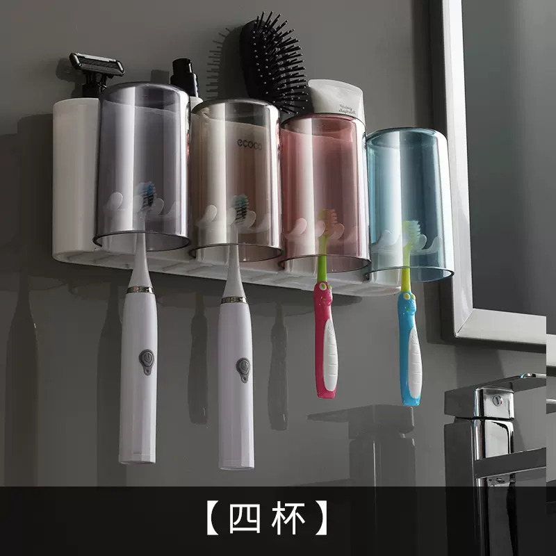 壁挂牙刷架卫生间免打孔牙膏牙刷收纳置物架透明漱口杯刷牙杯套装