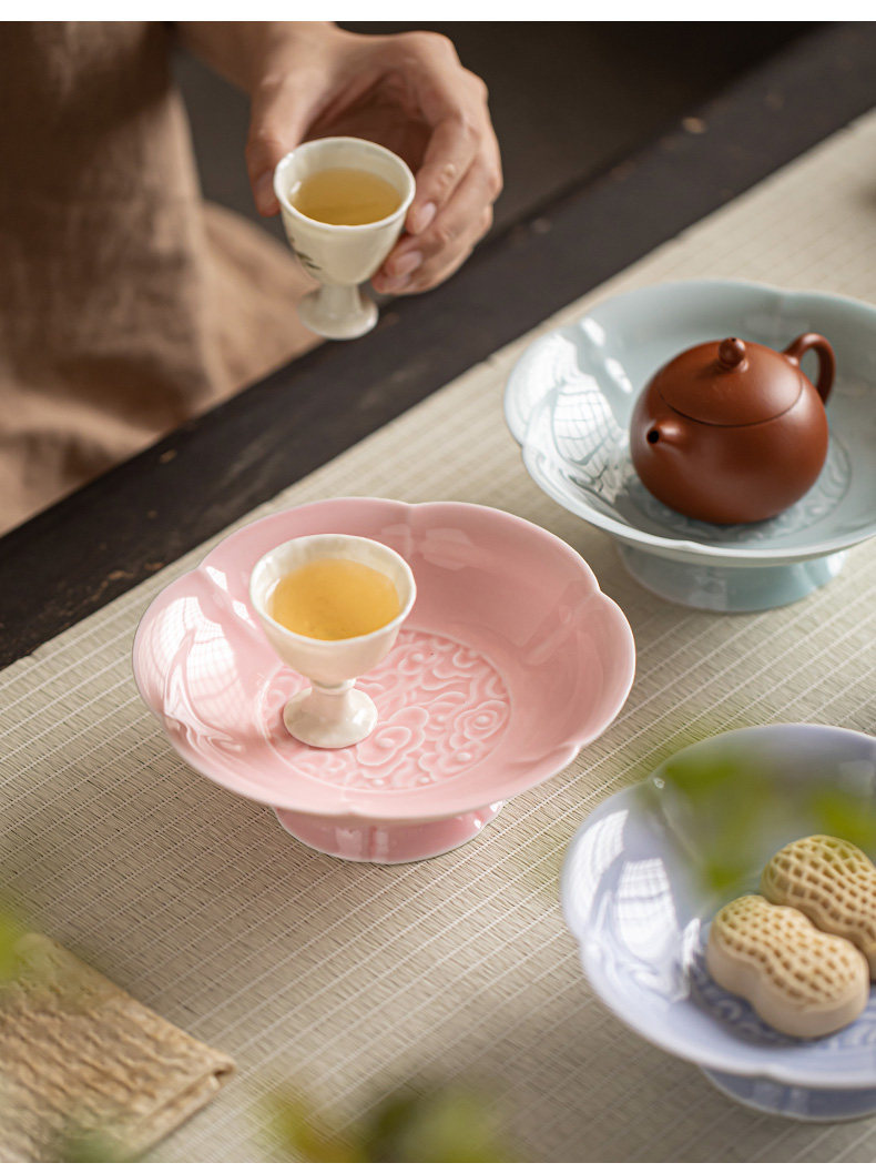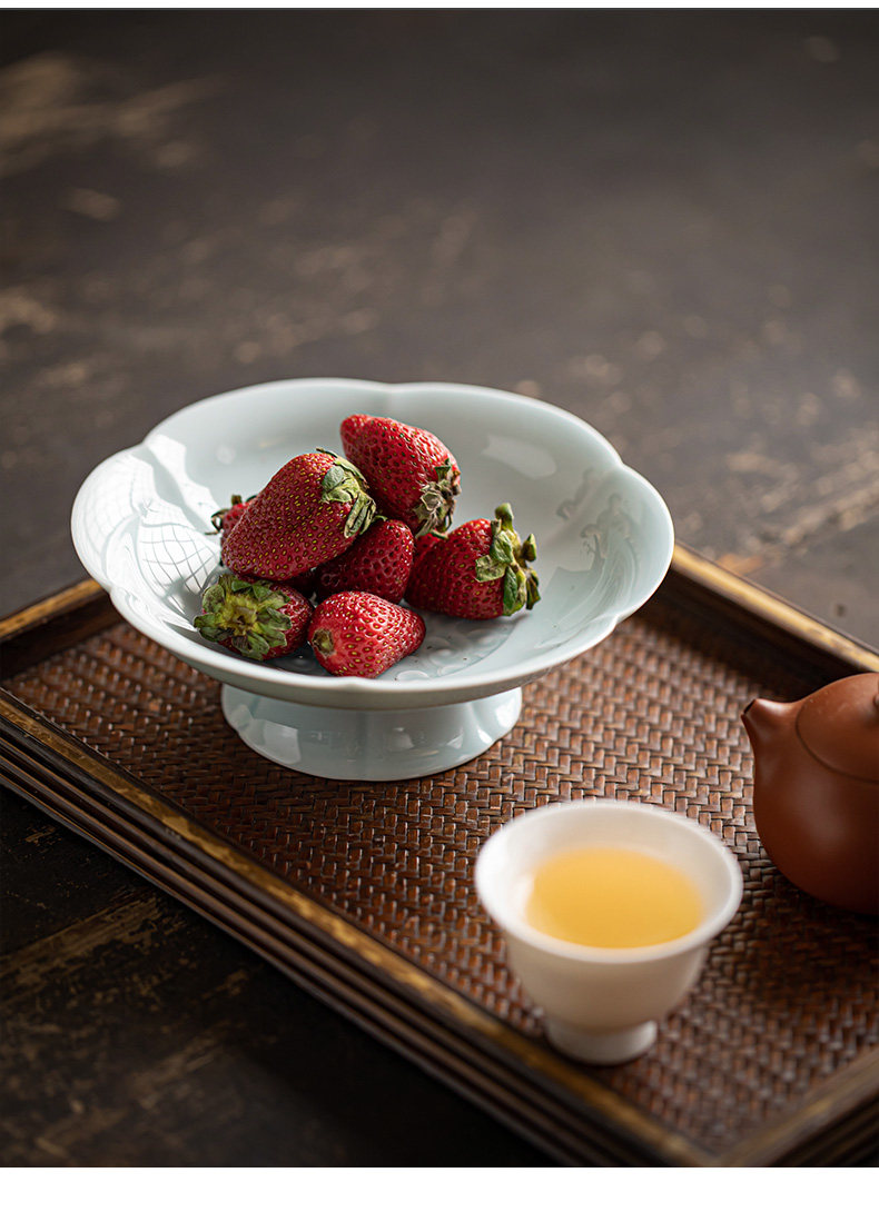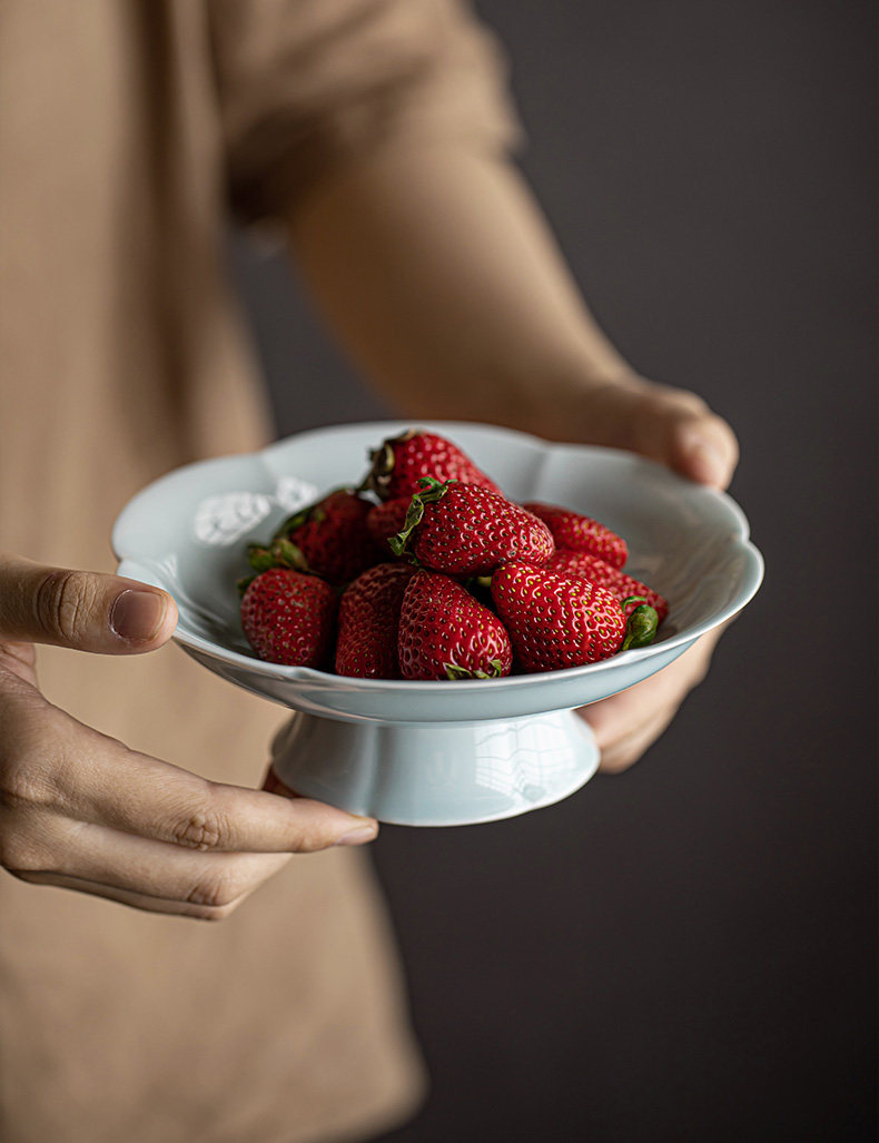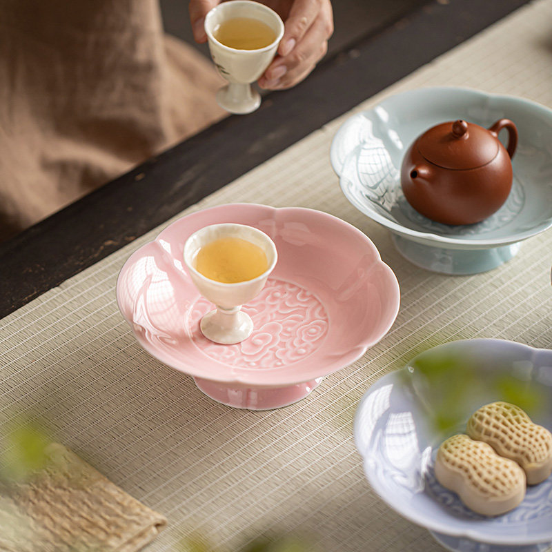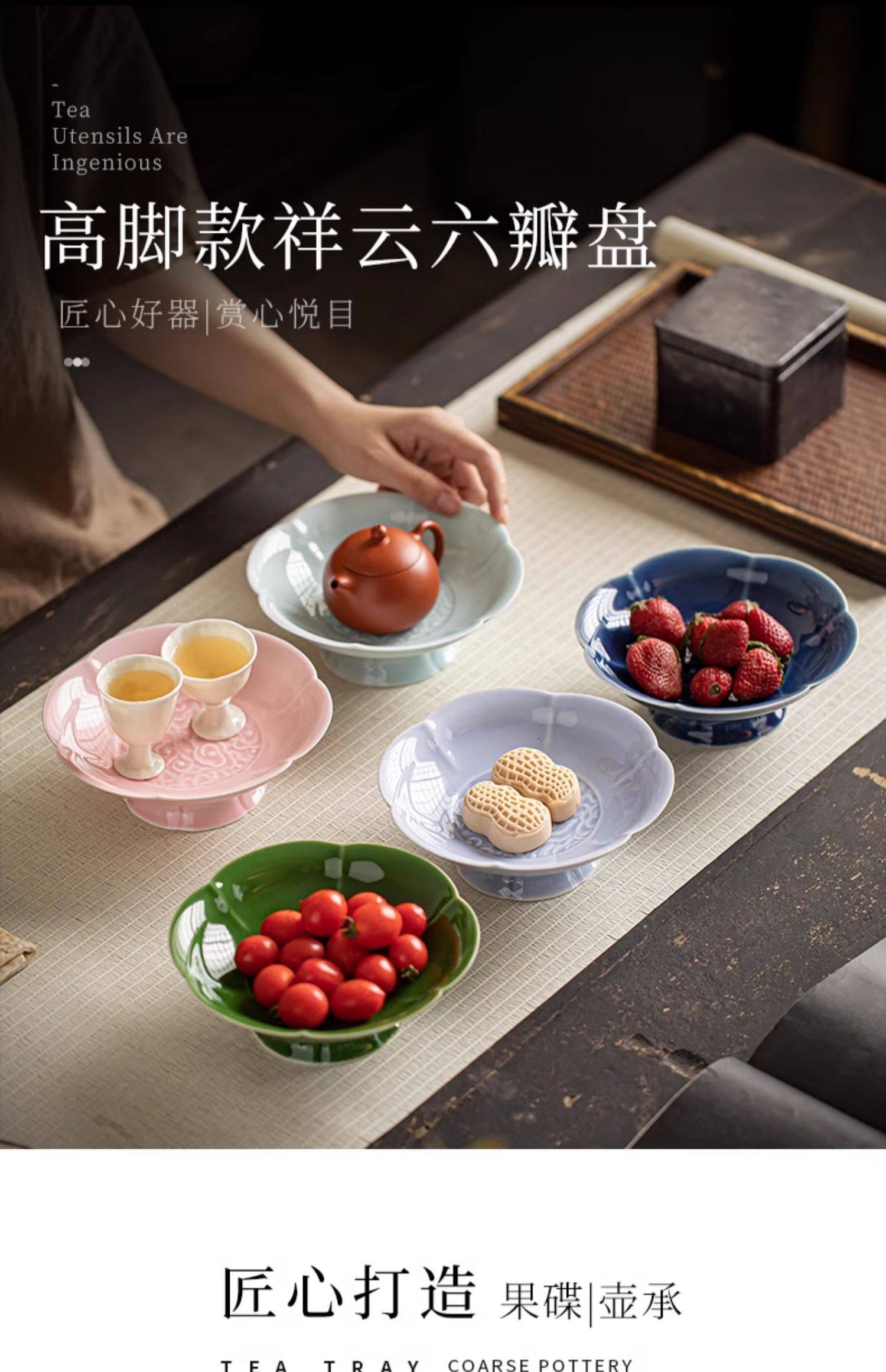 陶瓷高脚水果盘中式高足茶点盘家用点心碟子供佛盘干果盘订婚摆台