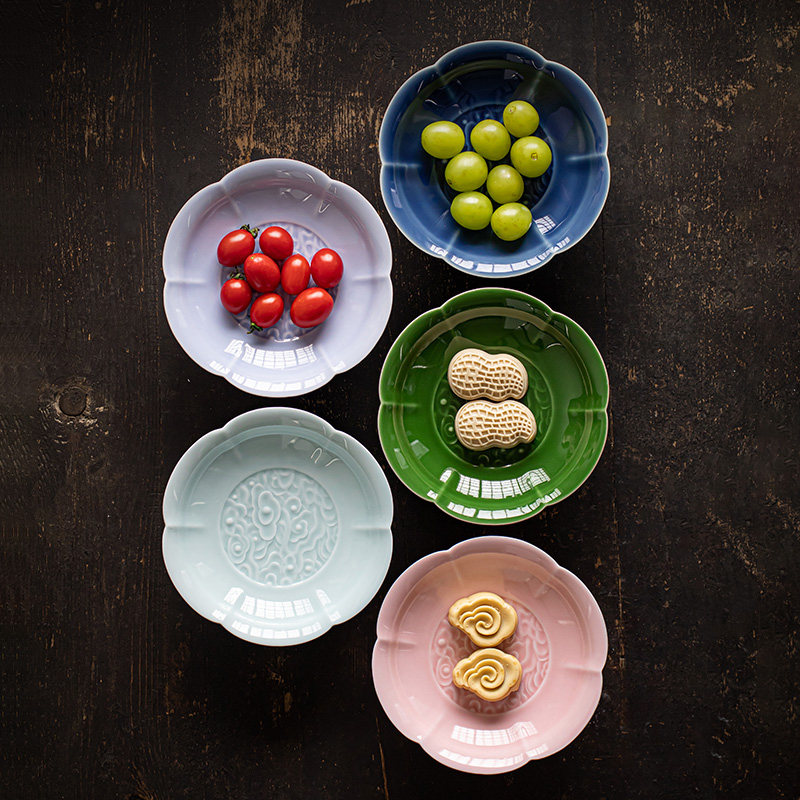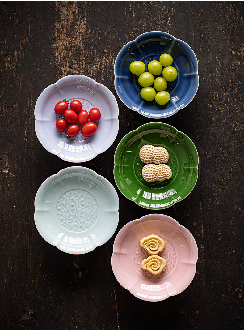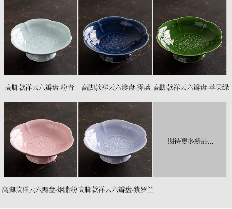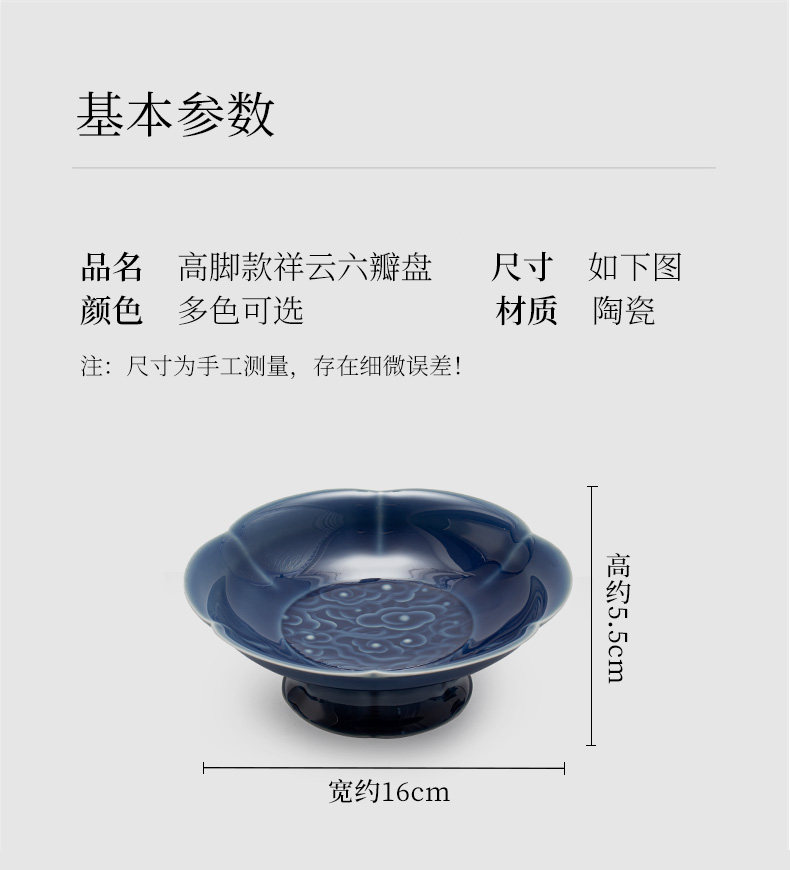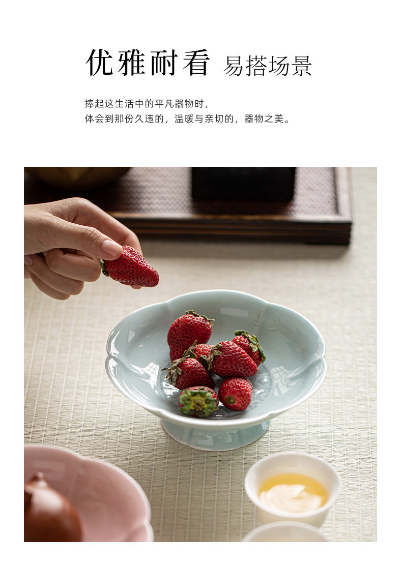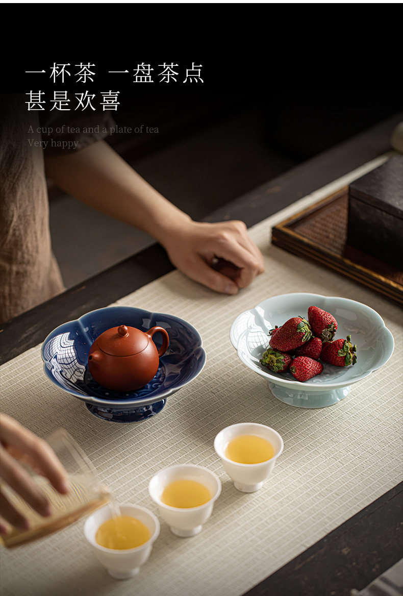 陶瓷高脚水果盘中式高足茶点盘家用点心碟子供佛盘干果盘订婚摆台