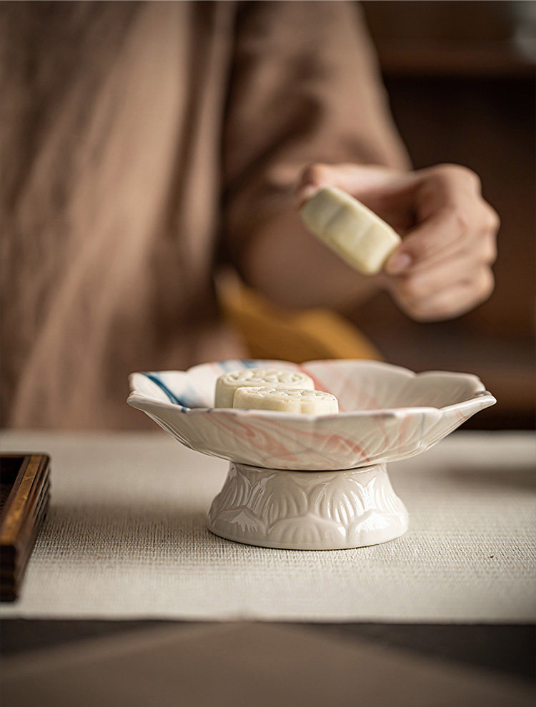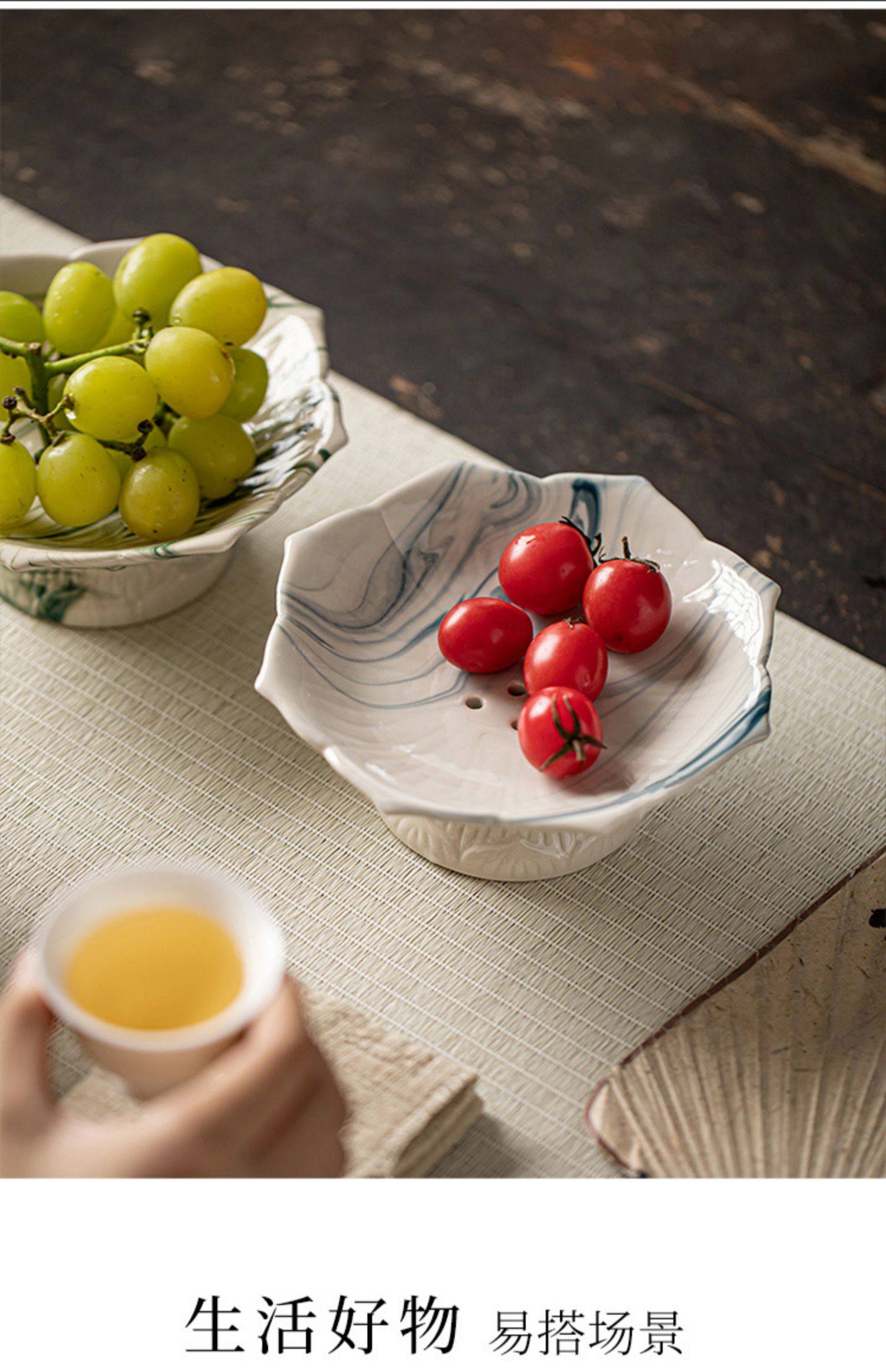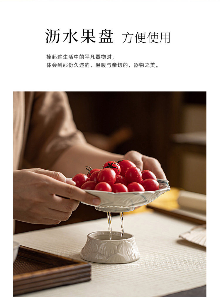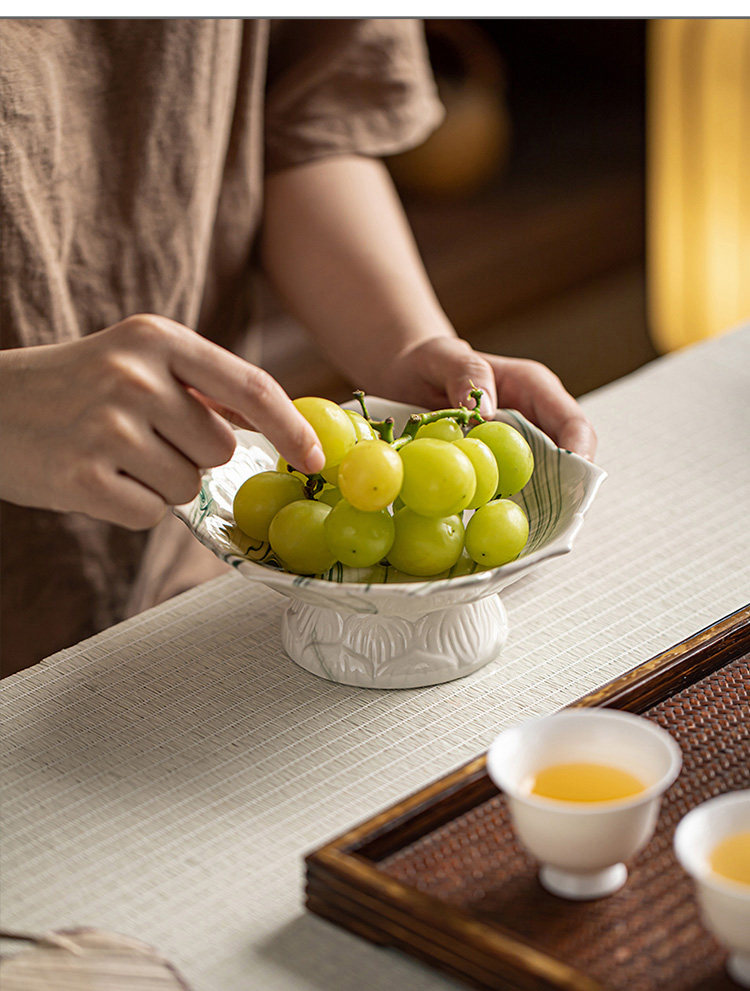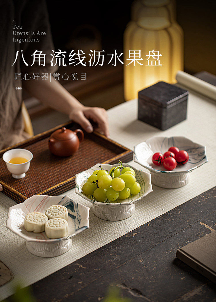中式复古高脚沥水果盘陶瓷茶点盘精致点心干果盘家用禅意供佛托盘