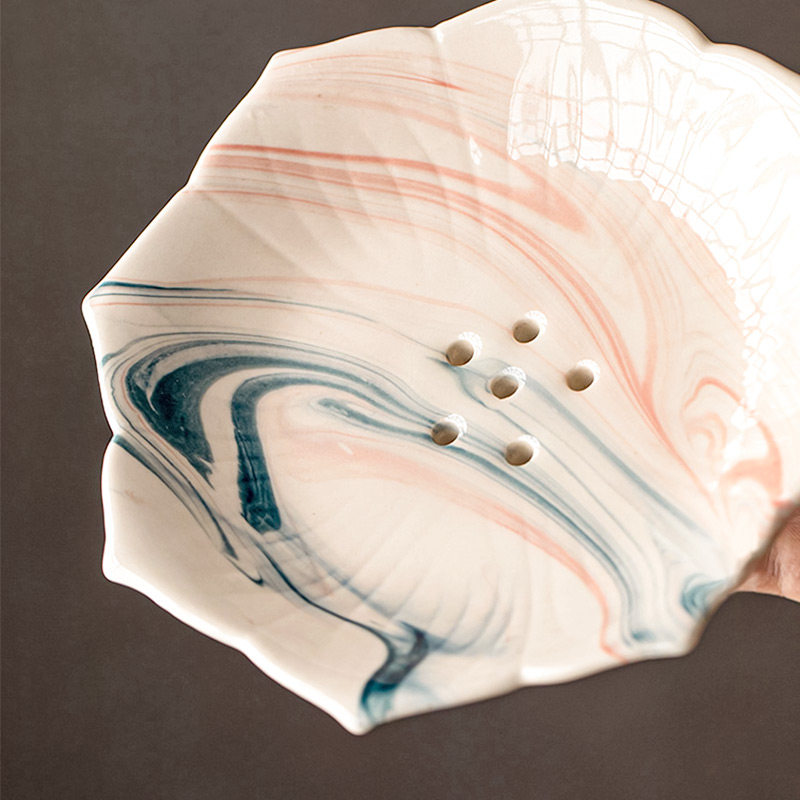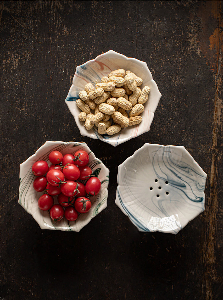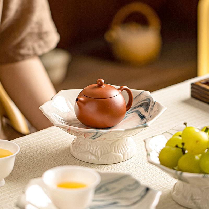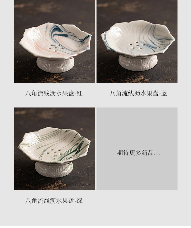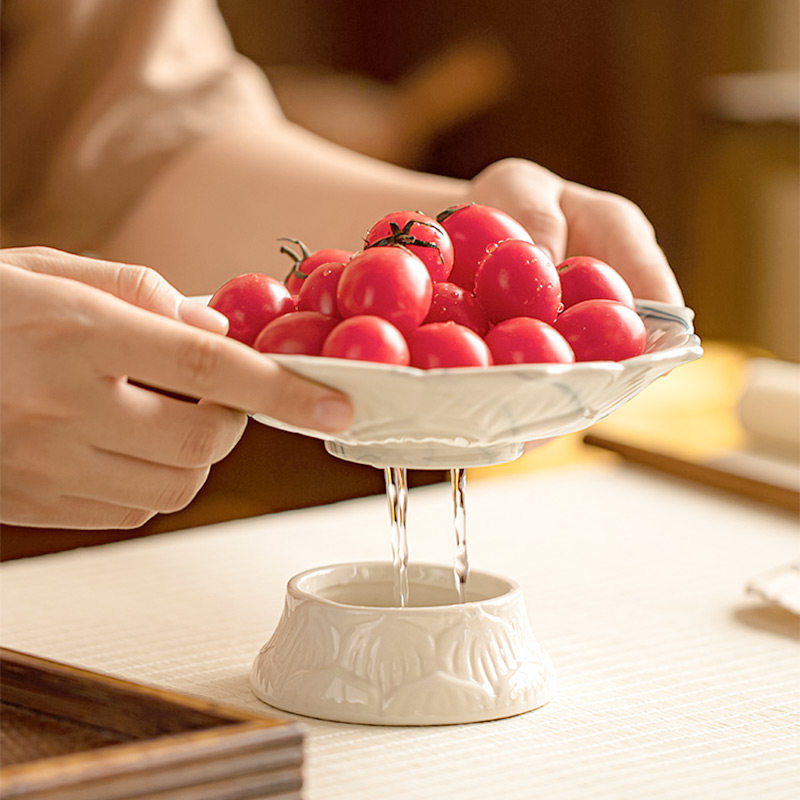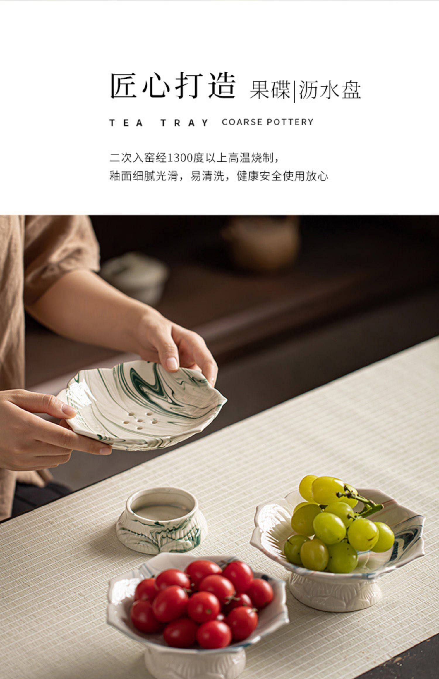 中式复古高脚沥水果盘陶瓷茶点盘精致点心干果盘家用禅意供佛托盘
