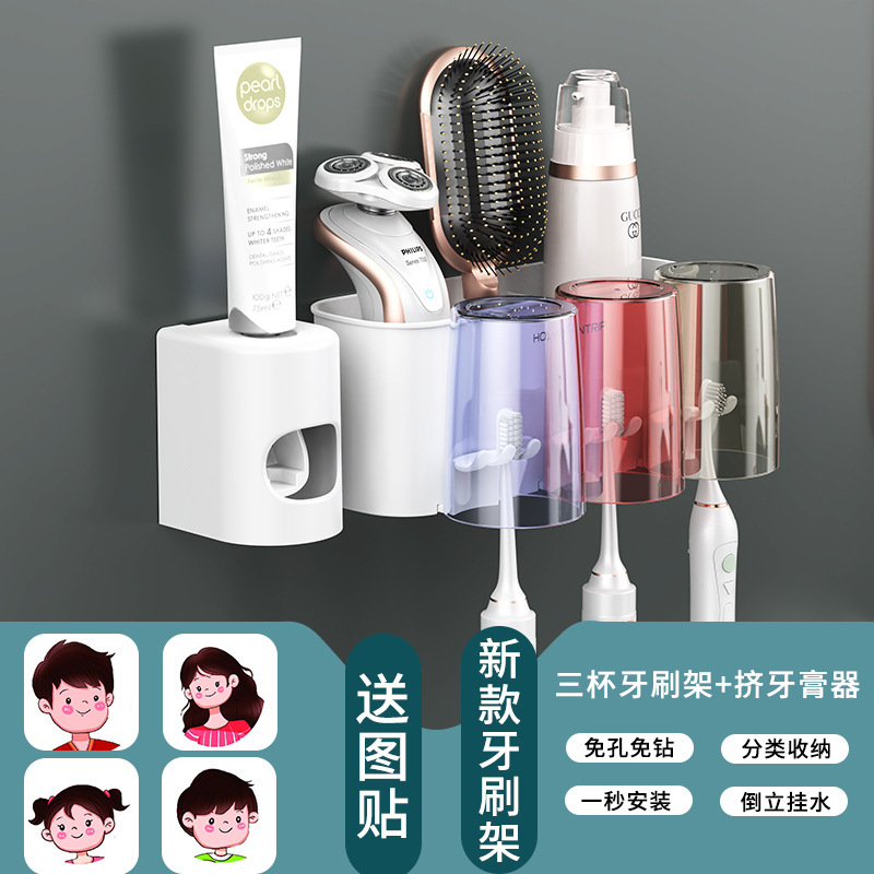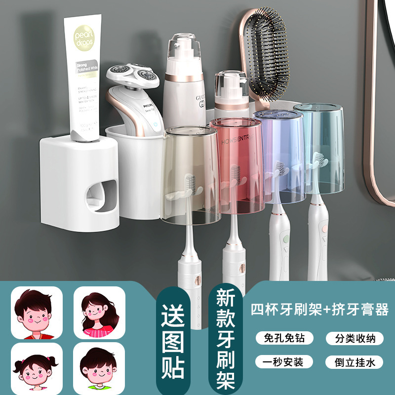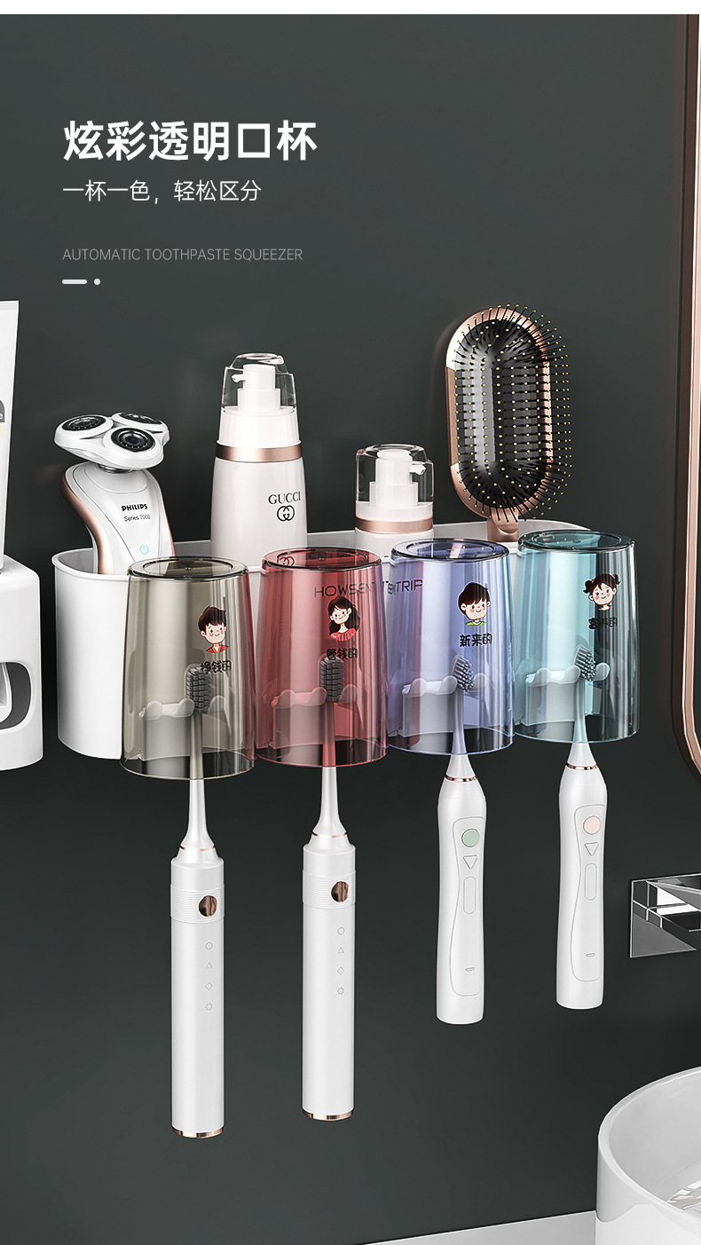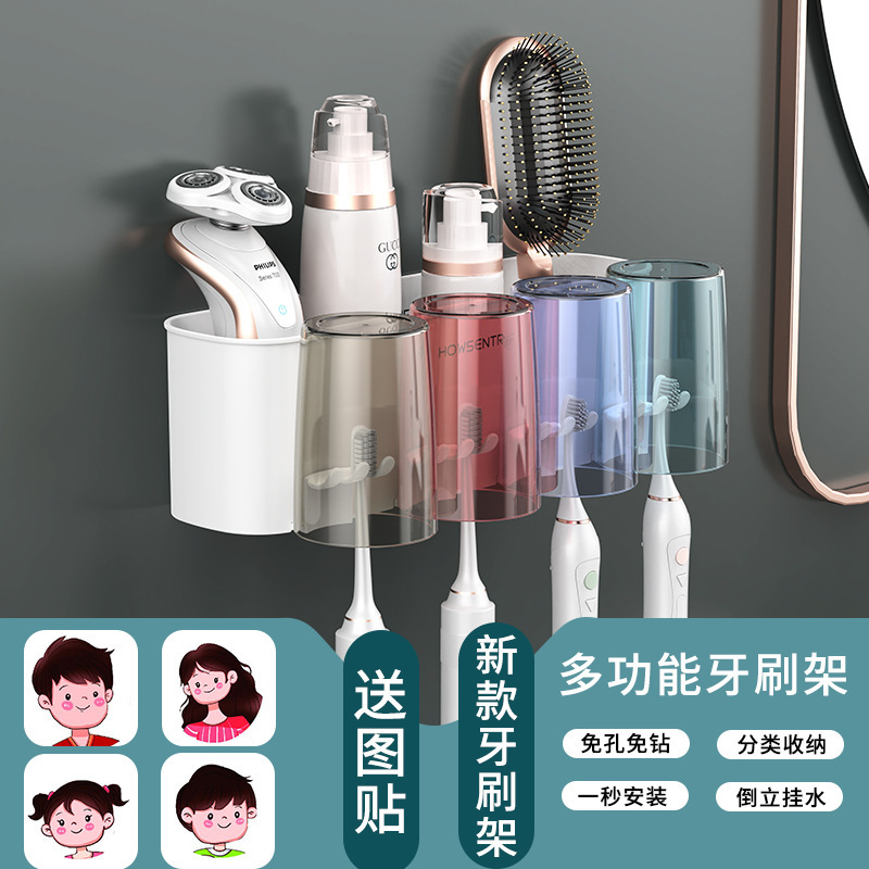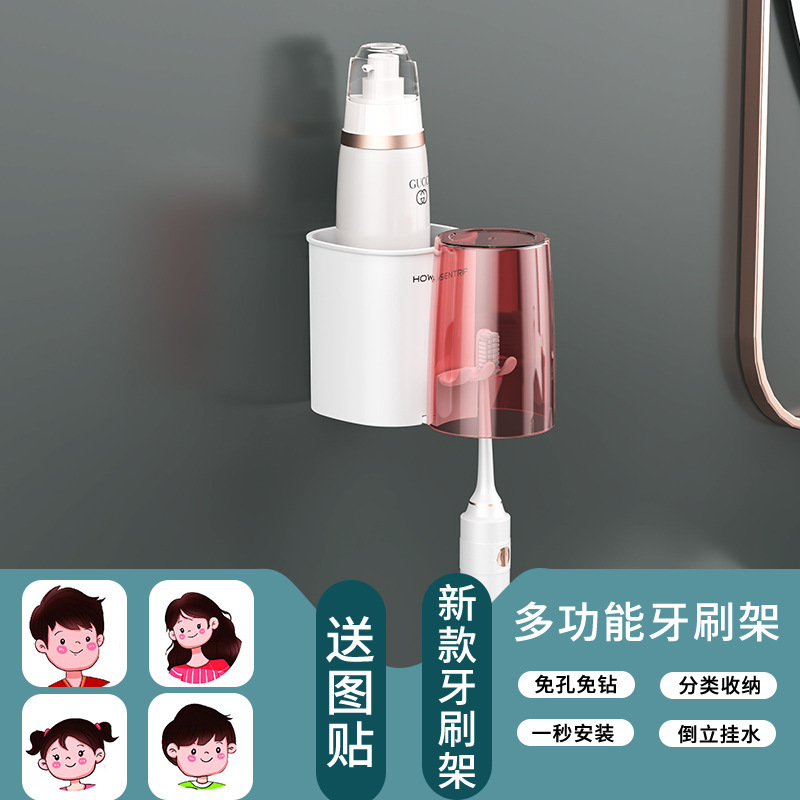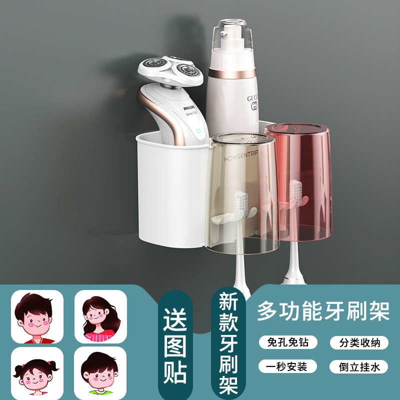牙刷置物架免打孔刷牙杯漱口杯挂墙架子壁挂式卫生间电动家庭套装