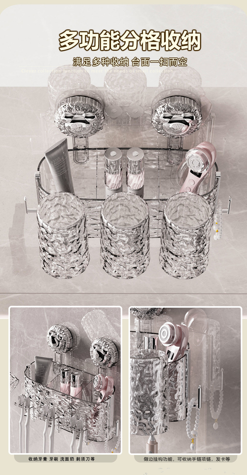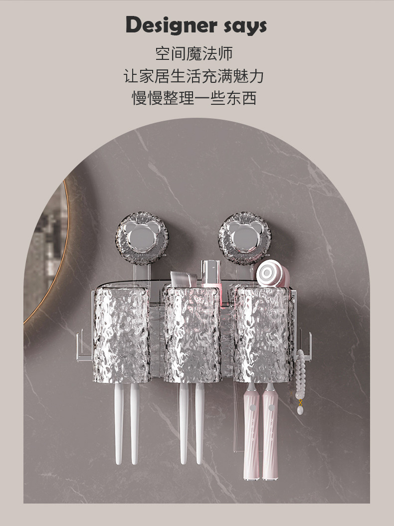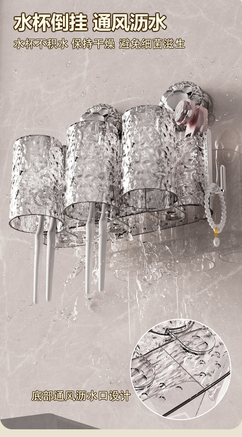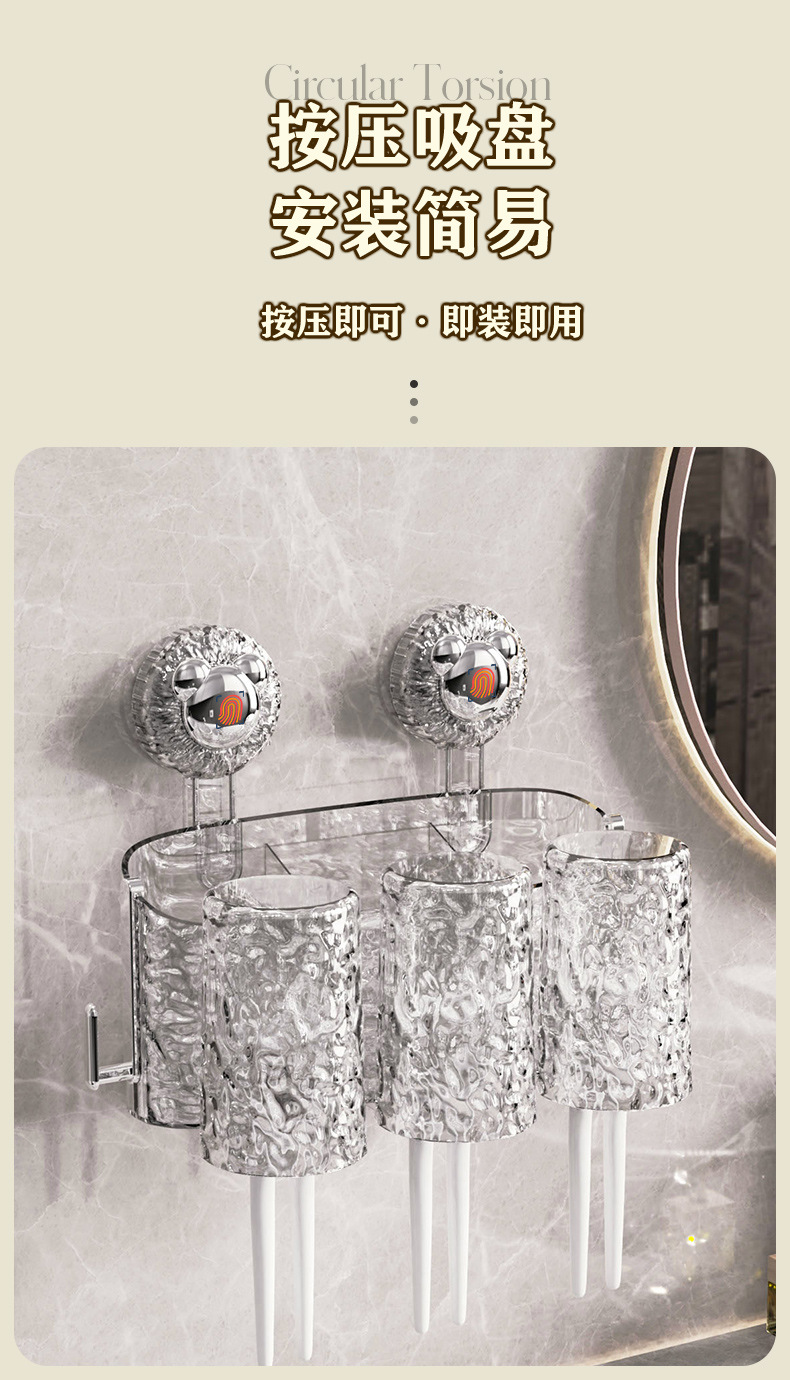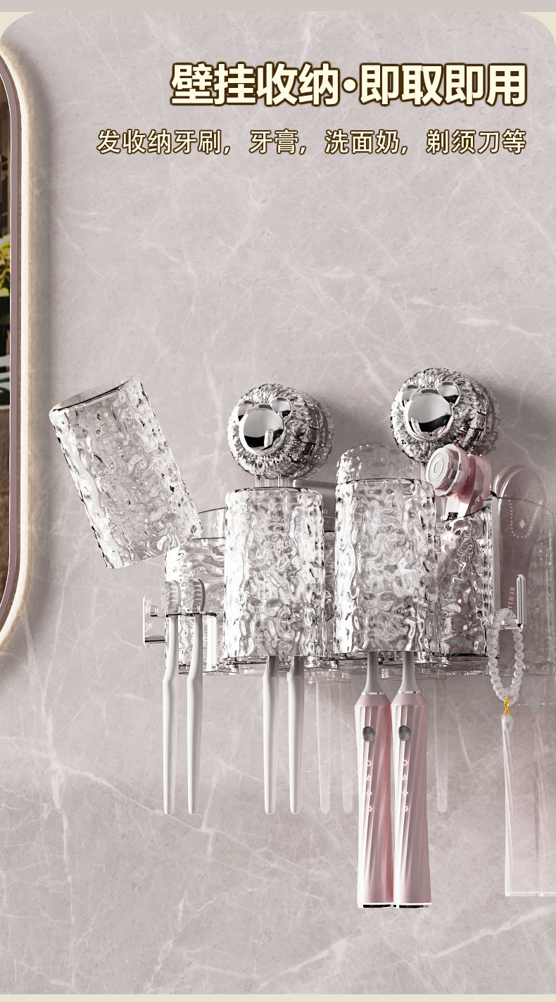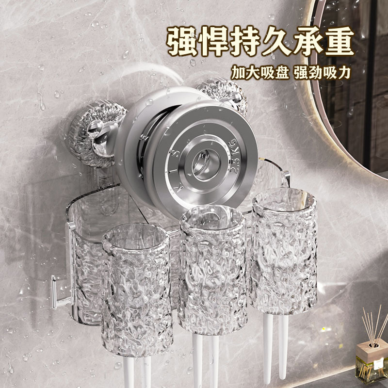 吸盘牙刷置物架壁挂式免打孔卫生间电动牙刷架牙杯漱口杯牙具套装
