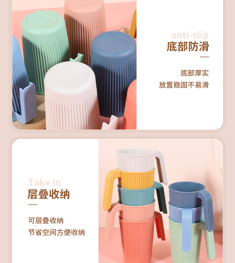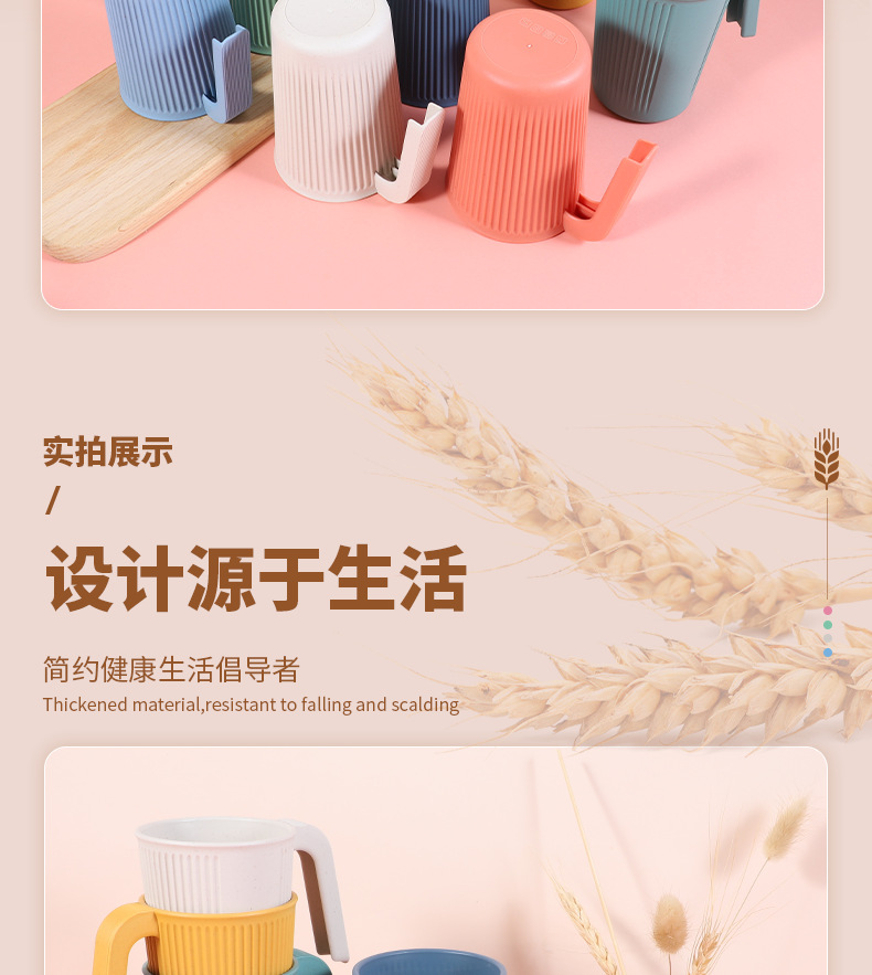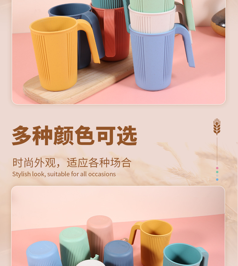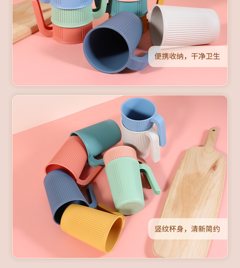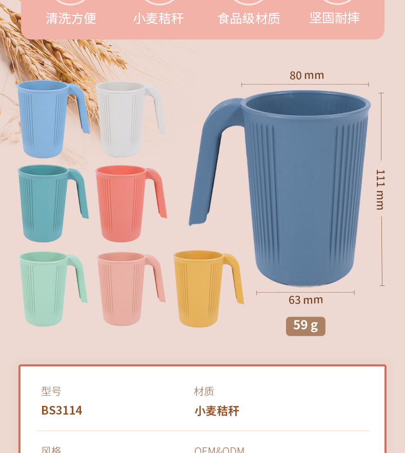 搏顺小麦秸秆漱口杯耐用防摔家用防烫易清洗水杯耐高温印LOGO开业