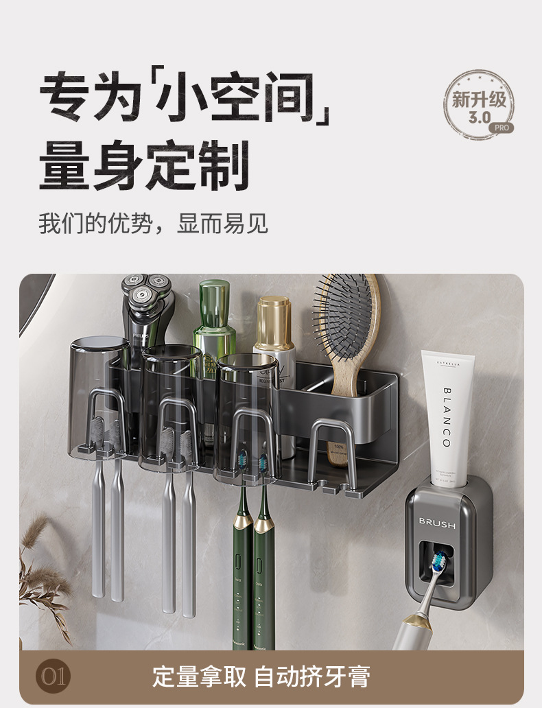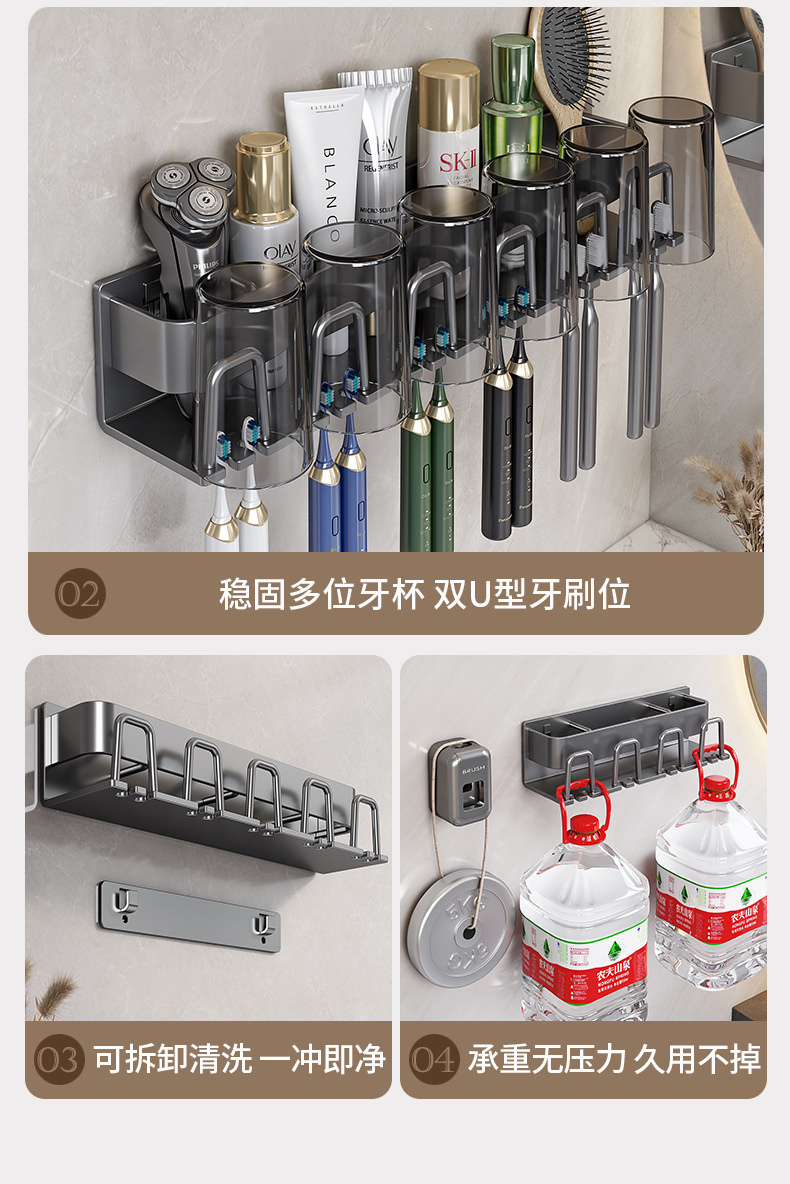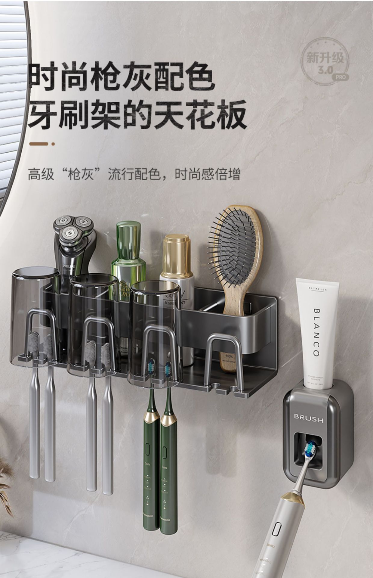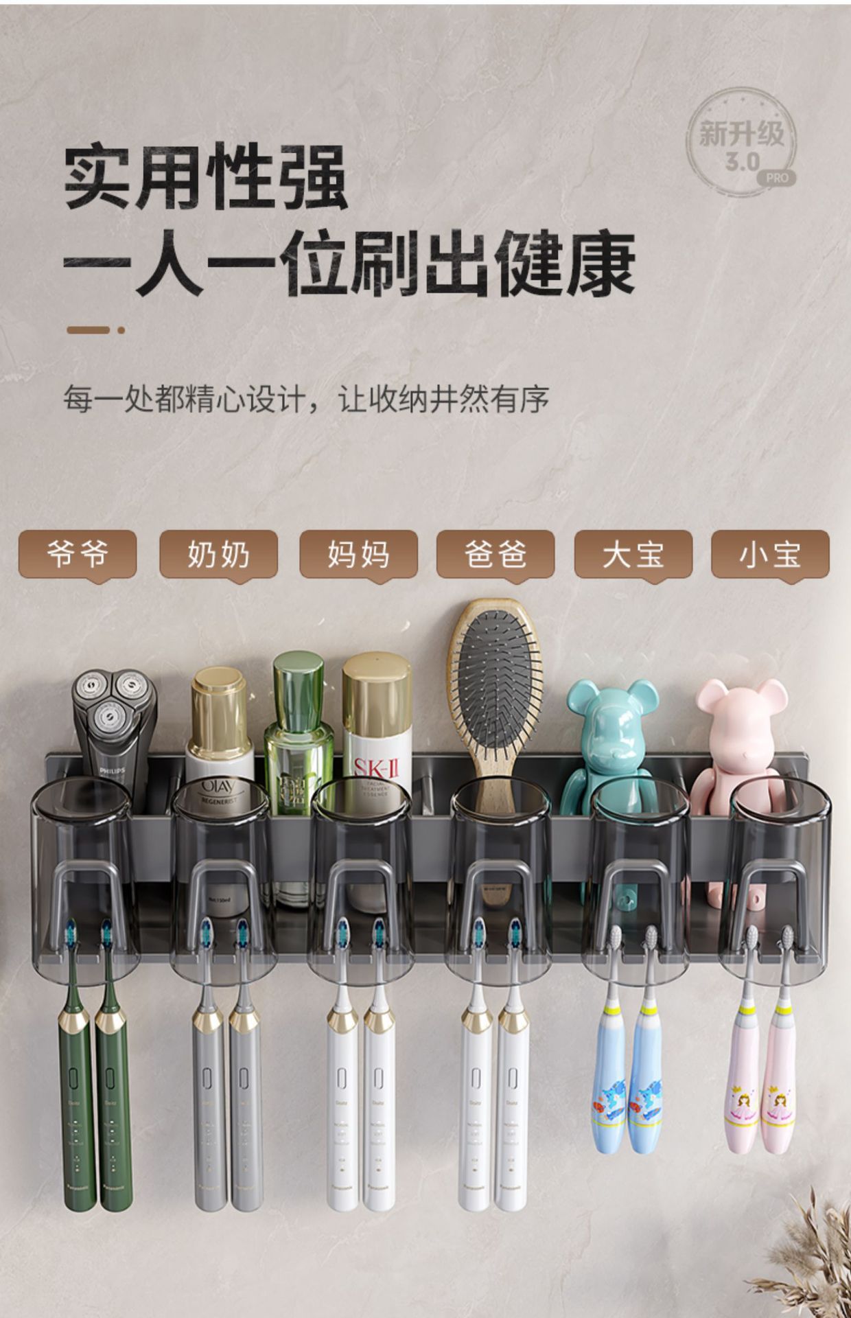 电动牙杯牙膏牙刷架子置物架家用套装免打孔卫生间浴室漱口杯壁挂