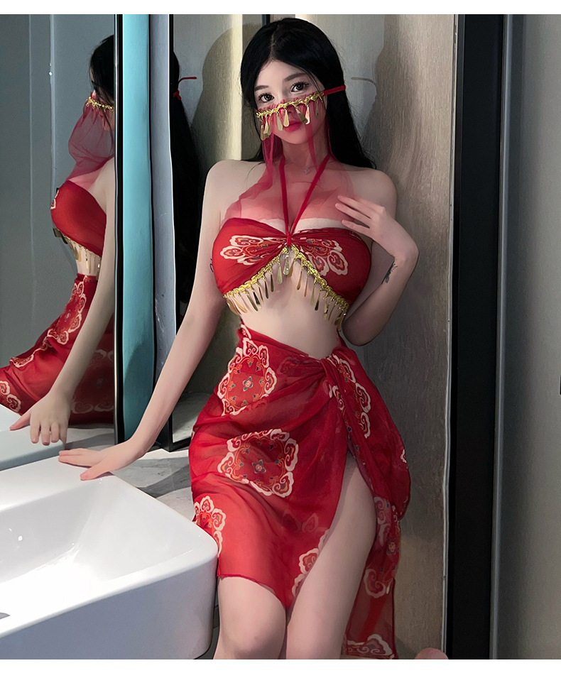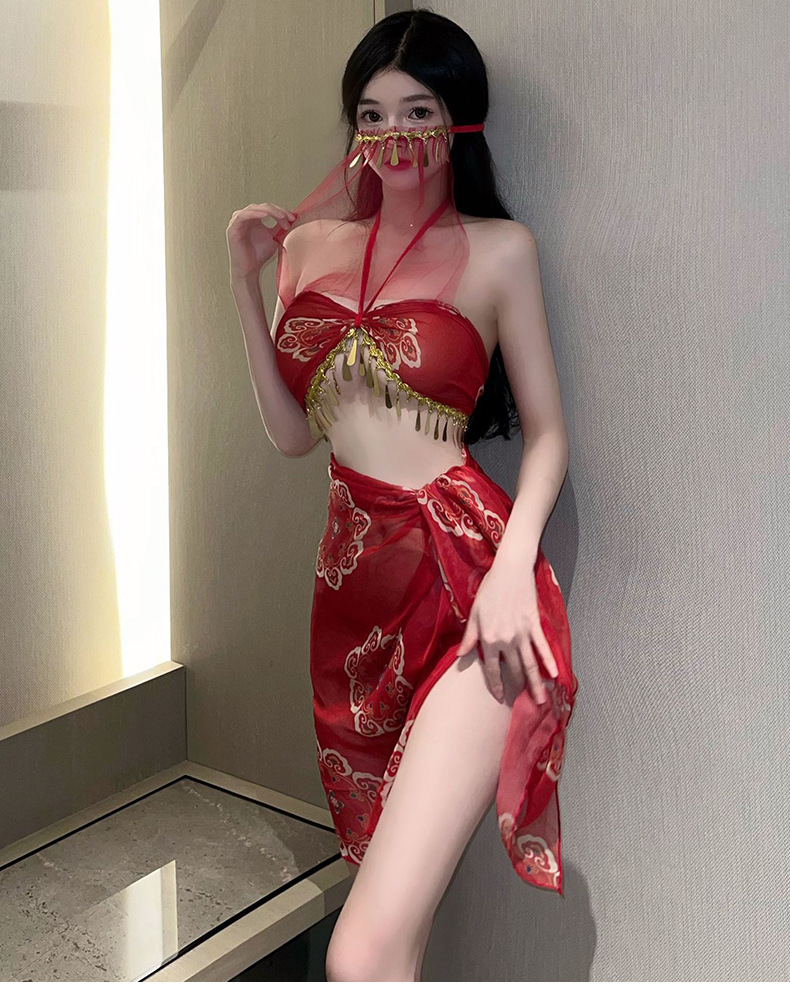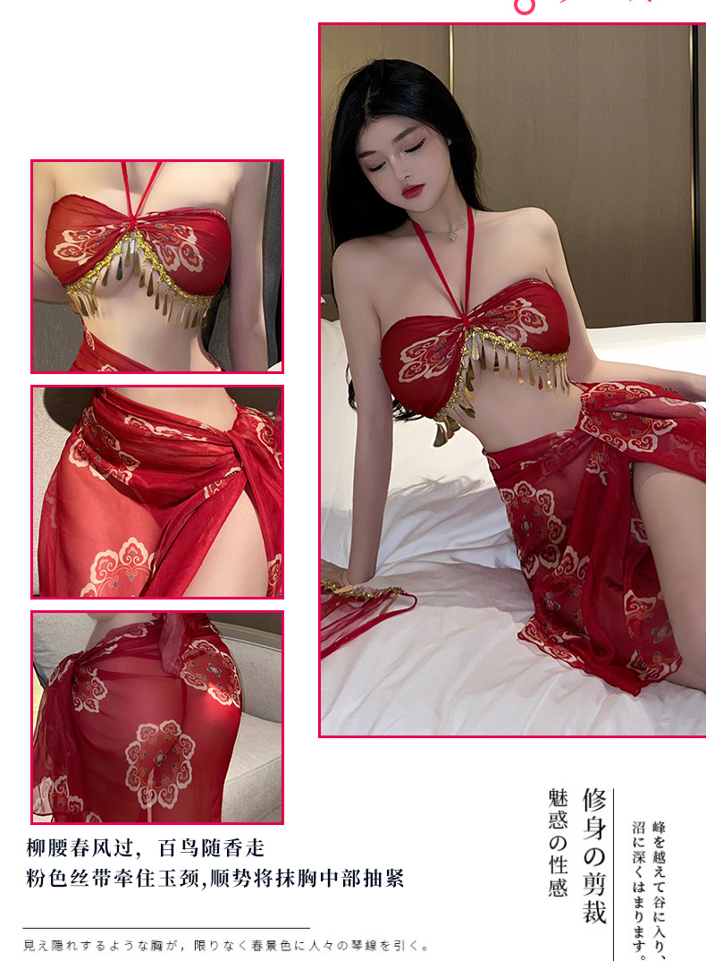 sexy lingerie cheongsam high slit sexy suit plus size see-through dunhuang ancient style free uniform wu mei niang national style