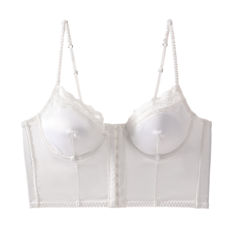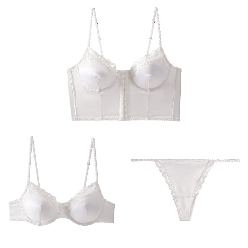 新款法式美背内衣女薄款色丁布蕾丝边纯欲性感前扣文胸衣T裤套装