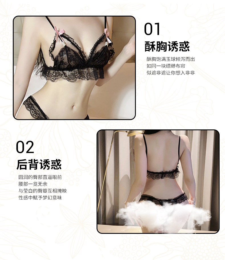 情趣性感内衣三点式蕾丝内裤性感小胸迷人珍珠开档免脱比基尼套装