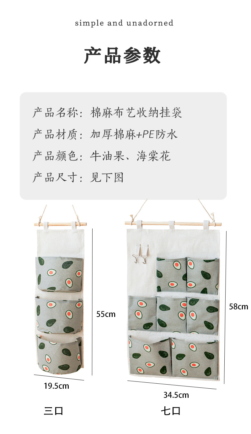 一件代发棉麻布艺家用多功能收纳袋客厅卧室宿舍门后墙壁储物挂袋