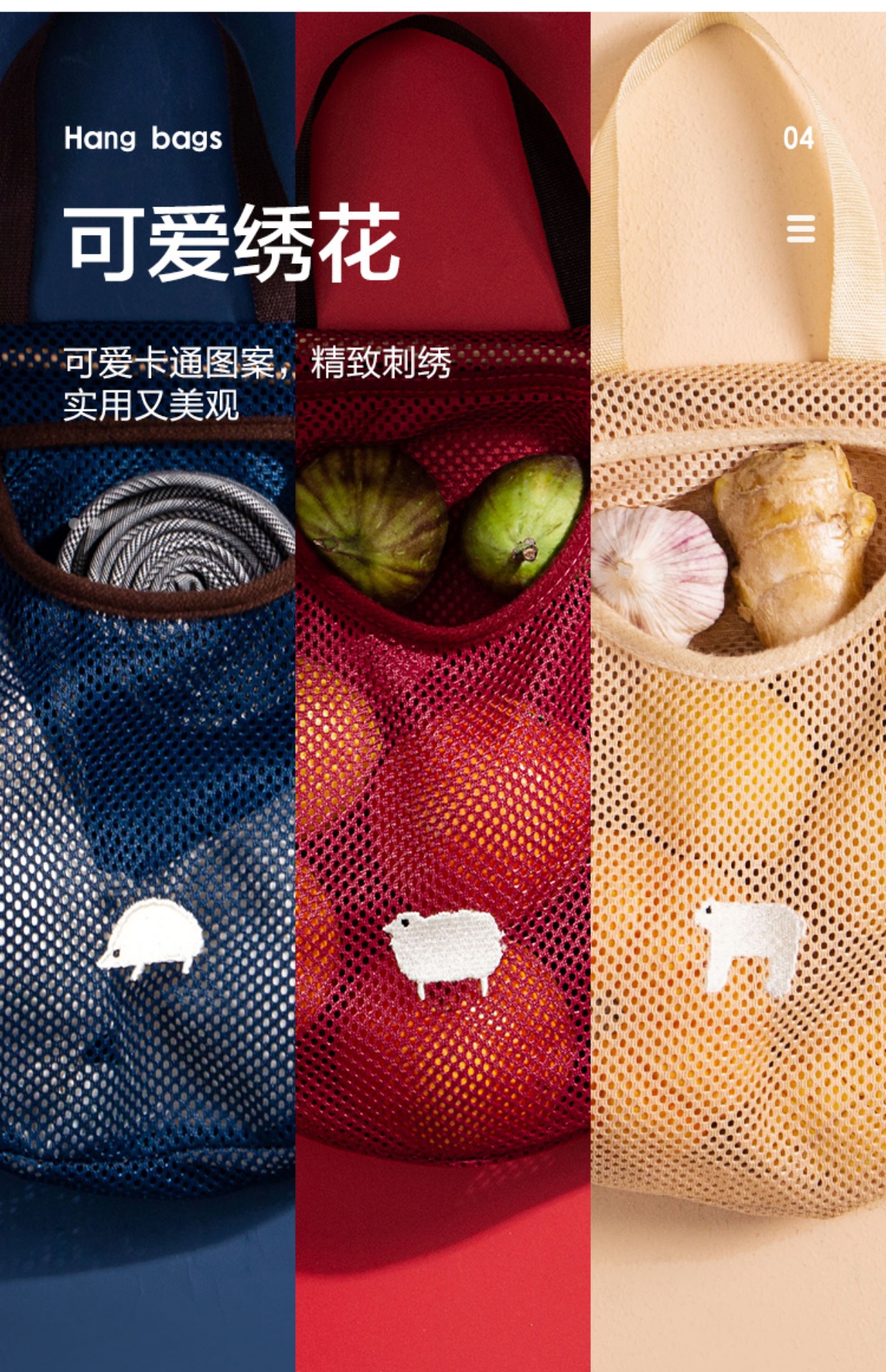 厨房多功能果蔬挂袋洋葱土豆生姜大蒜收纳袋透气网兜挂墙式储物袋