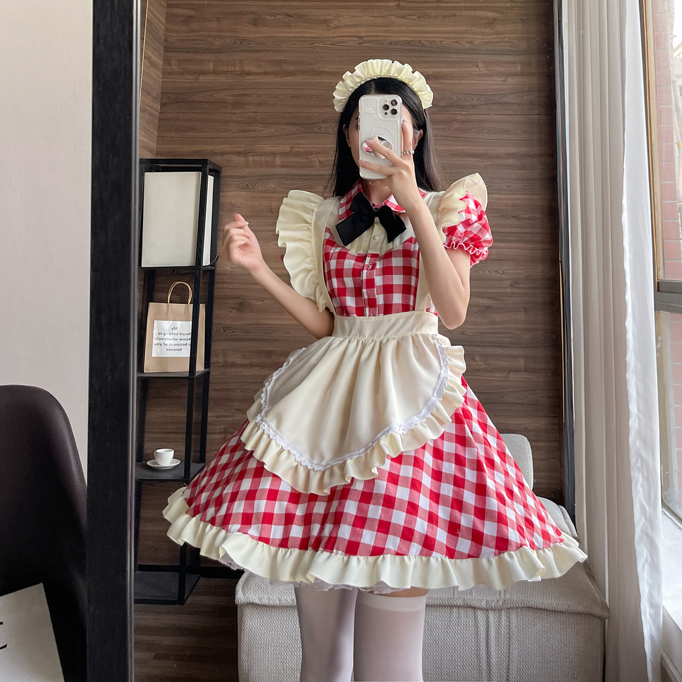 日系可爱风lolita女仆装性感cosplay女仆制服连衣裙黑红格加大码