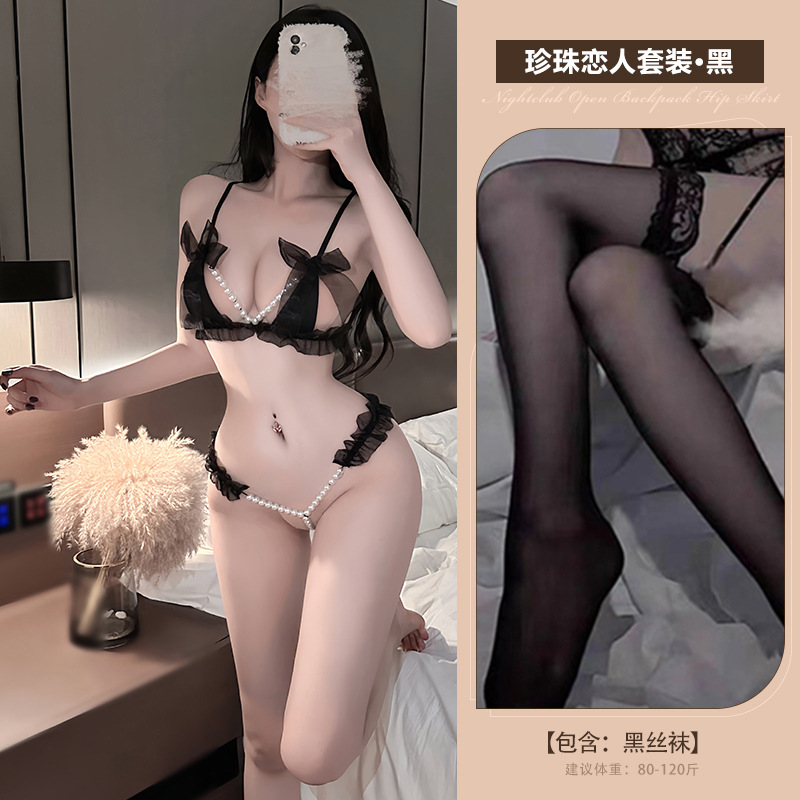 涩愿情趣内衣制服纯欲性感蕾丝珍珠三点小胸显大诱惑丝袜套装0741