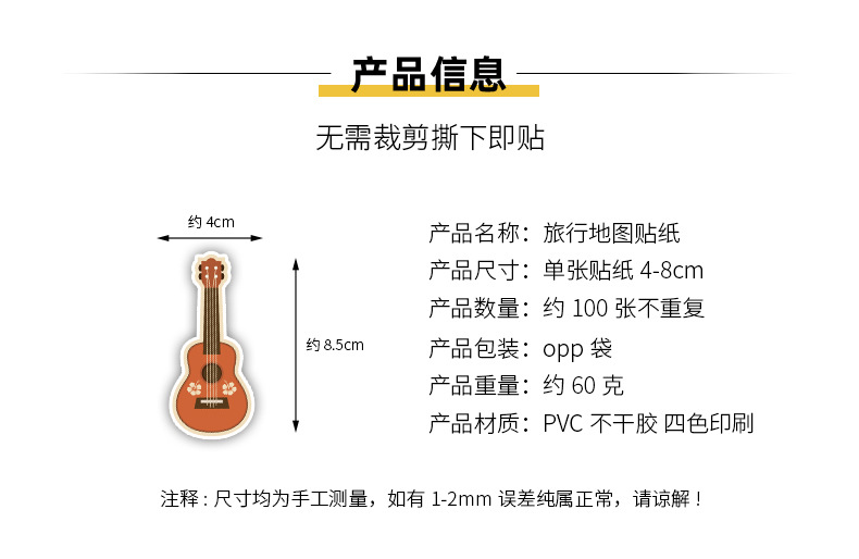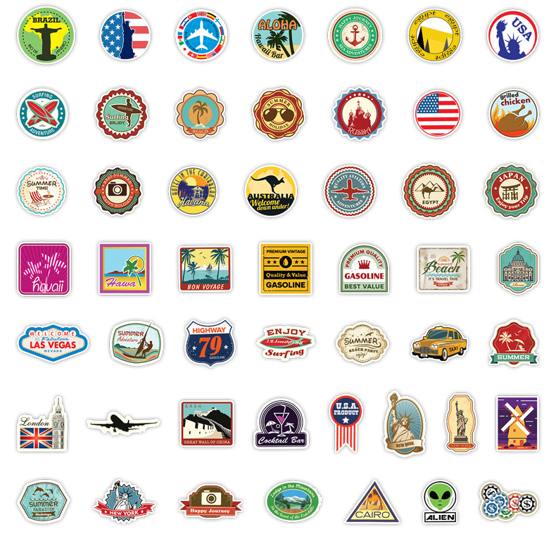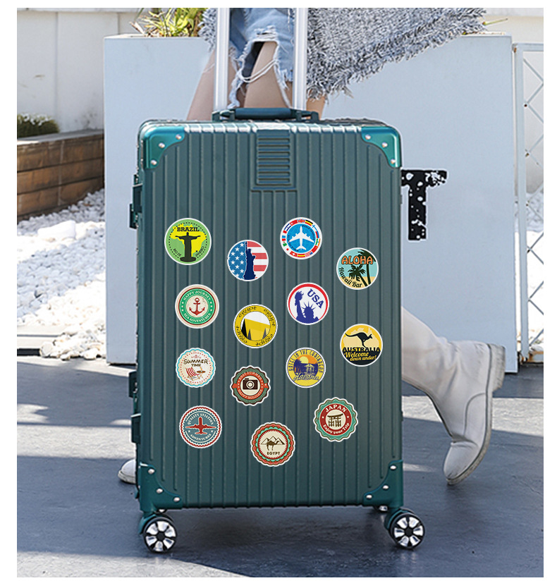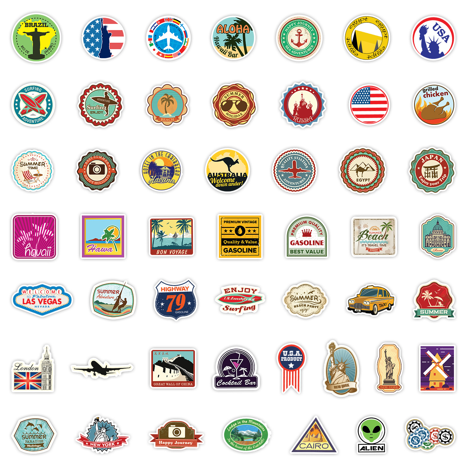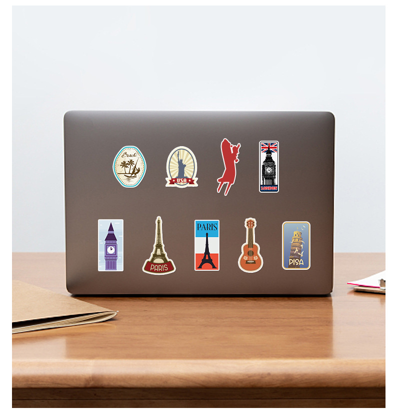 100张不重复旅行地图涂鸦贴纸旅行箱手机汽车滑板装饰贴画防水