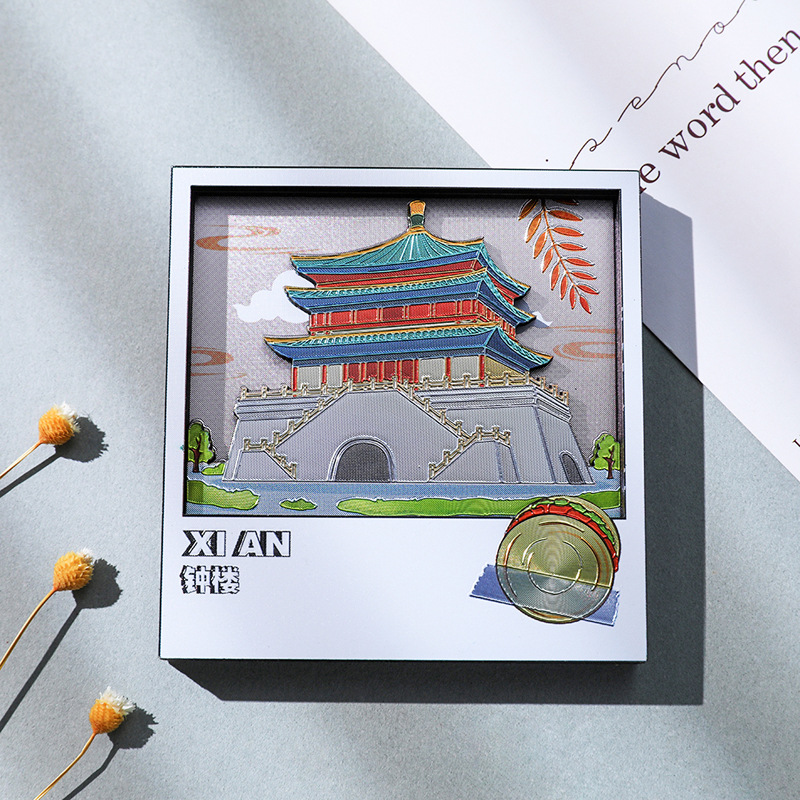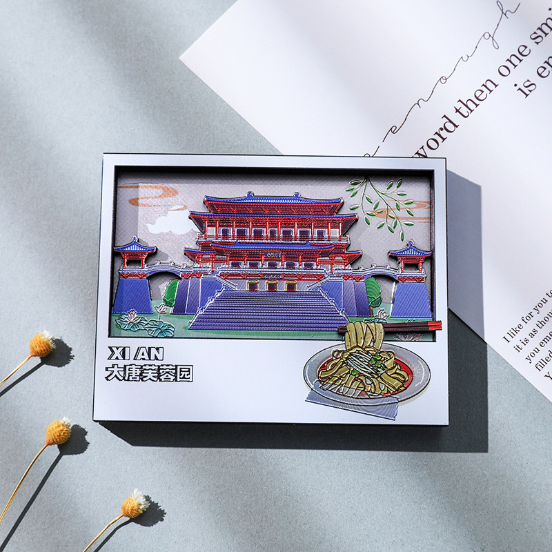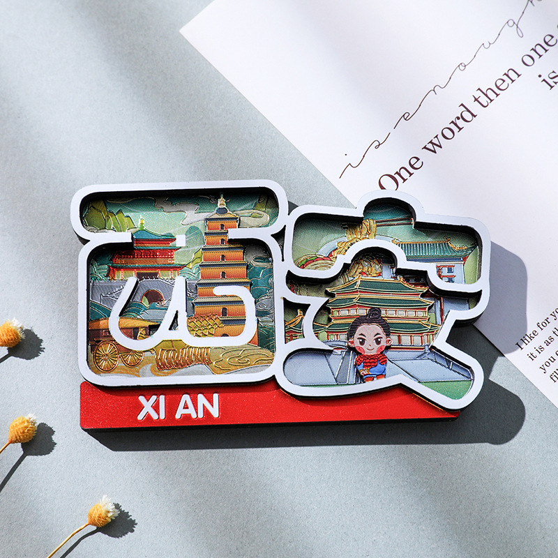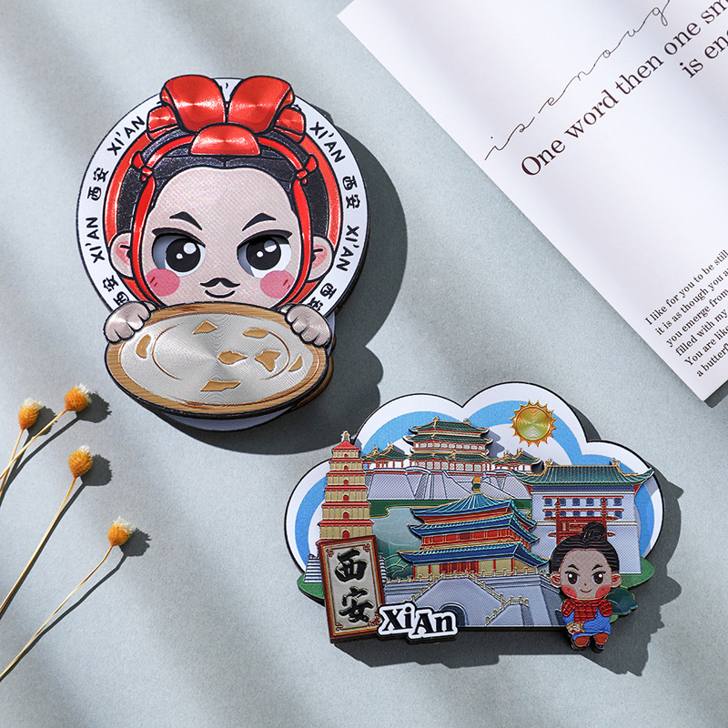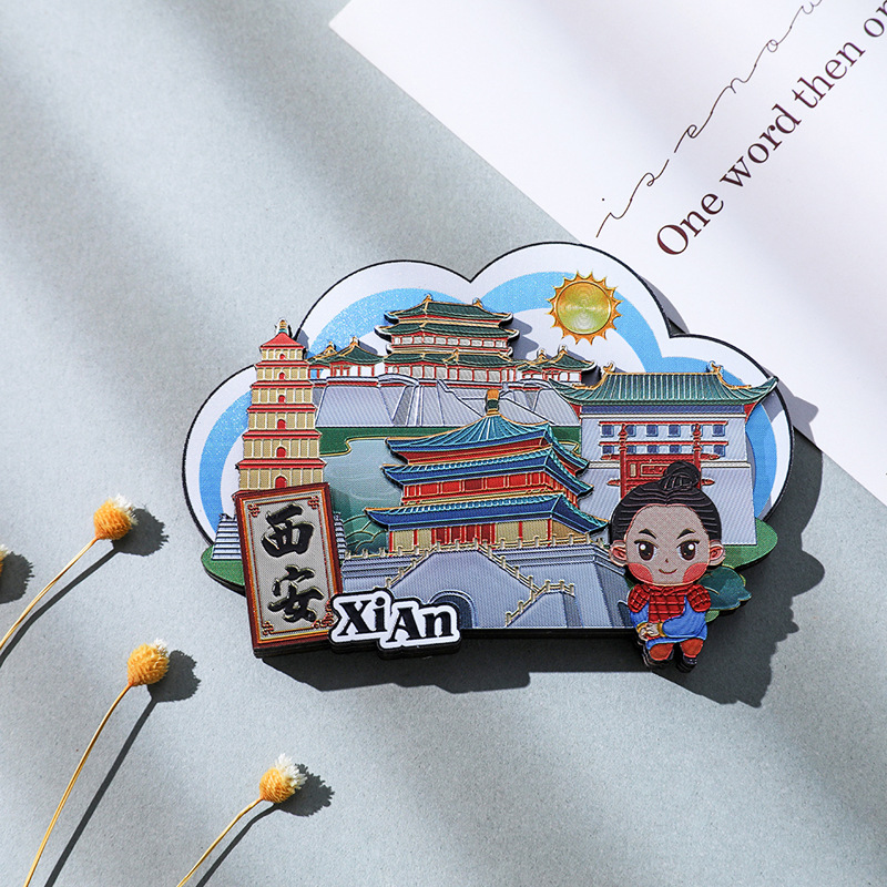 原创西安银箔款冰箱贴西安文化元素旅游城市景点文创纪念品冰箱贴