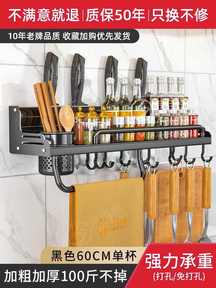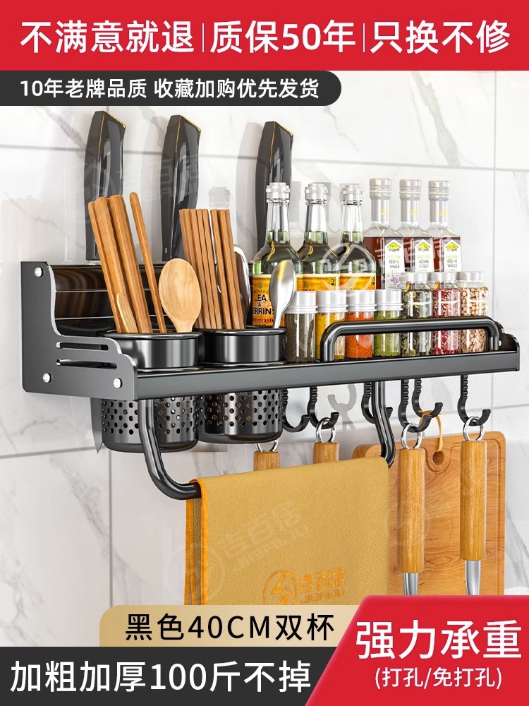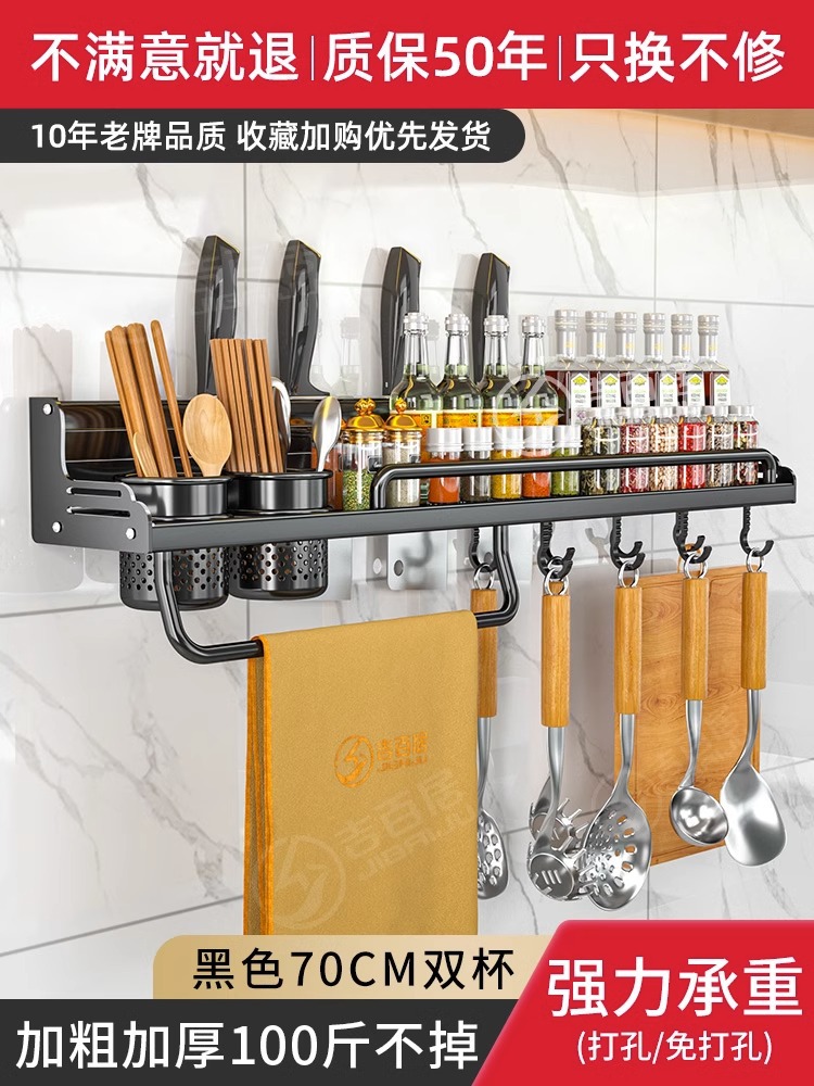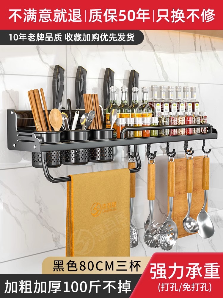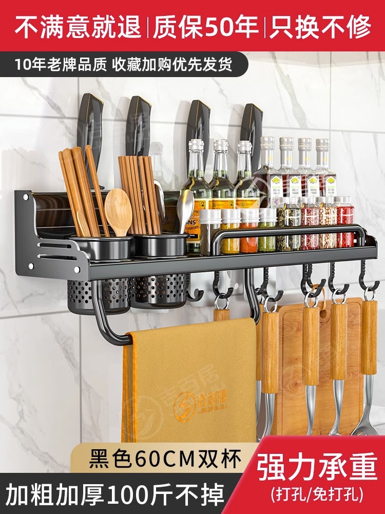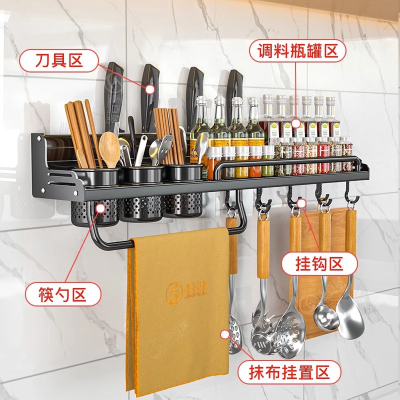 厂家供应厨房用品免打孔壁挂式收纳架 厨房置物架 刀架筷子调料架