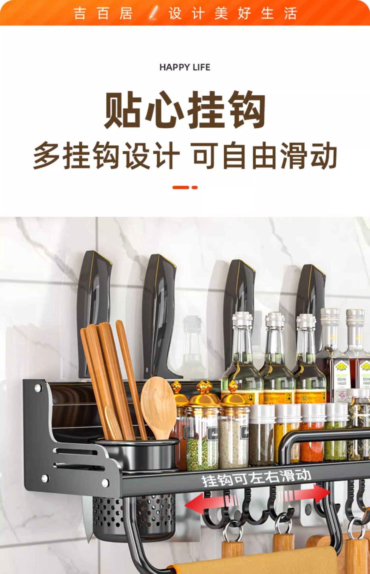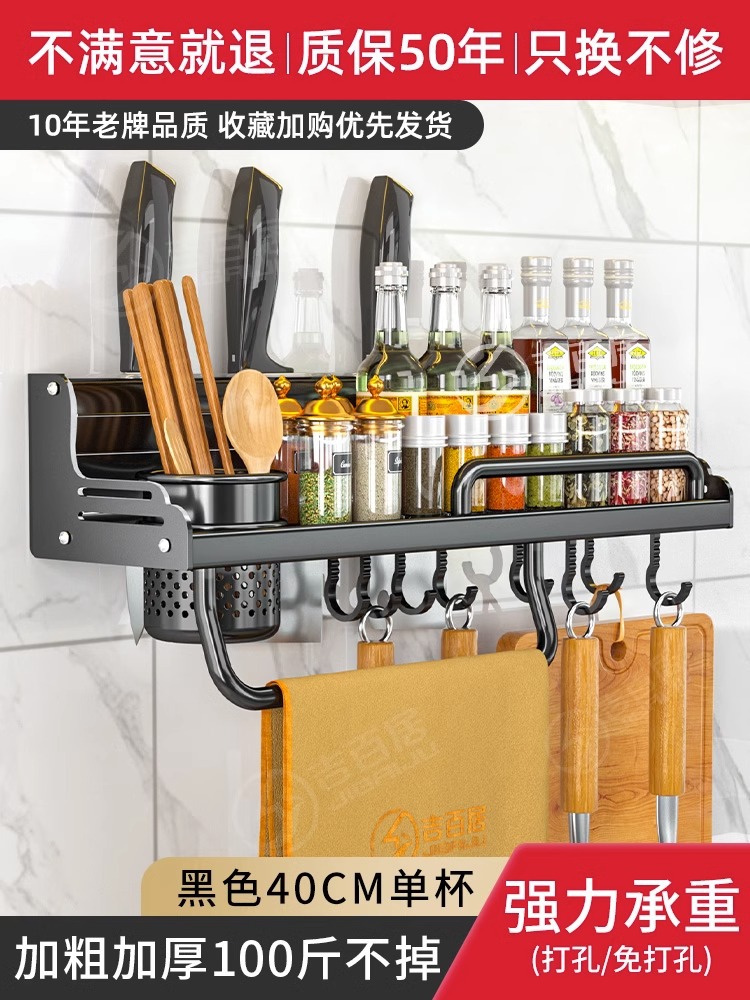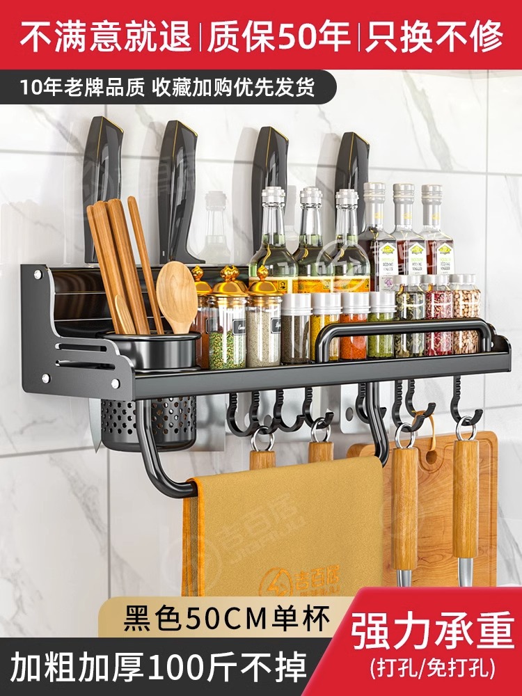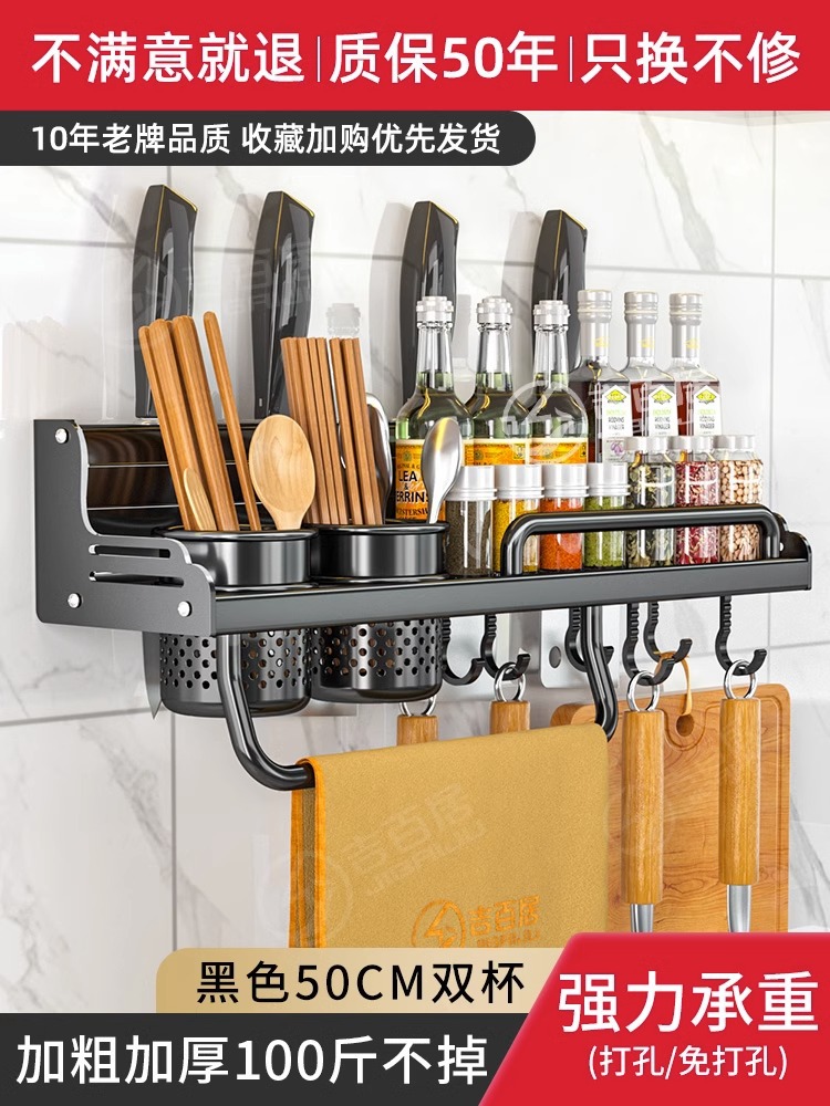厂家供应厨房用品免打孔壁挂式收纳架 厨房置物架 刀架筷子调料架
