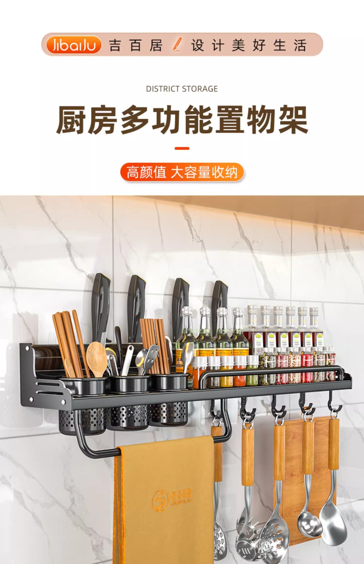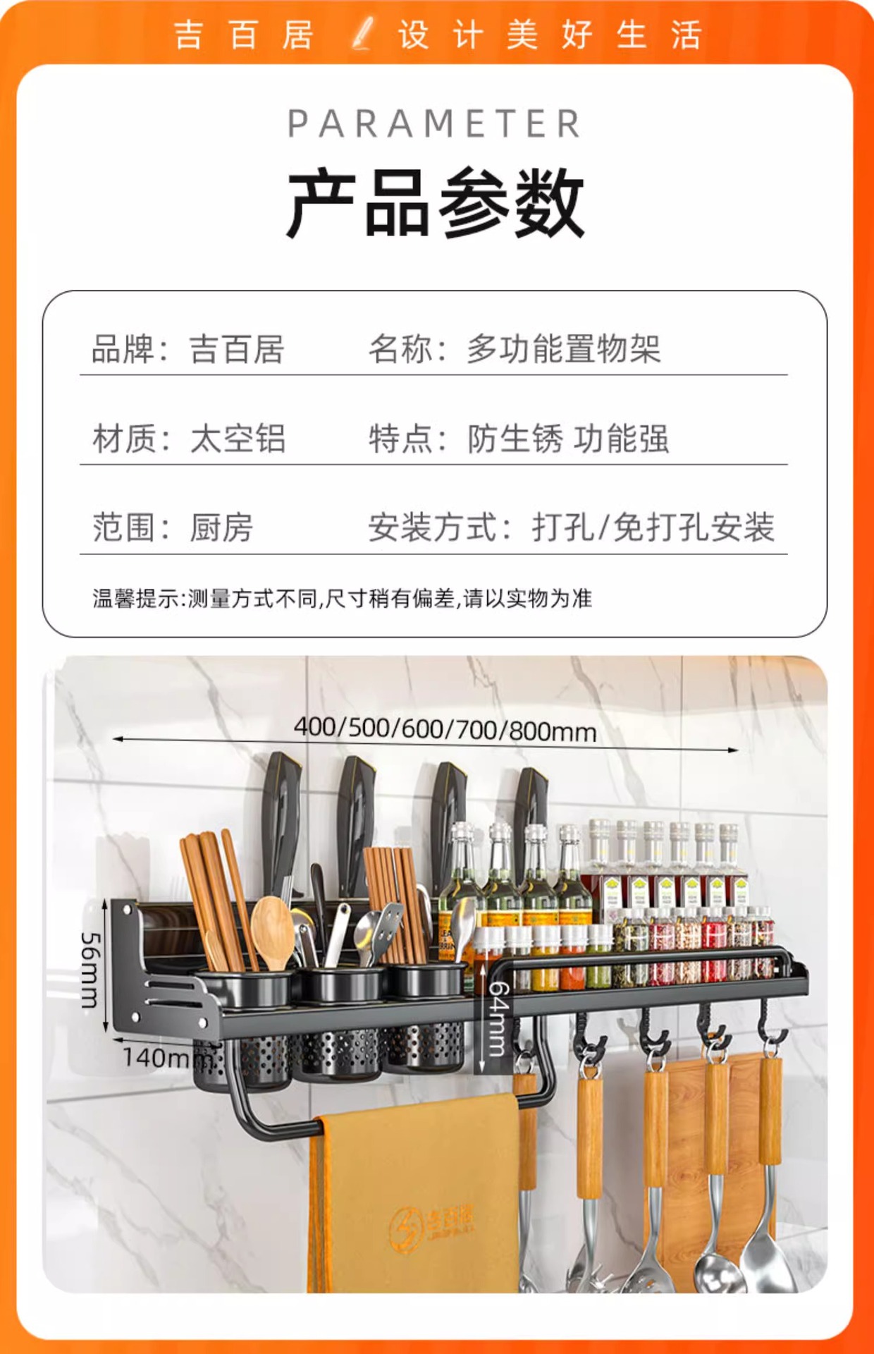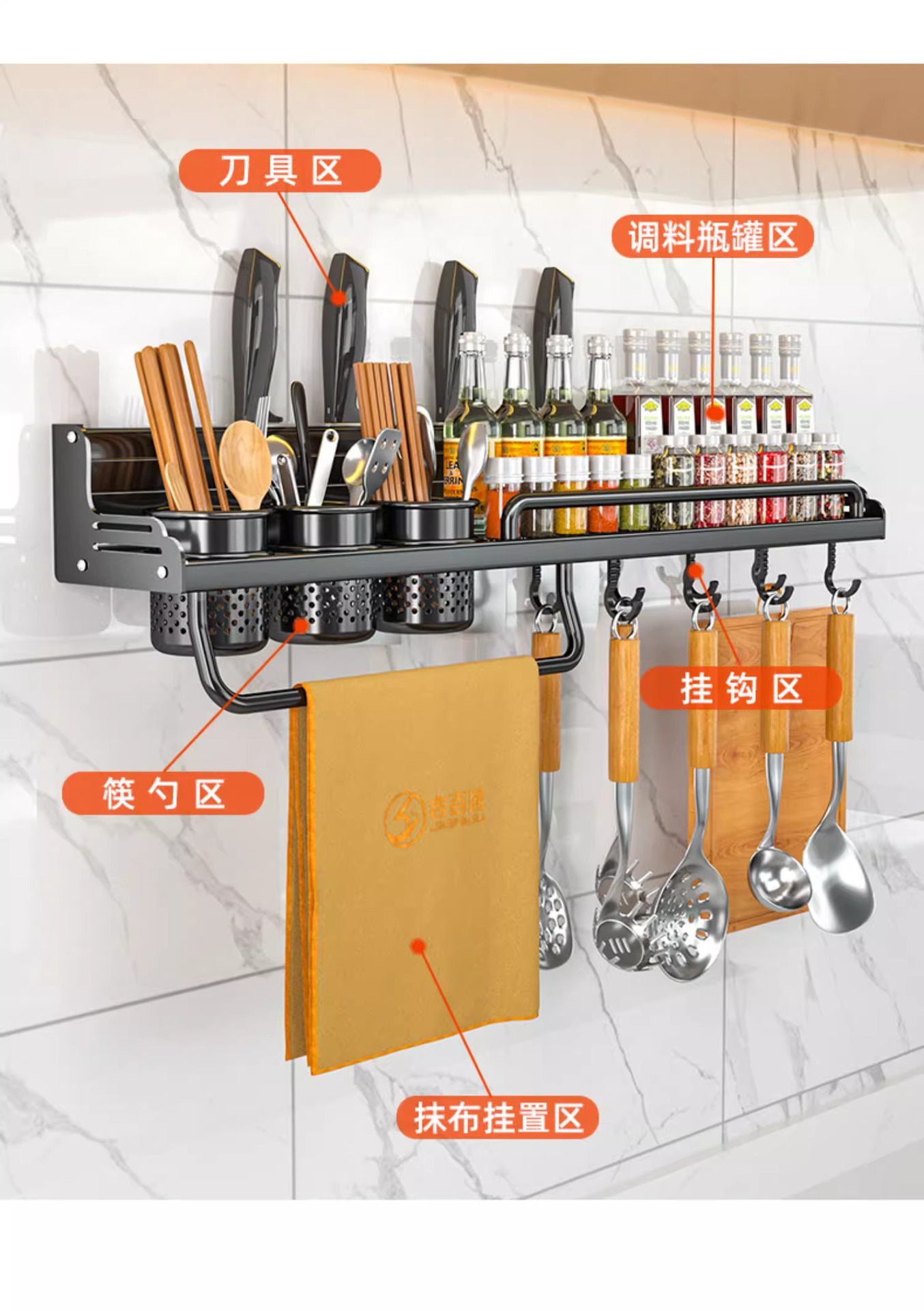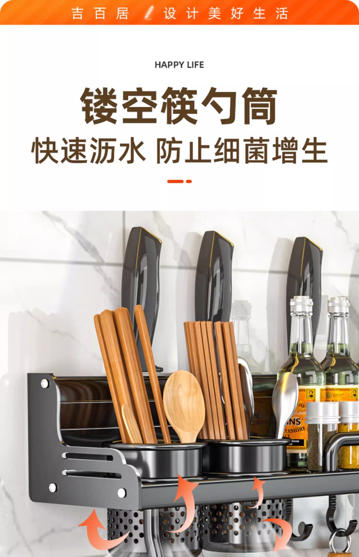 厂家供应厨房用品免打孔壁挂式收纳架 厨房置物架 刀架筷子调料架