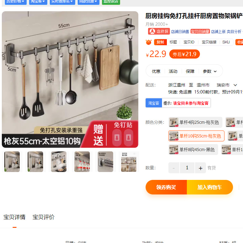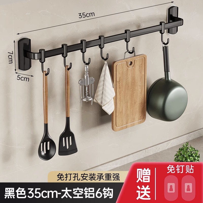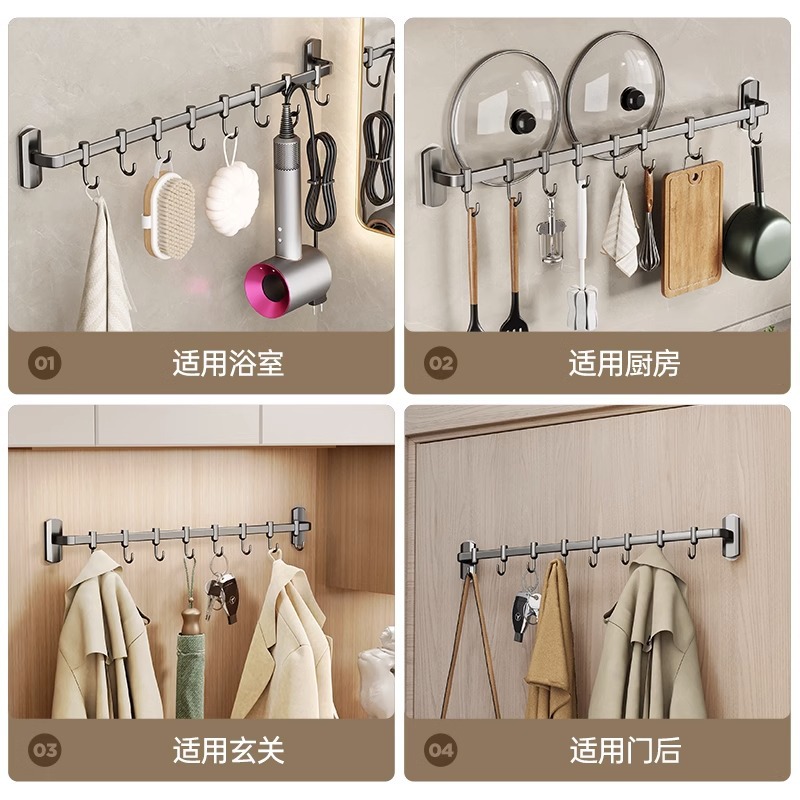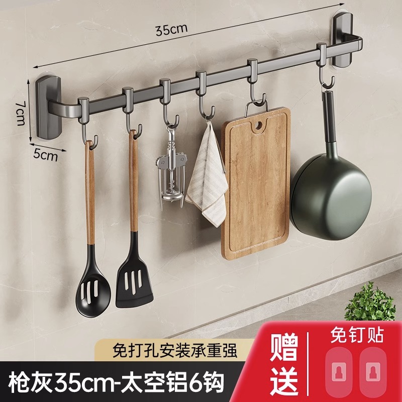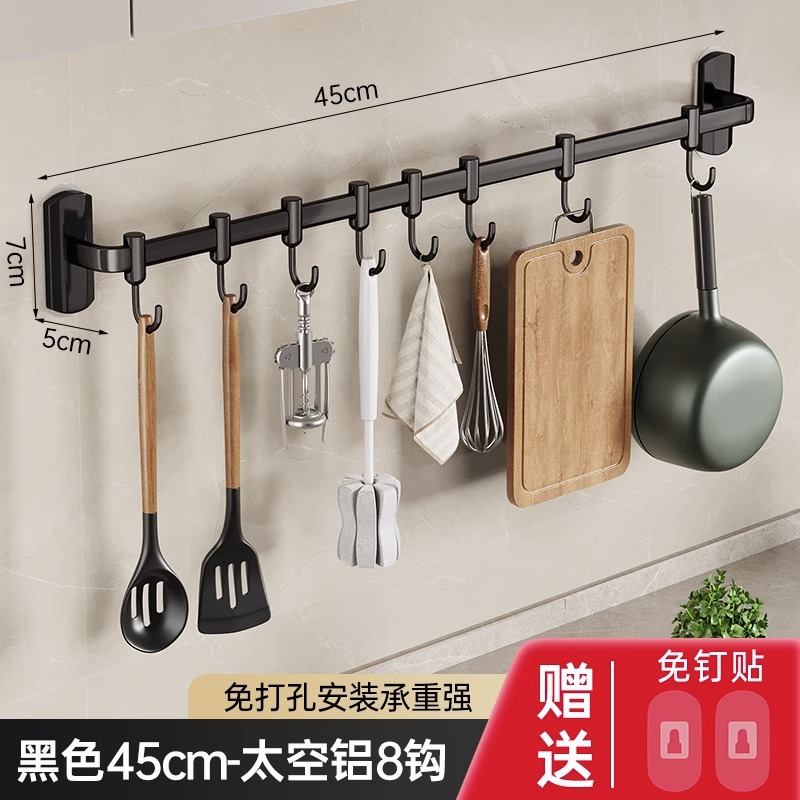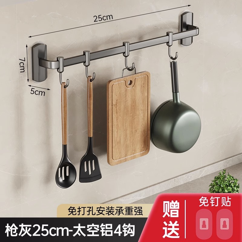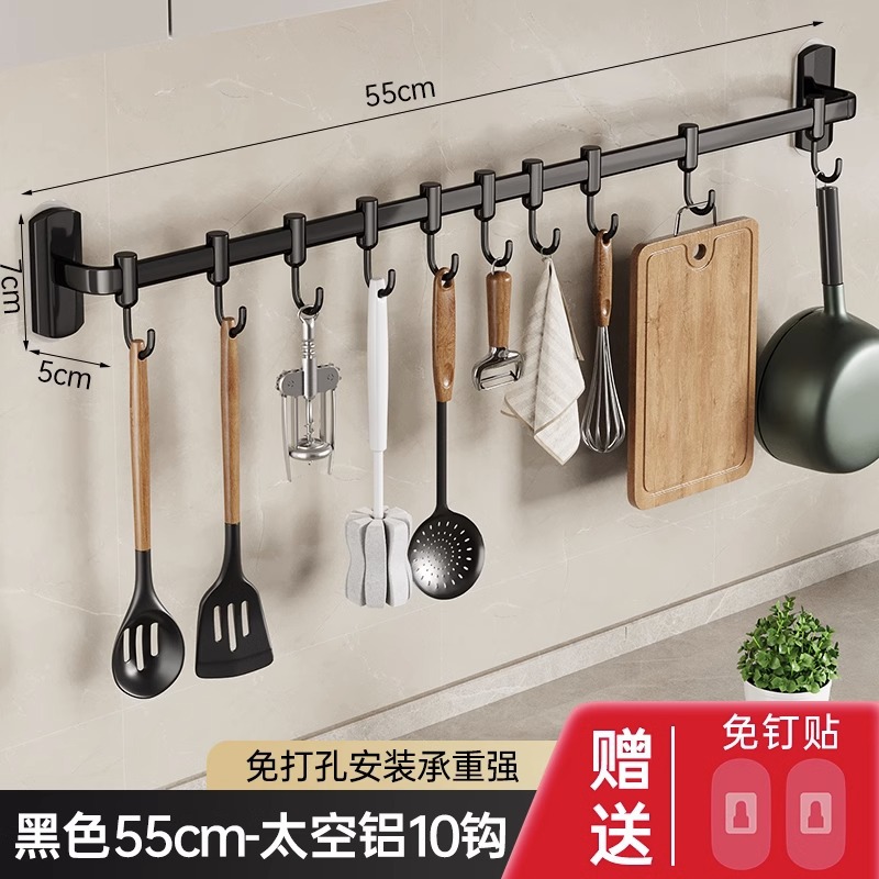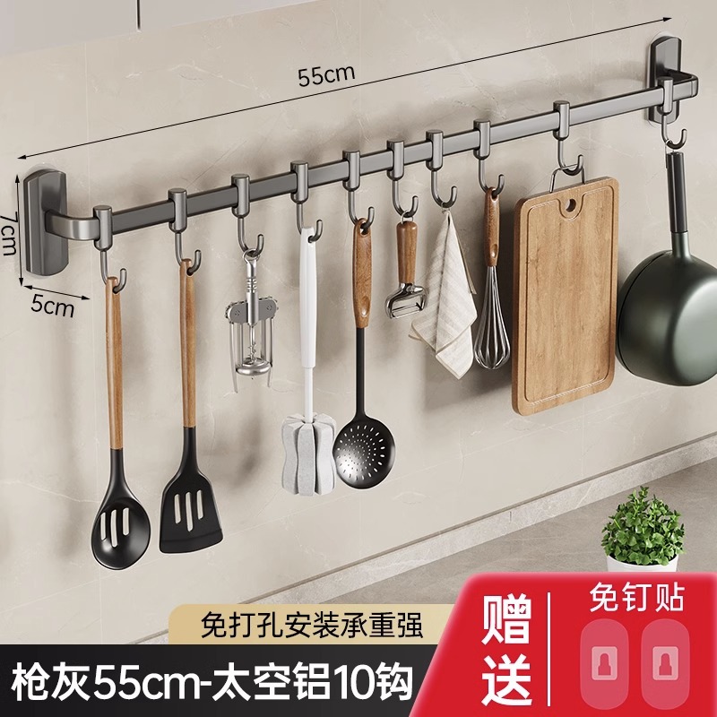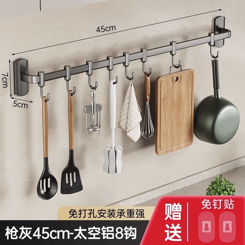 厨房挂钩免打孔挂杆厨房置物架锅铲勺子挂架太空铝排钩壁挂式收纳