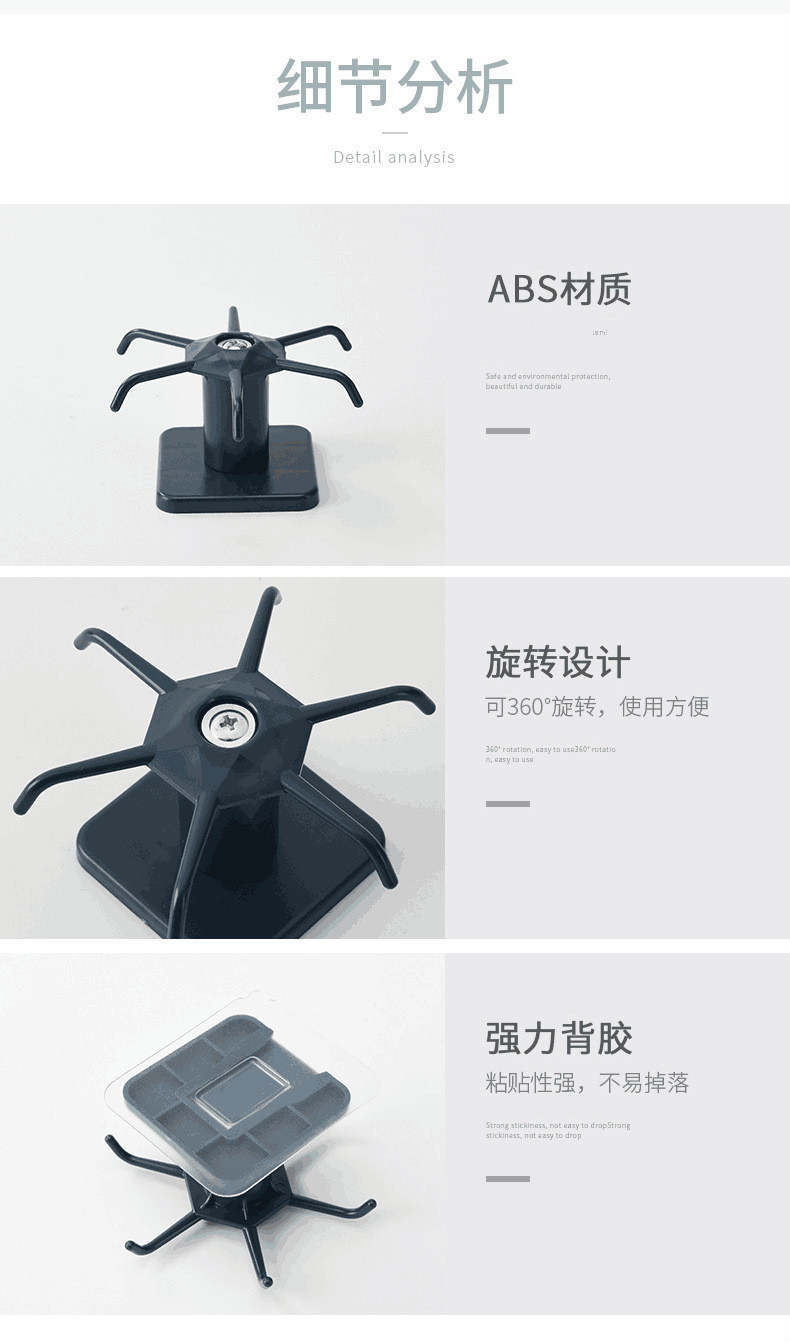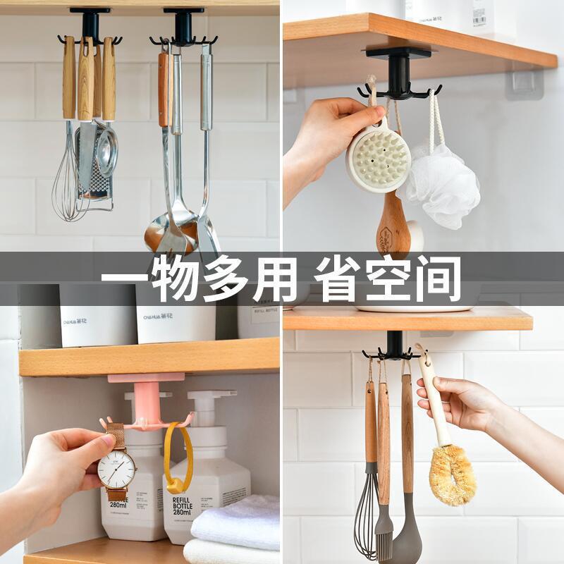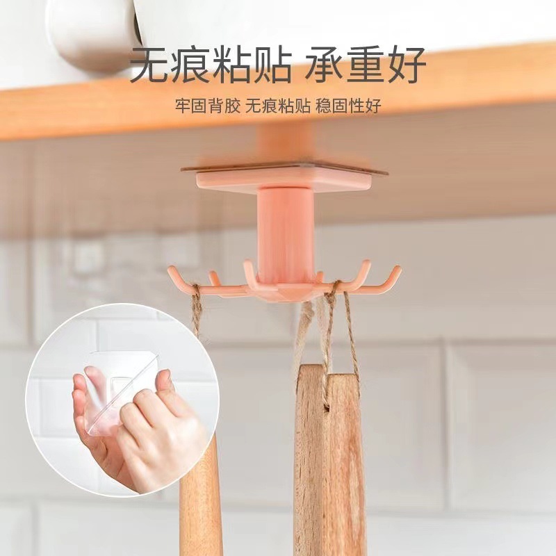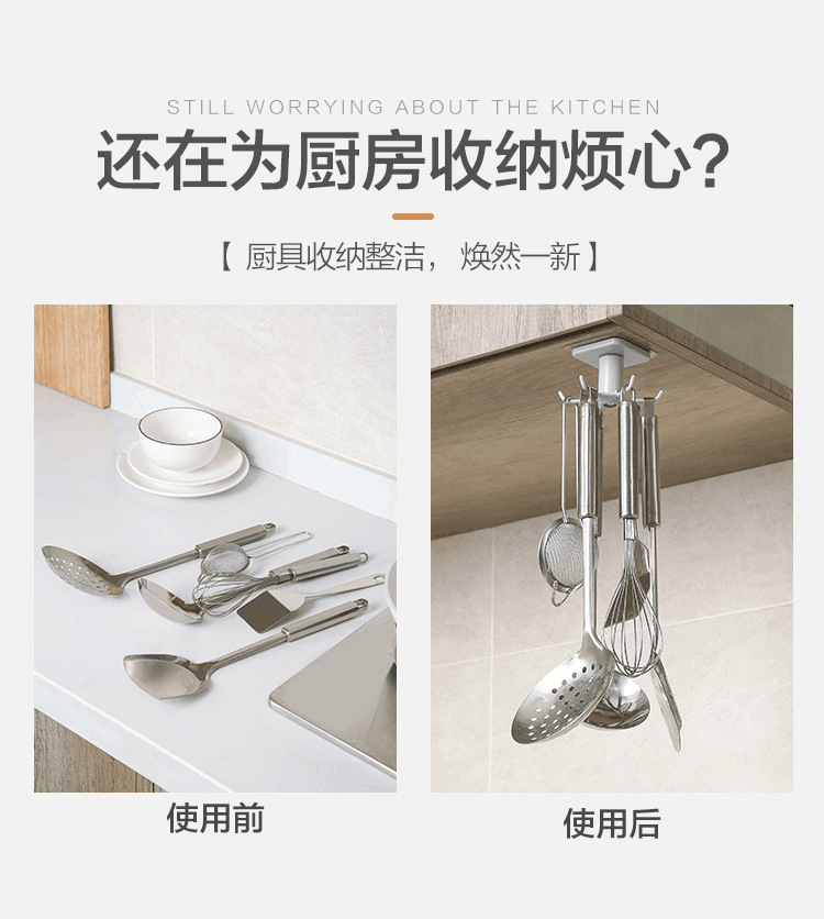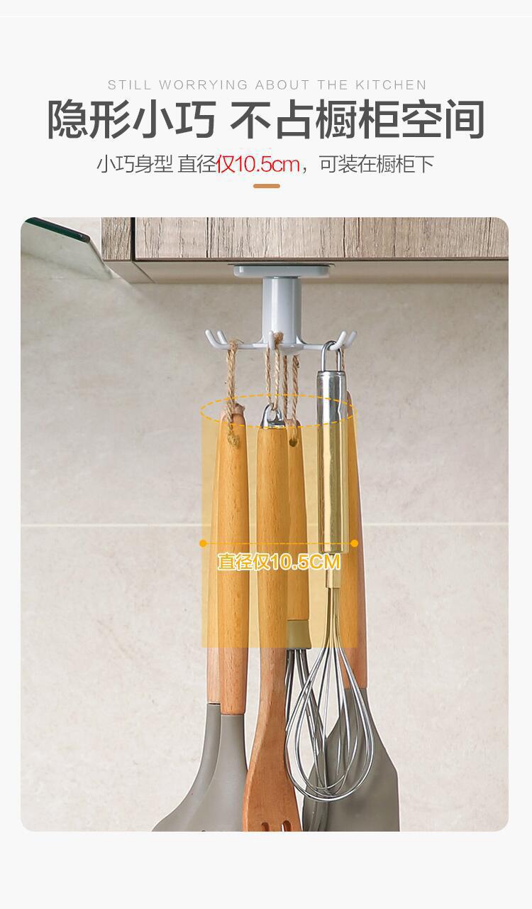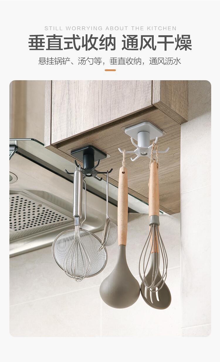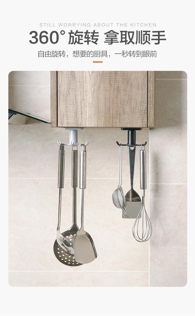 创意厨房免打孔壁挂可旋转汤勺锅铲6爪挂钩橱柜小物件收纳挂架