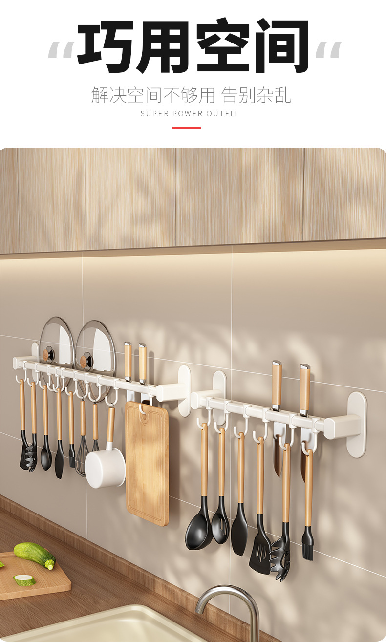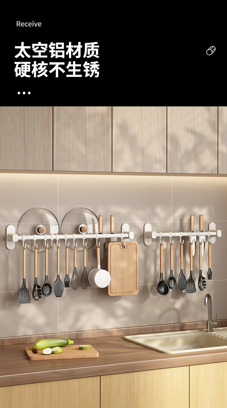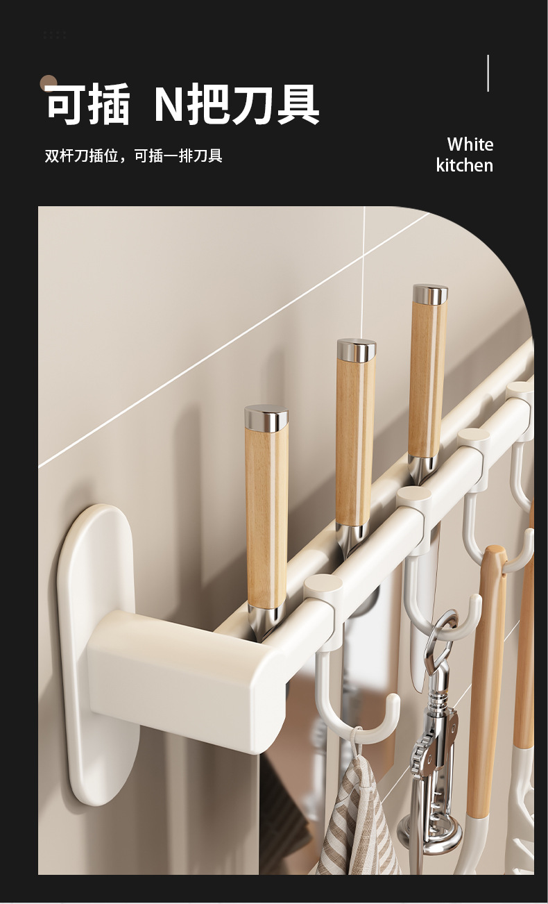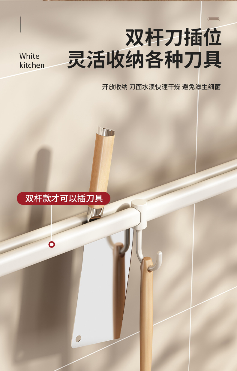 白色厨房挂钩架免打孔双杆刀架放锅盖架子壁挂锅铲太空铝收纳挂架
