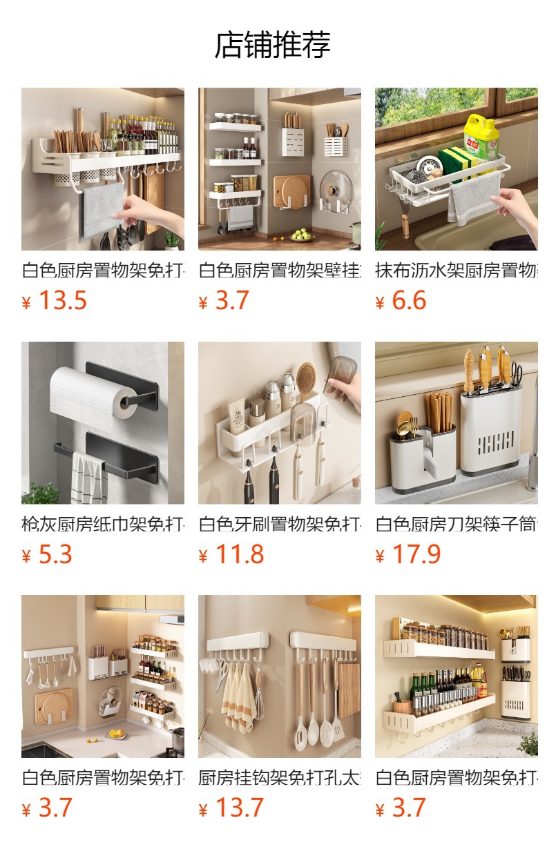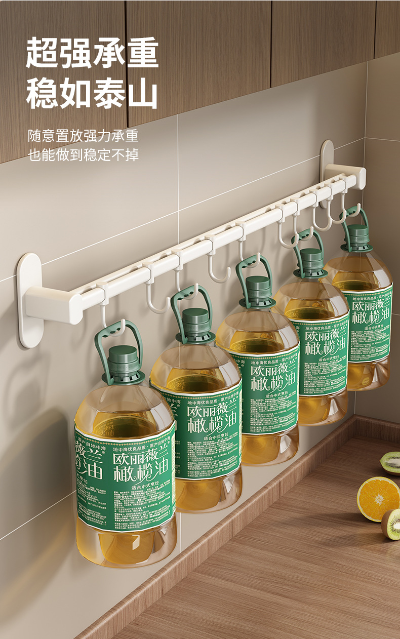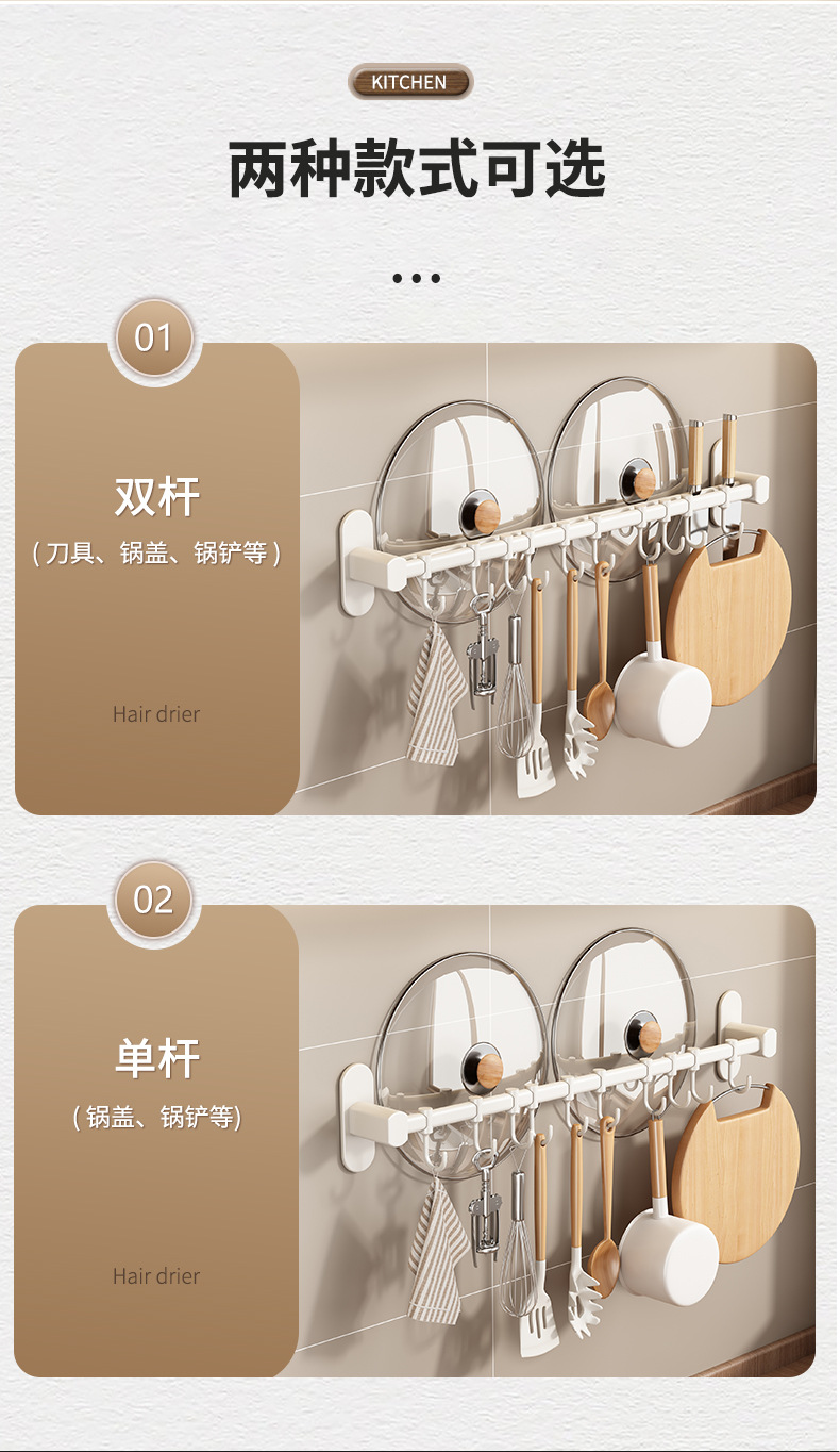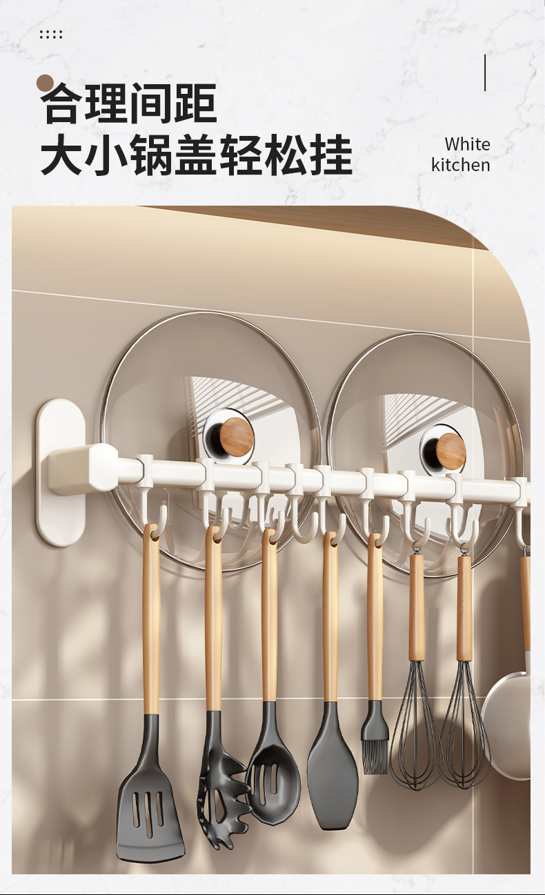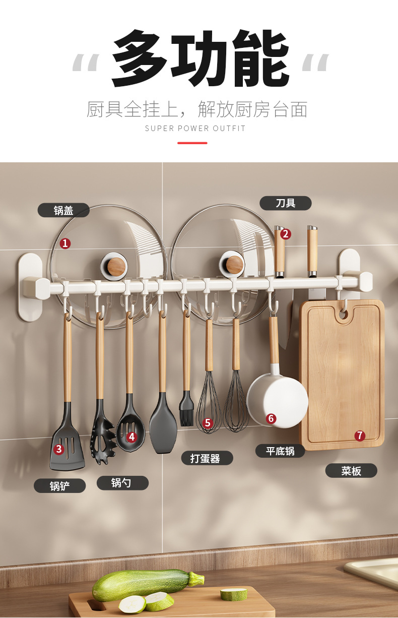 白色厨房挂钩架免打孔双杆刀架放锅盖架子壁挂锅铲太空铝收纳挂架
