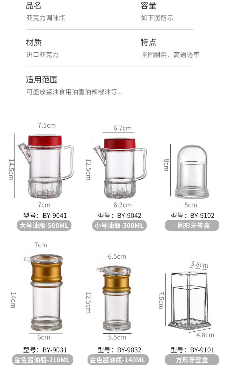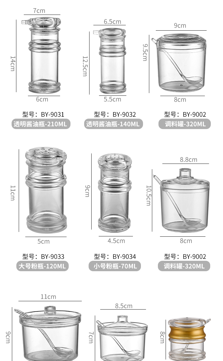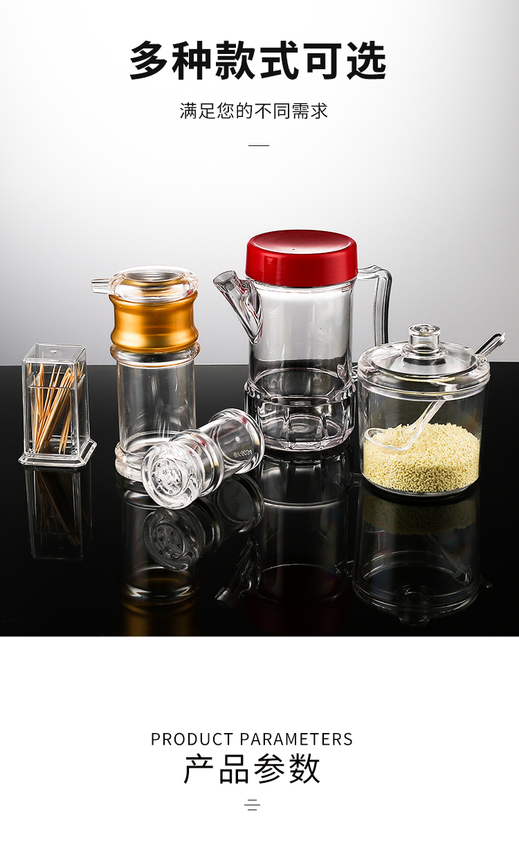 WUQA调味瓶醋壶商用塑料调料盒酱油瓶油壶套装透明油瓶辣椒罐糖罐