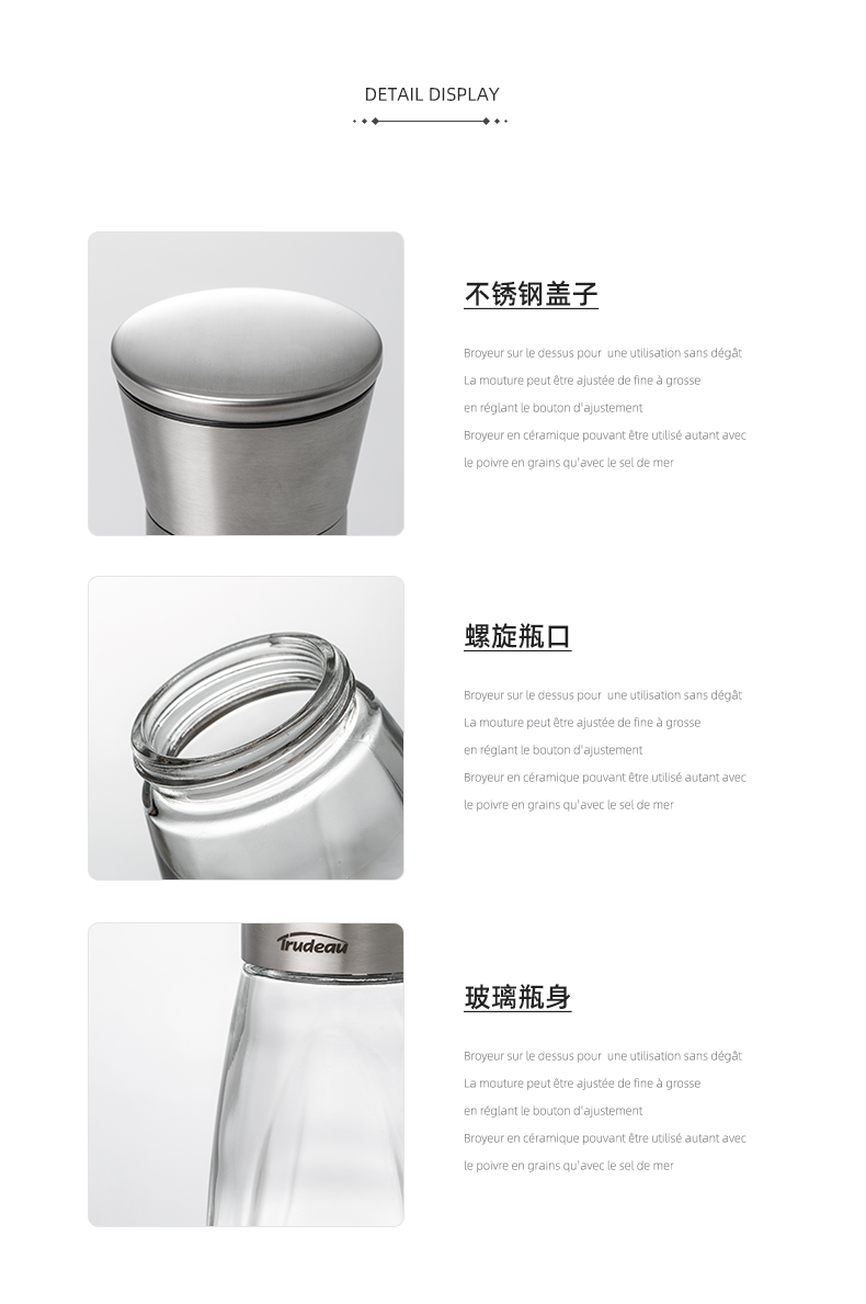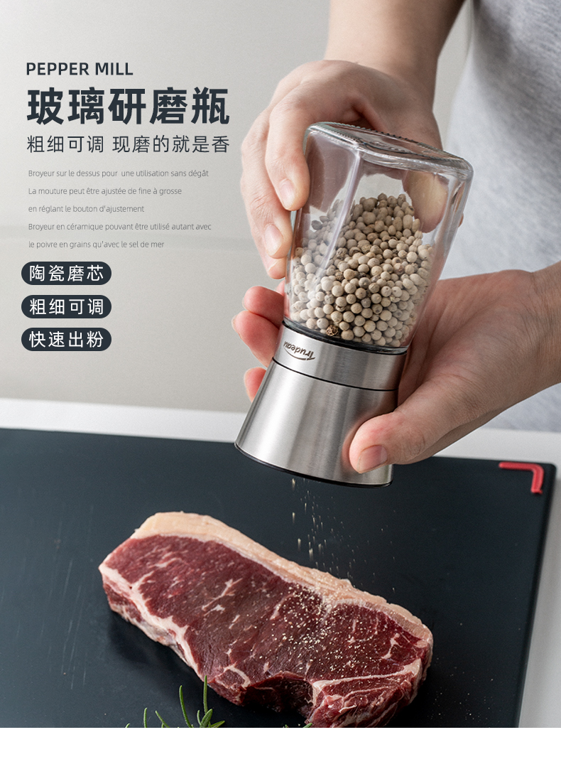 M3NO加拿大白黑胡椒研磨器香料粒撒粉瓶厨房家用调味品调