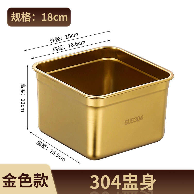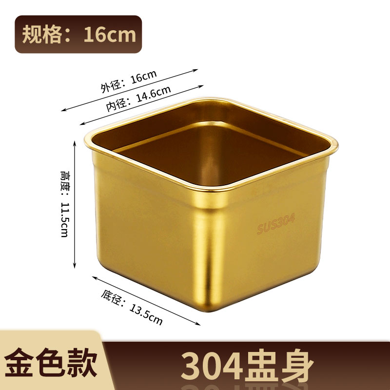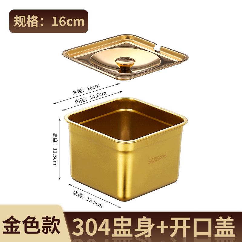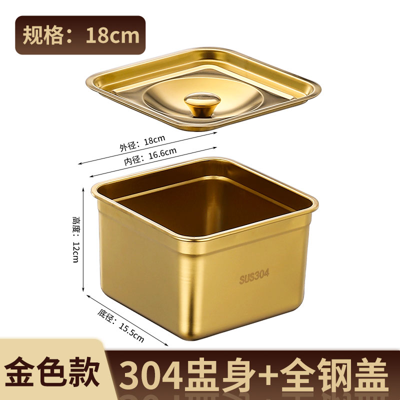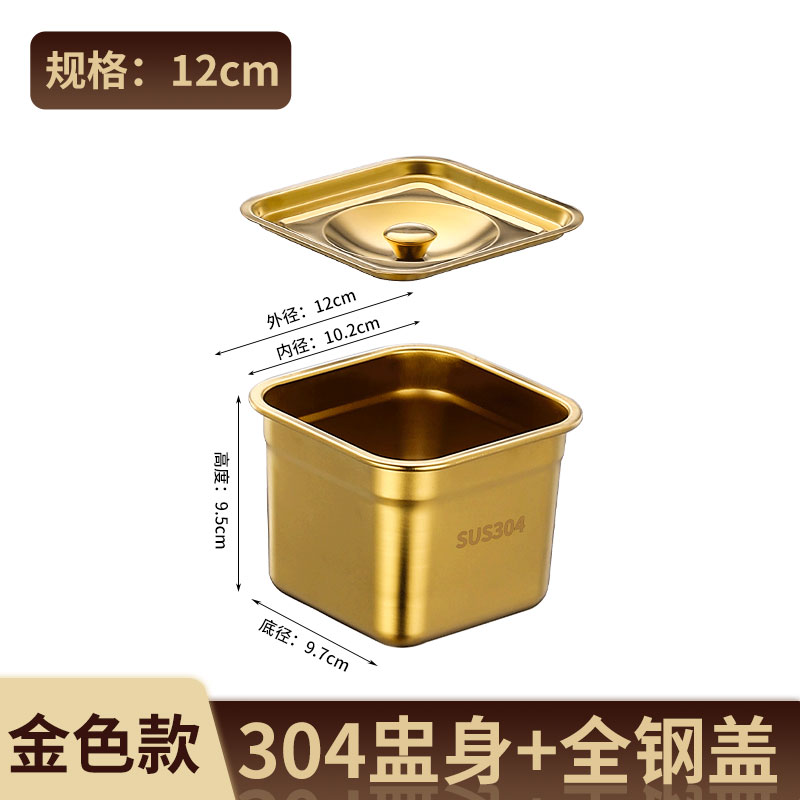 58C1304不锈钢方形味盅方形果酱盆带盖方盆商用厨房调味盒金色佐