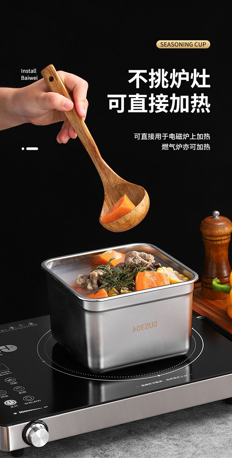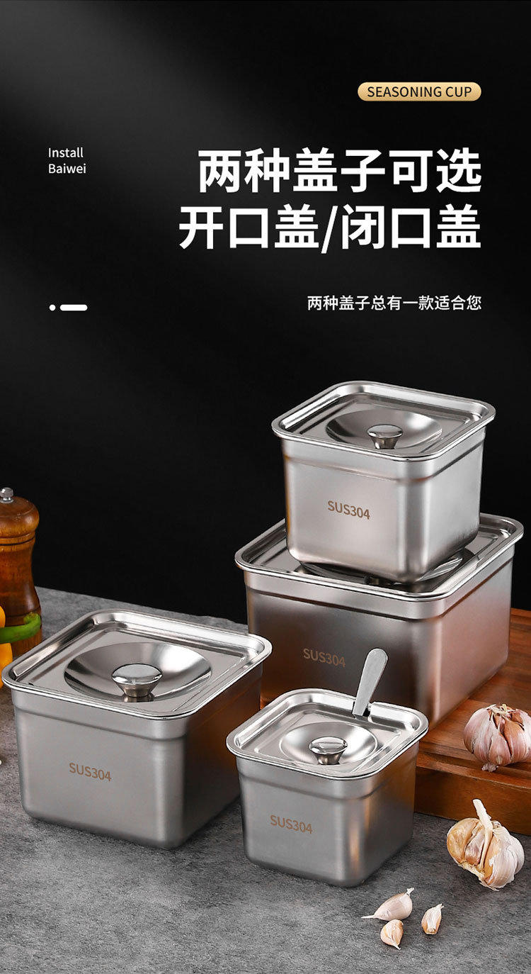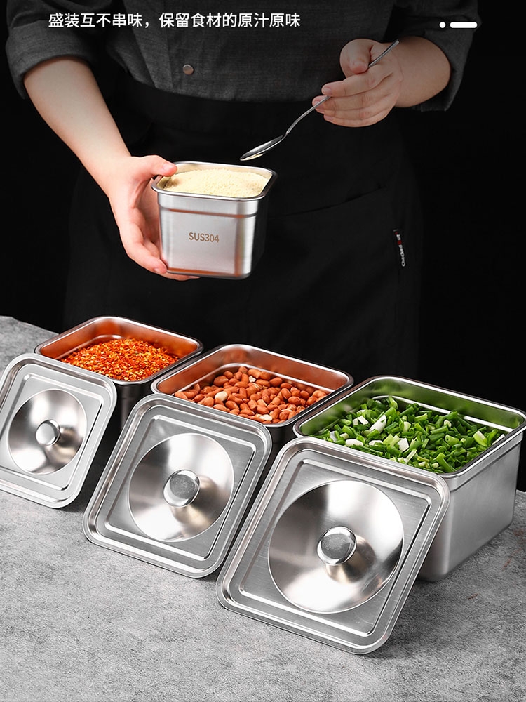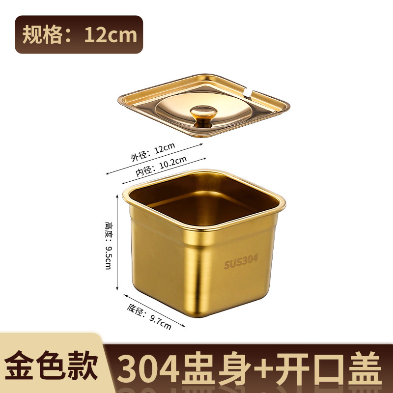 58C1304不锈钢方形味盅方形果酱盆带盖方盆商用厨房调味盒金色佐