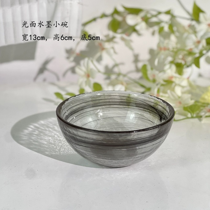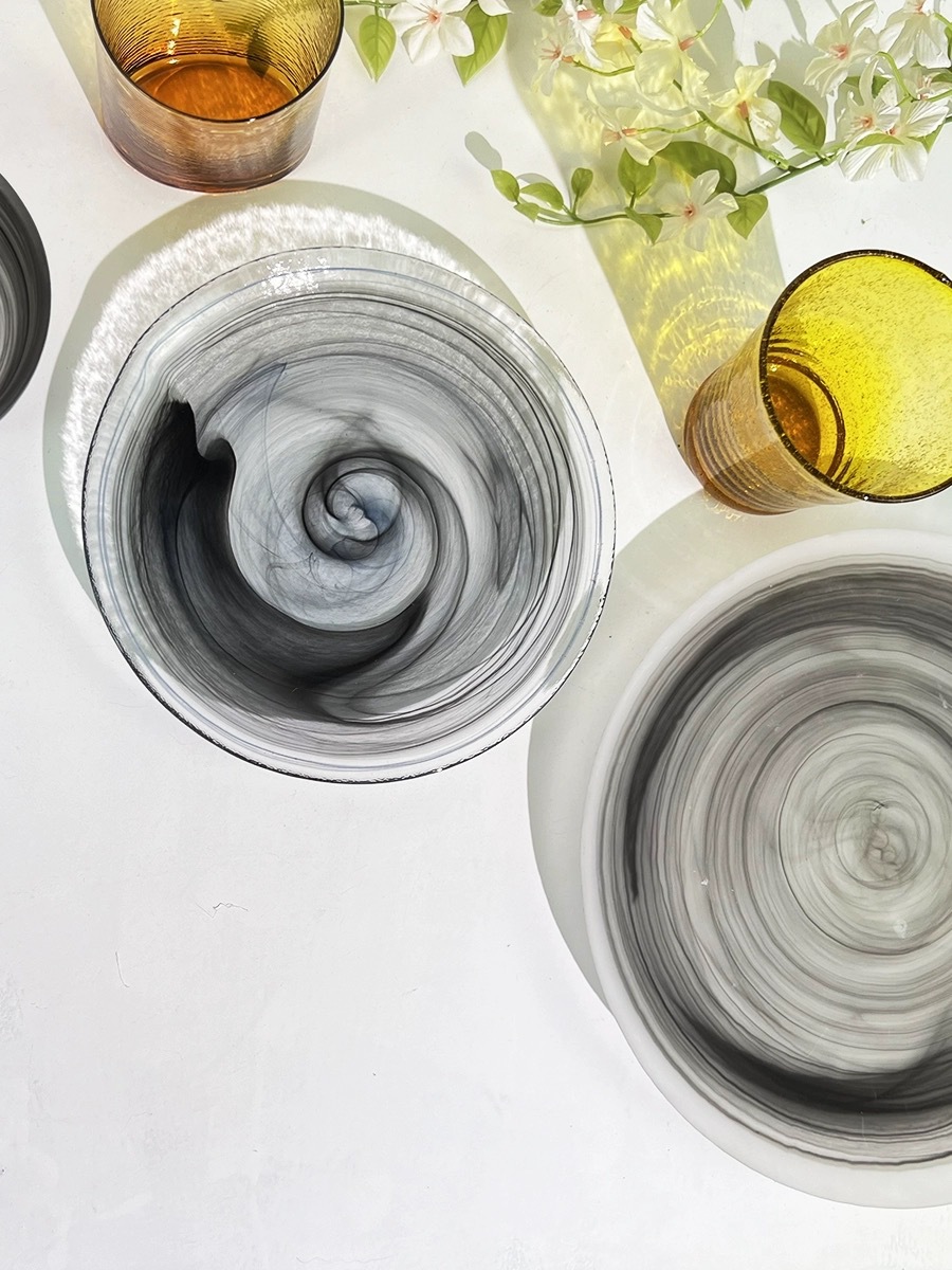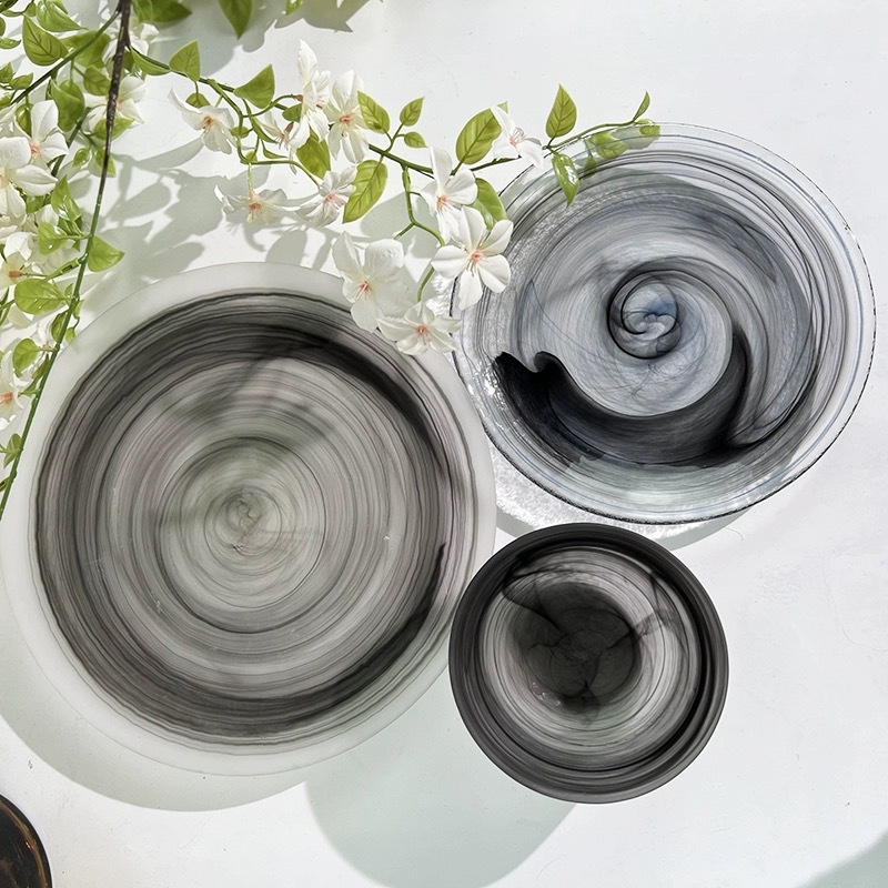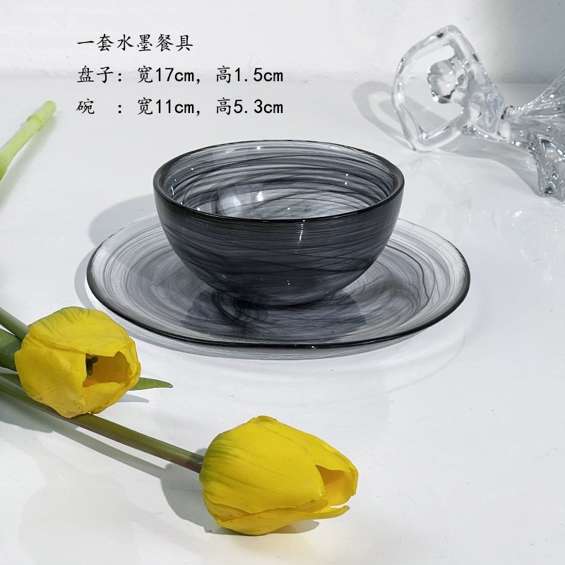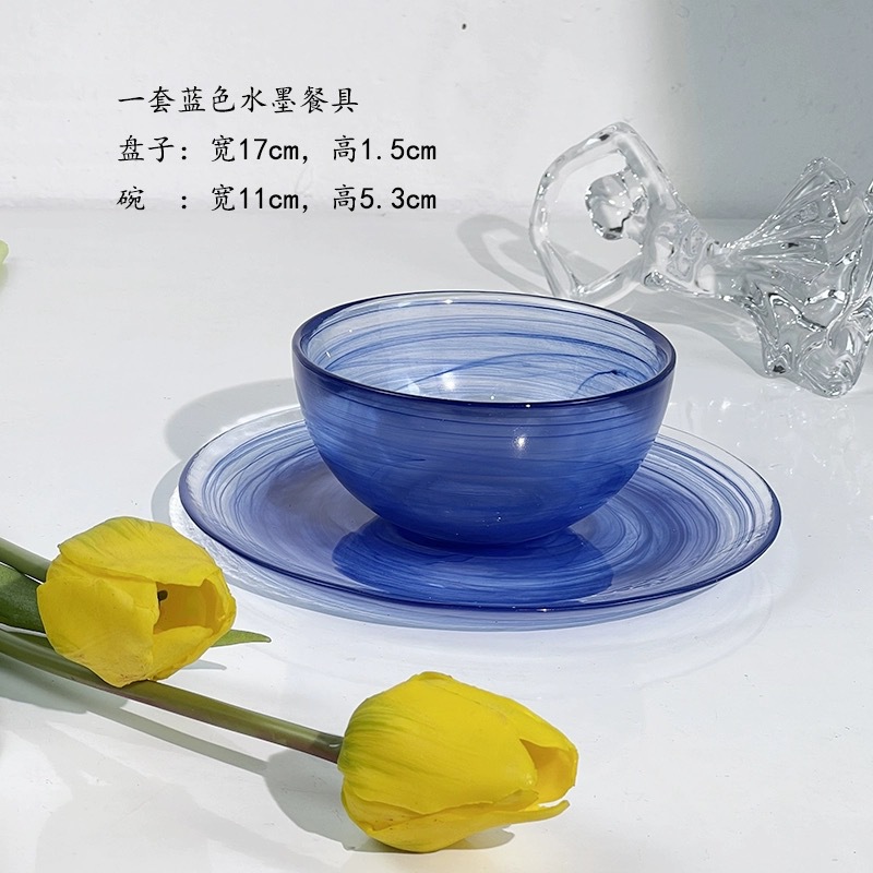 圆形国潮风仙气玻璃餐具云彩碗碟套装家用艺术餐盘玻璃碗碟批发