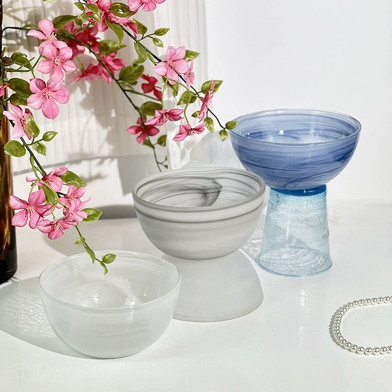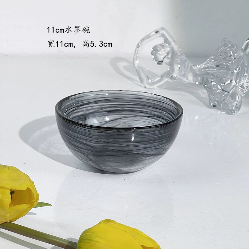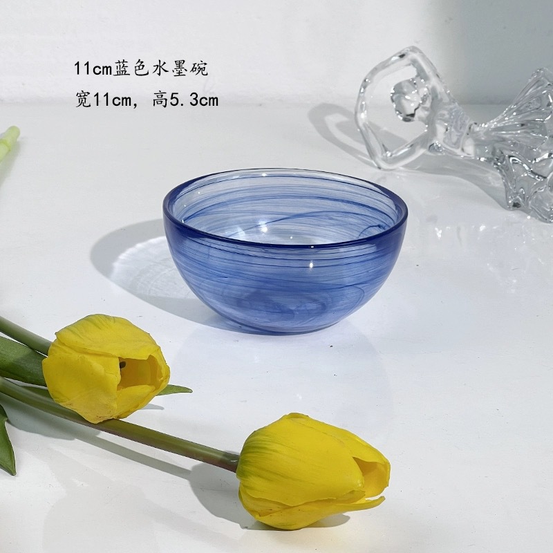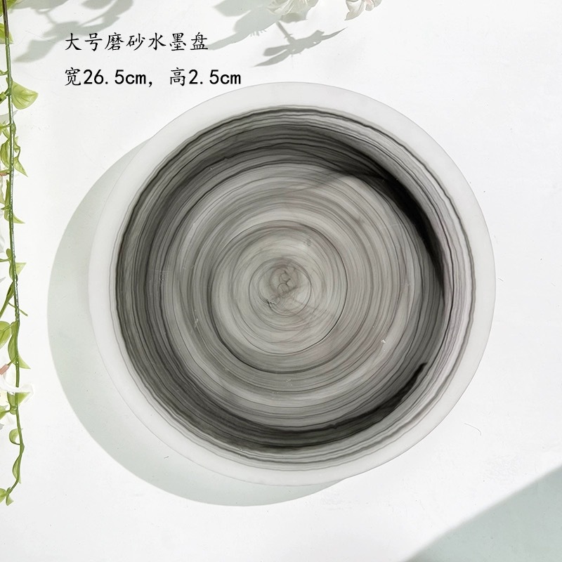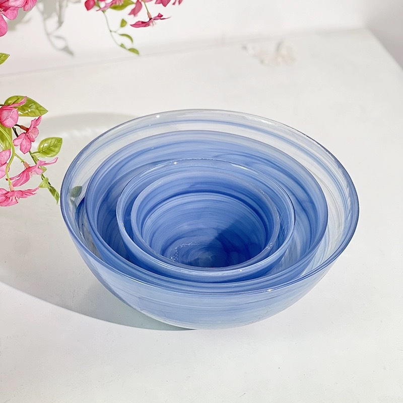 圆形国潮风仙气玻璃餐具云彩碗碟套装家用艺术餐盘玻璃碗碟批发