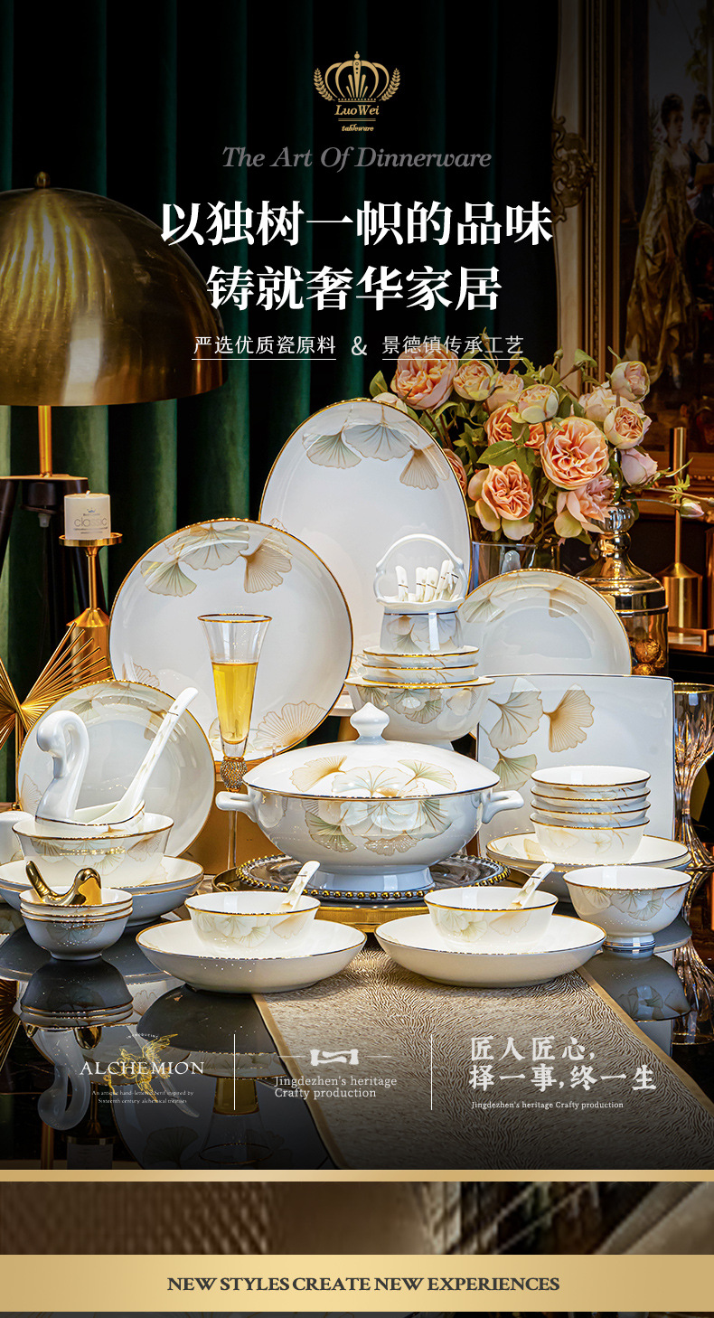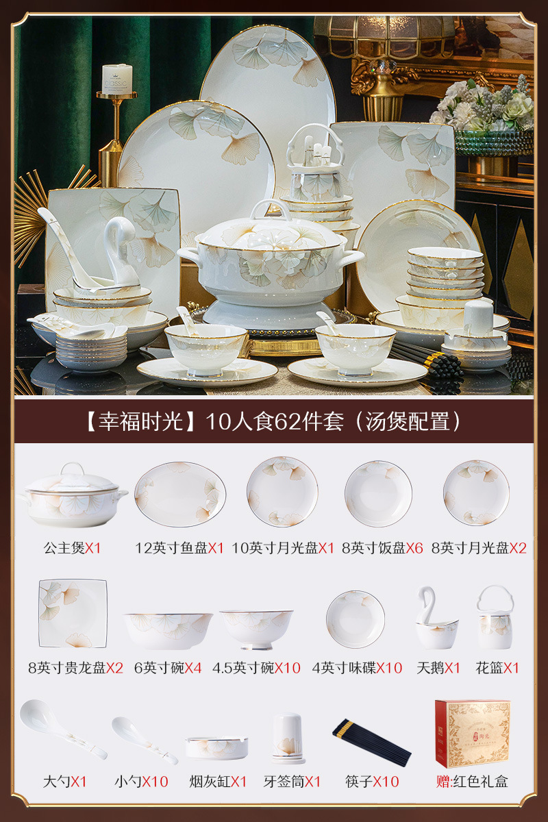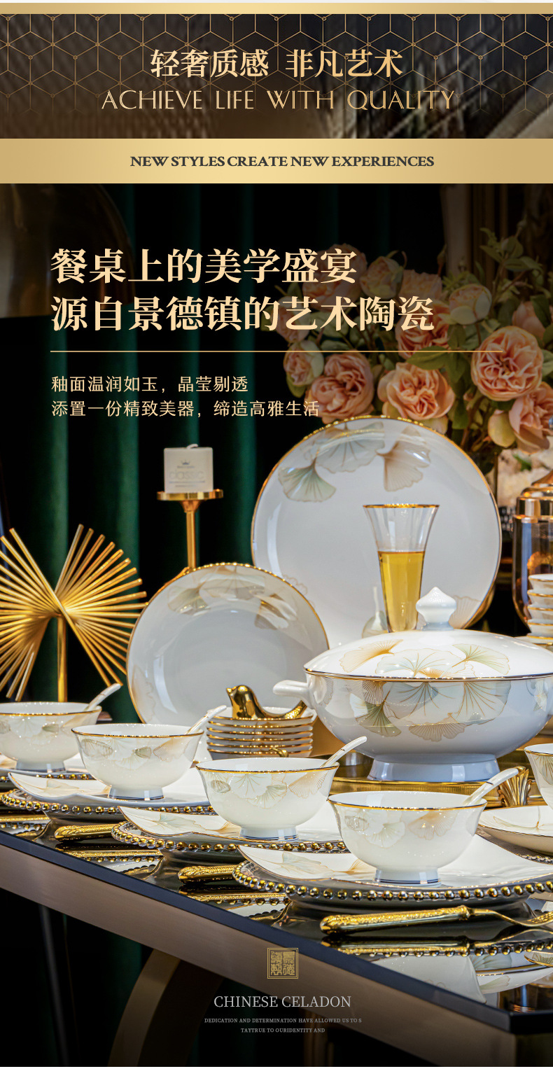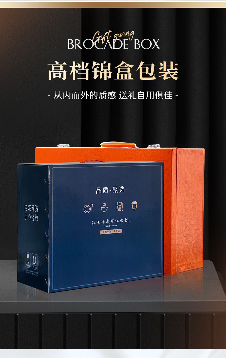 景德镇陶瓷餐具礼盒套装家用乔迁礼物送礼碗盘碗具套装中式骨瓷碗
