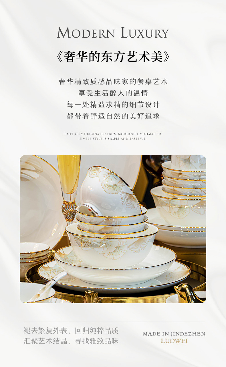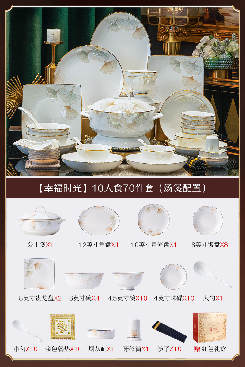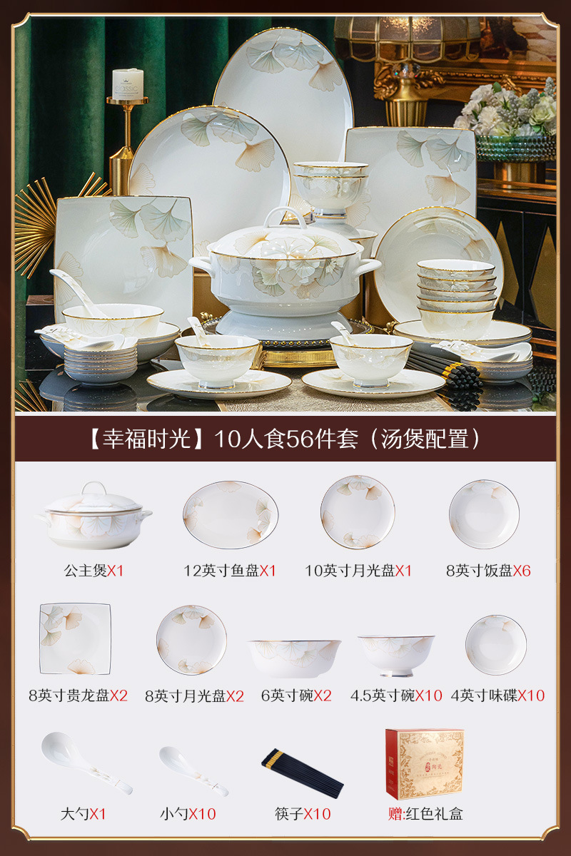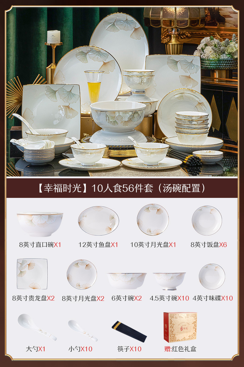 景德镇陶瓷餐具礼盒套装家用乔迁礼物送礼碗盘碗具套装中式骨瓷碗