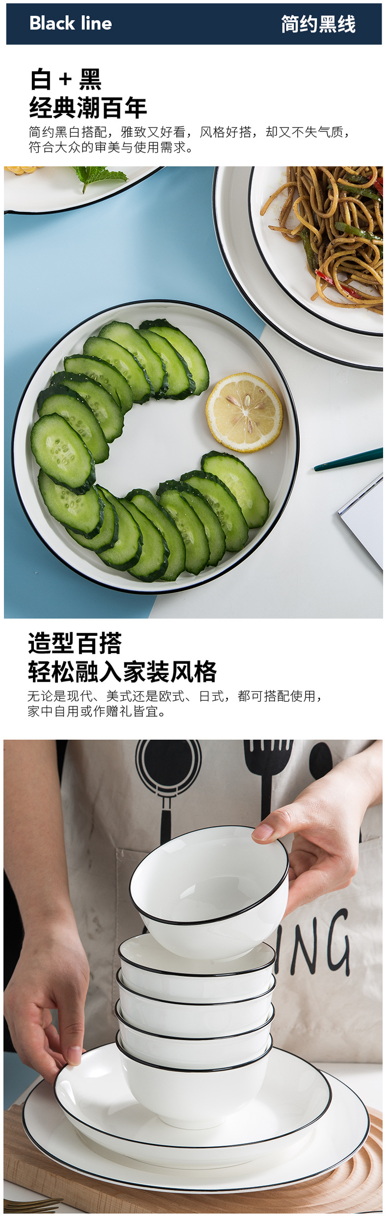 景德镇陶瓷碗釉下彩家用餐具套装碗碟盘泡面碗鱼盘汤碗黑线陶瓷碗