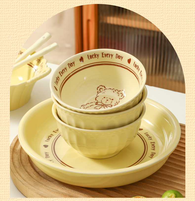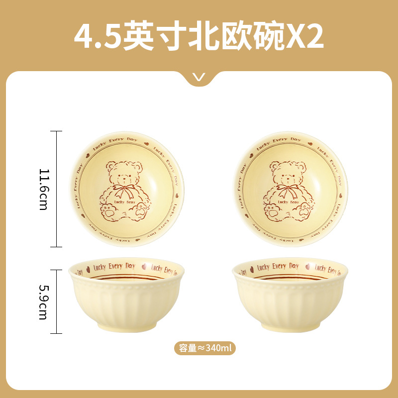 特别好看的饭碗奶白色陶瓷碗米饭碗小碗可爱餐具普通家用碗碟套装