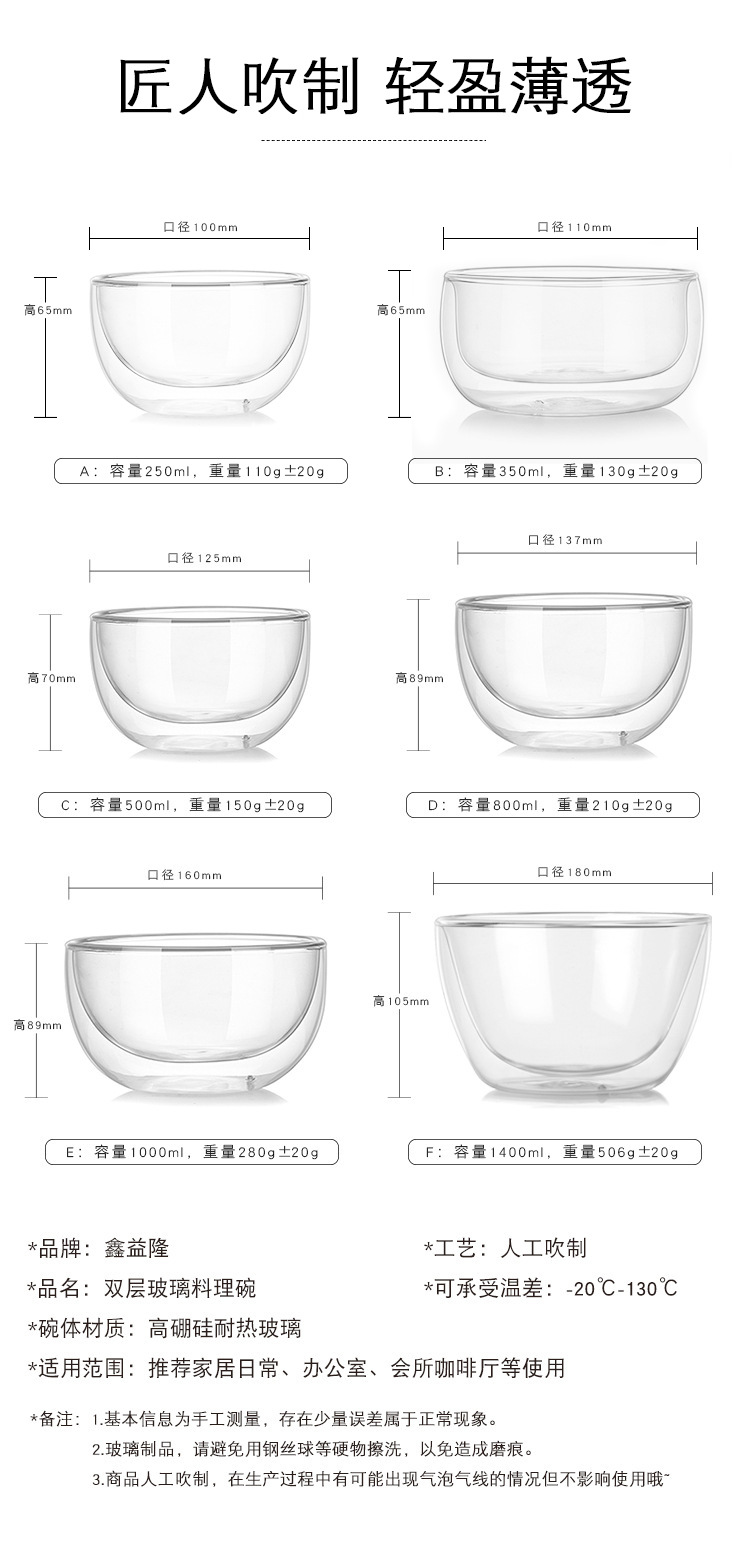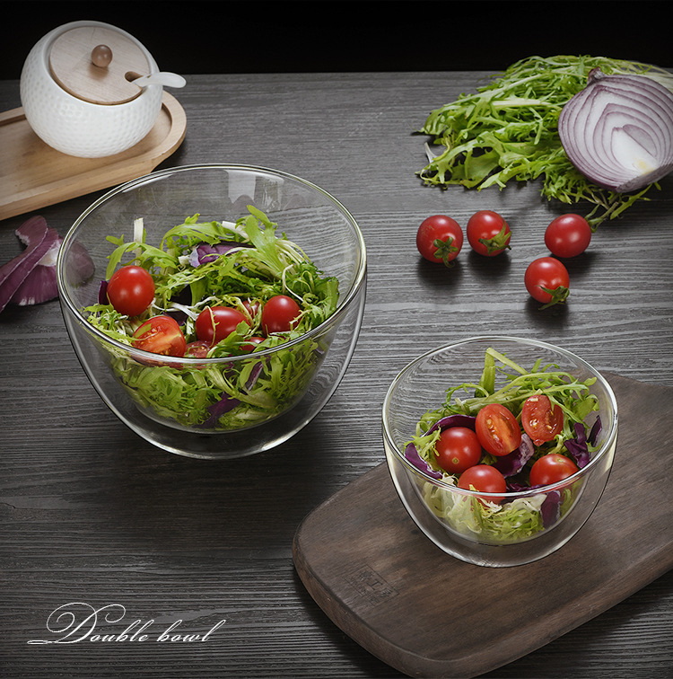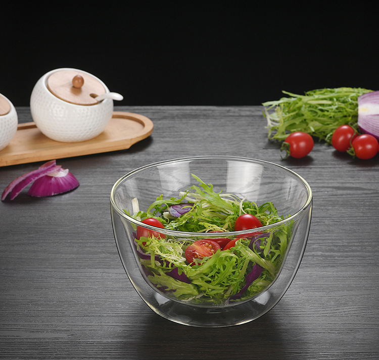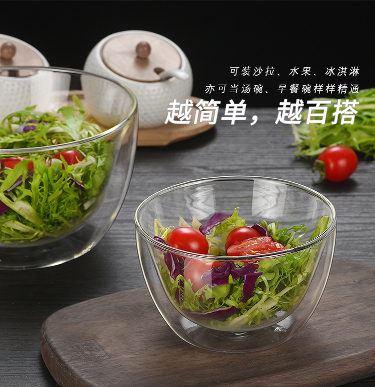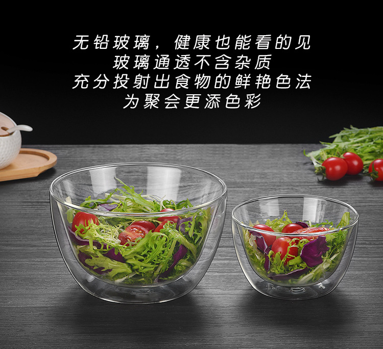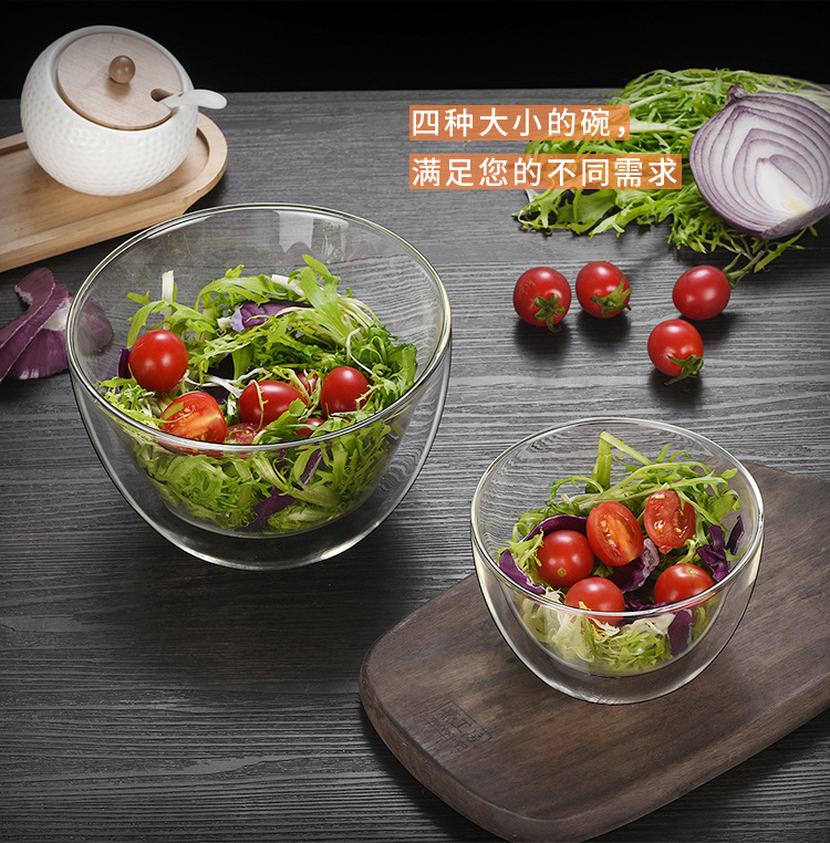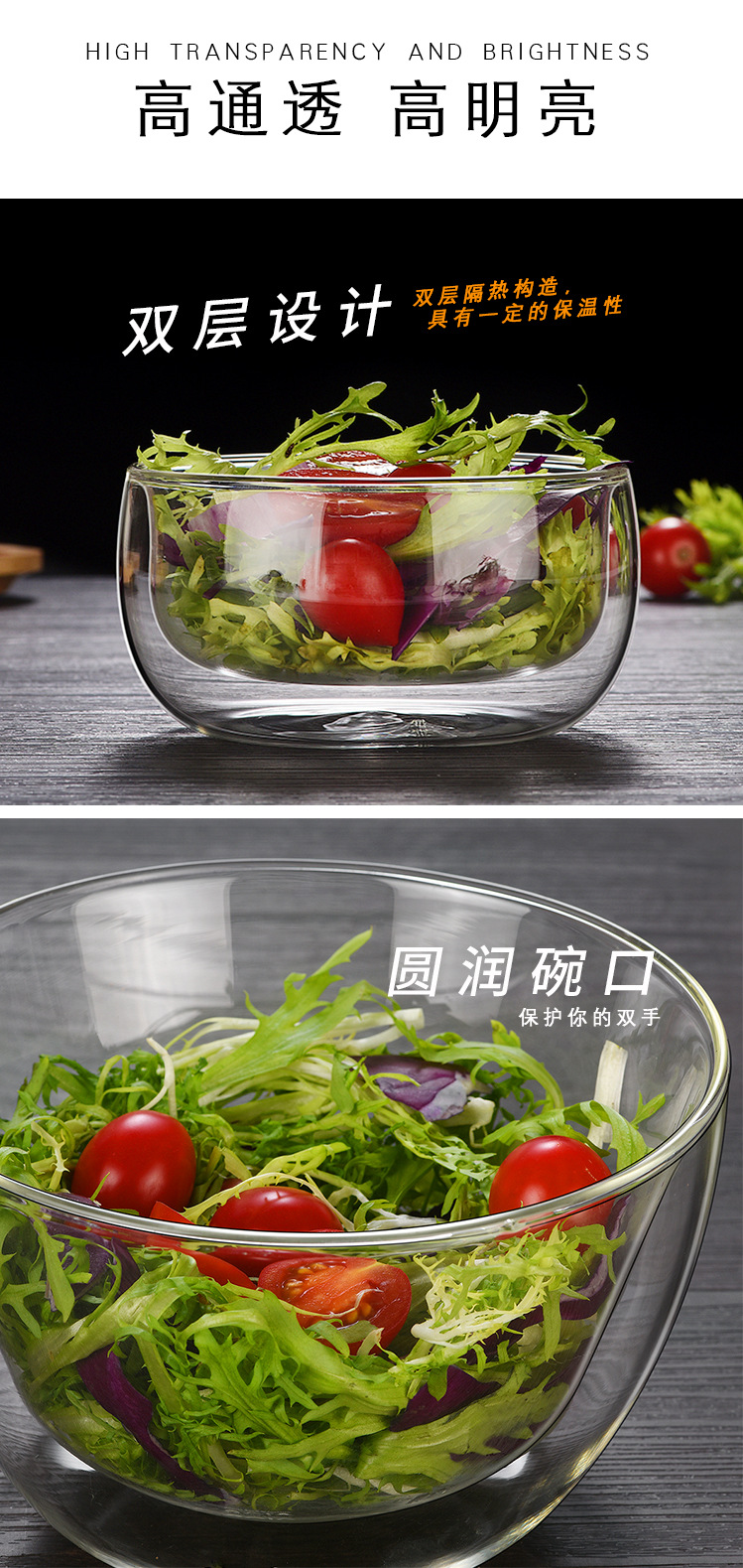 厂家批发家用双层玻璃碗 高硼硅耐热玻璃餐具 透明水果沙拉碗