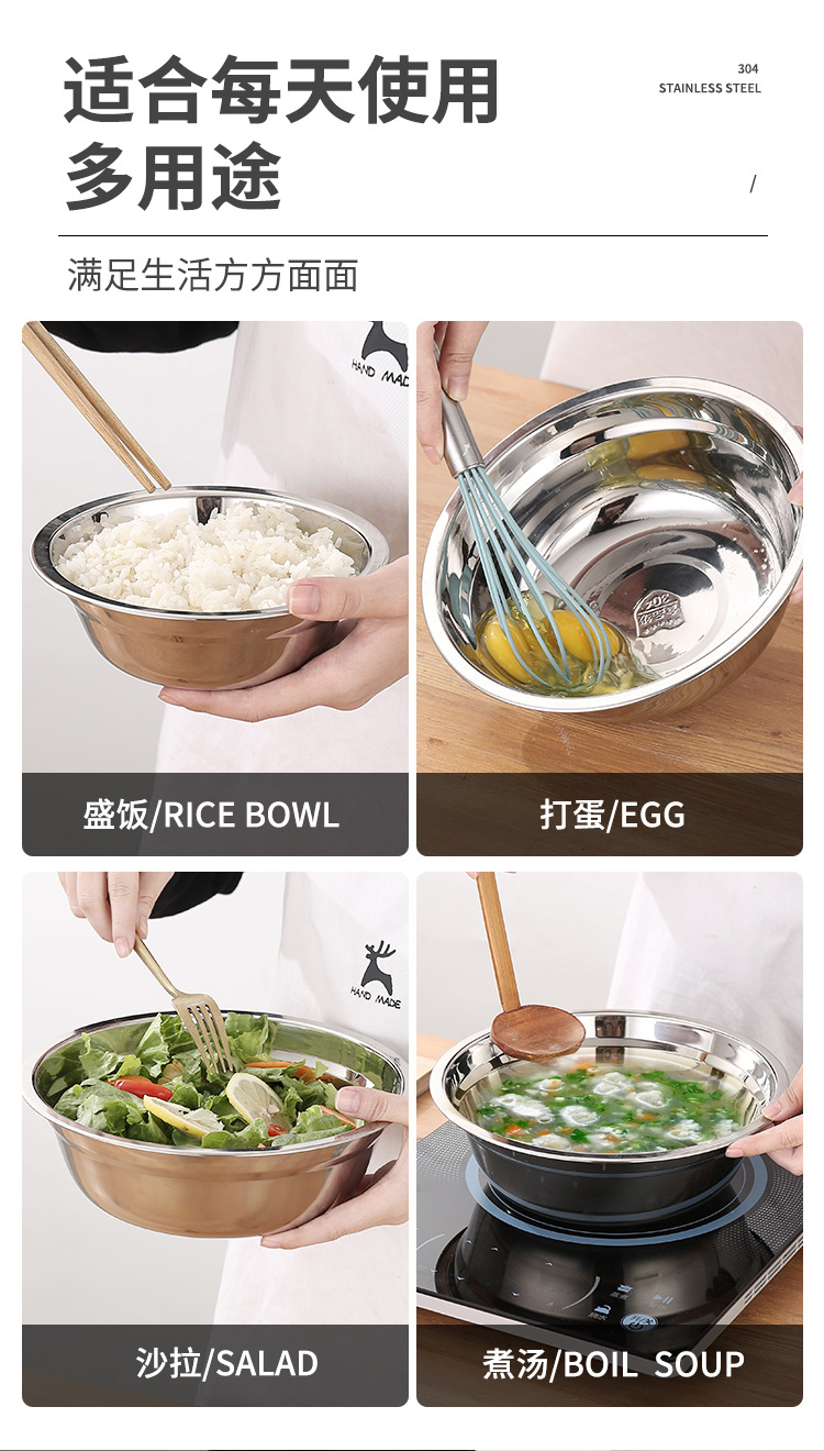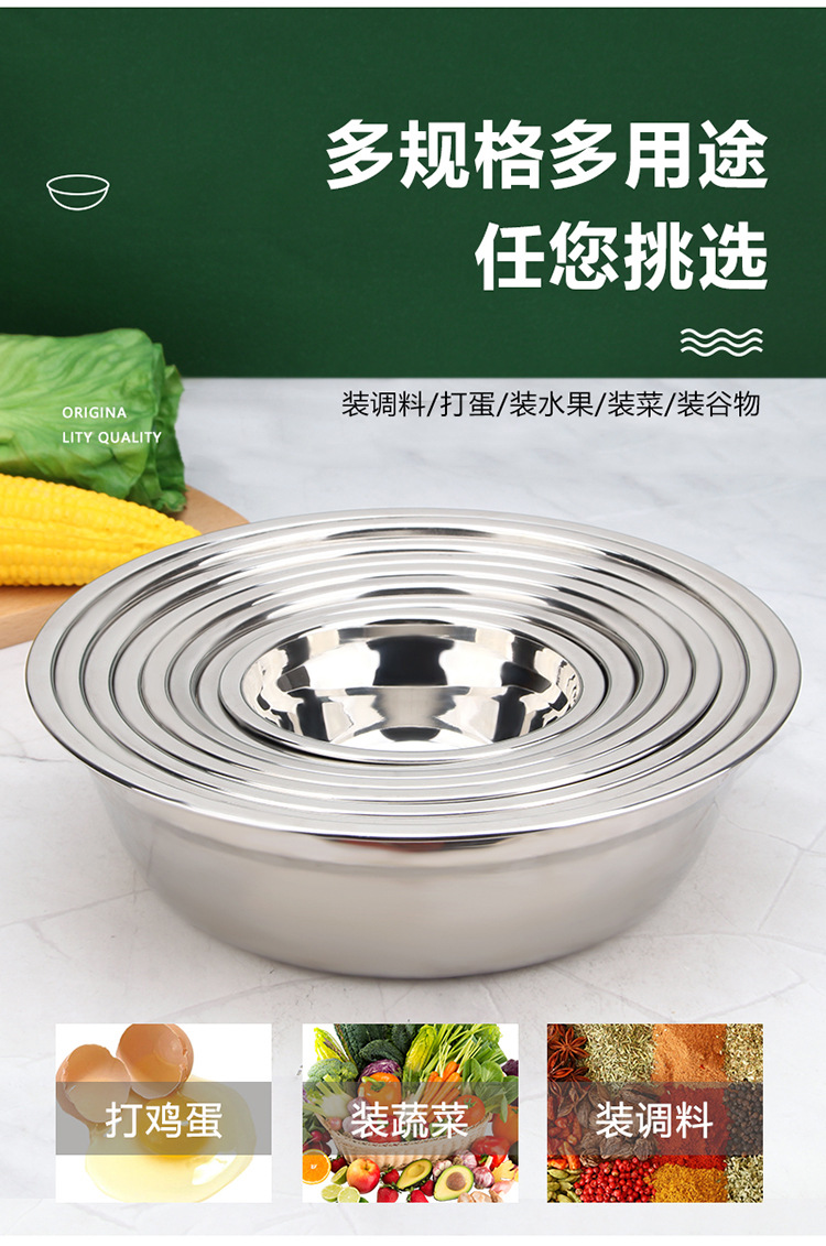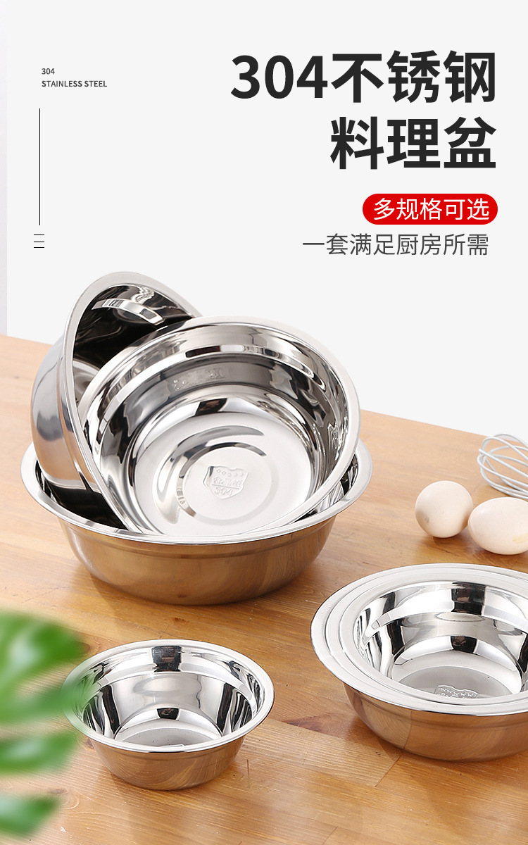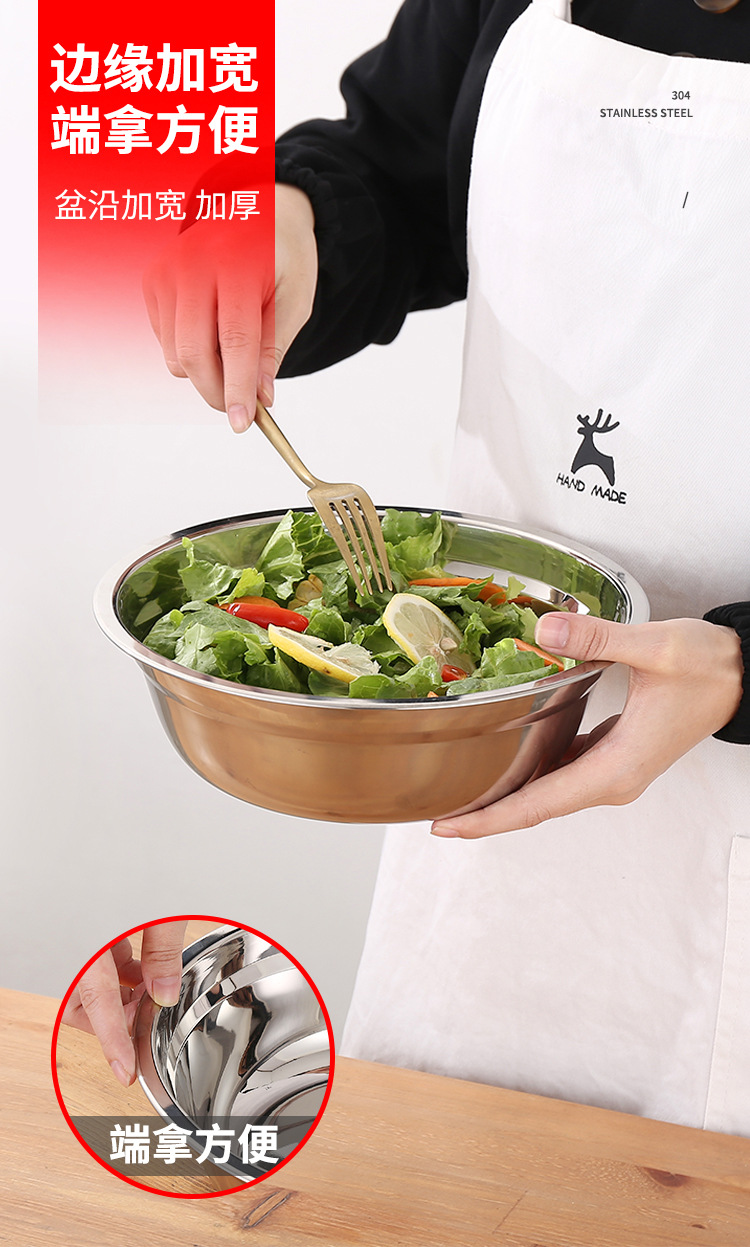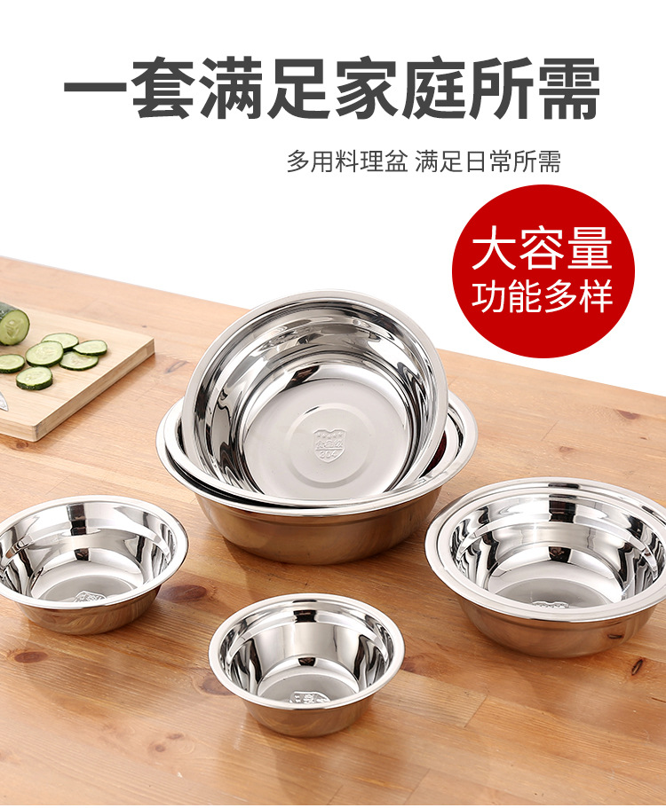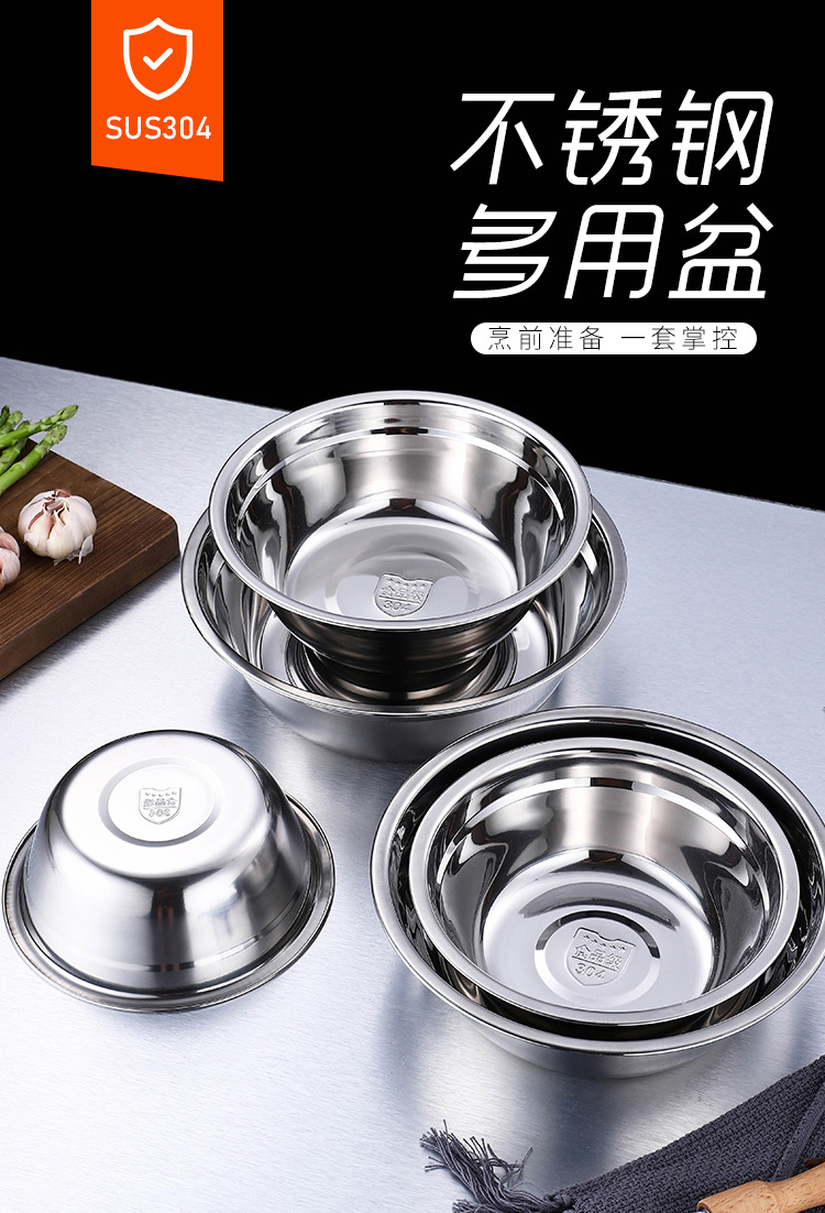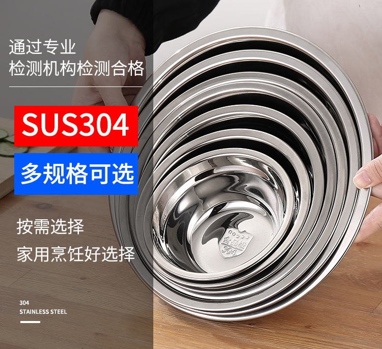 304不锈钢盆批发 加厚商用厨房多用汤盆汤碗 家用不锈钢面盆脸盆