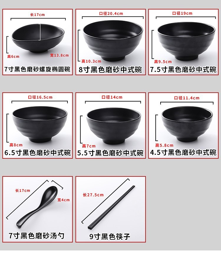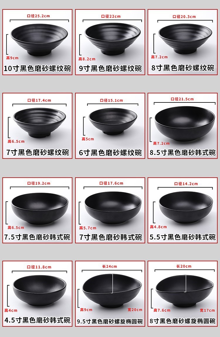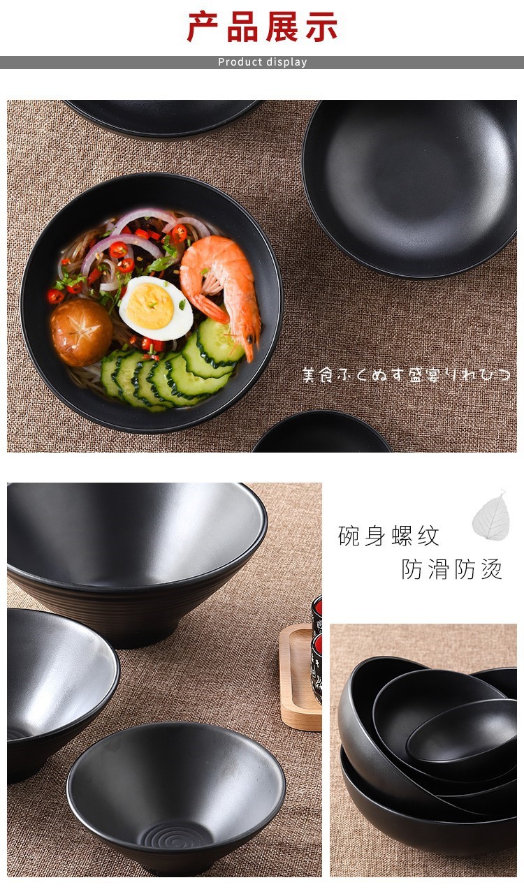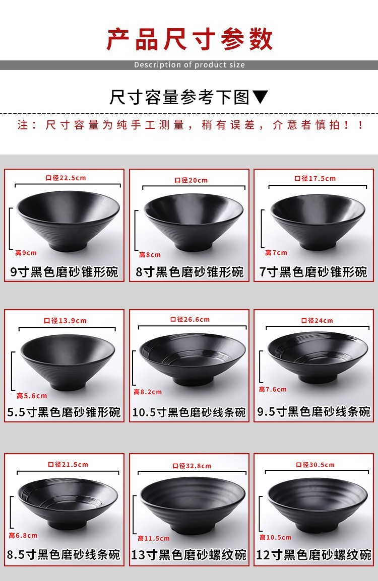 味千拉面碗日式密胺碗黑色磨砂餐具商用麻辣烫碗大号面碗螺蛳粉碗