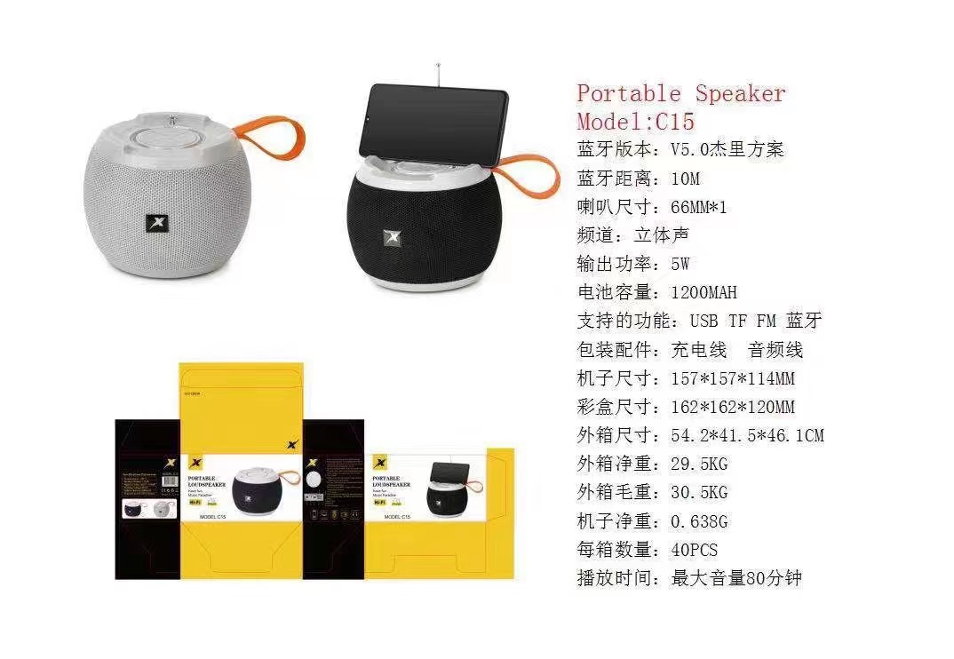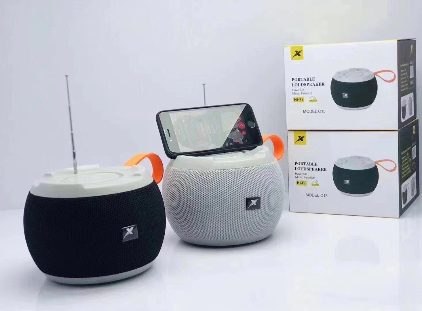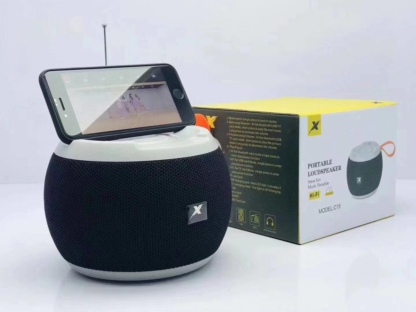 C15外贸蓝牙音箱 手提低音插卡优盘双喇叭手机支架鼓形蓝牙音响