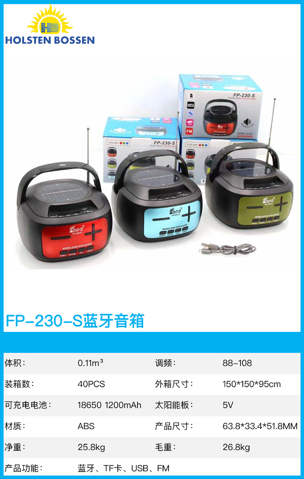 FP-230-S太阳能收音机 手提户外多彩带天线FM插卡蓝牙太阳能音响