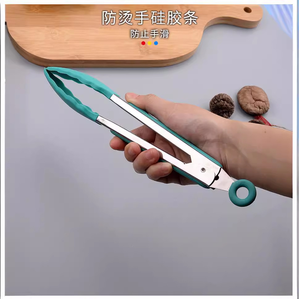 厨房工具夹子PP塑料食物夹防烫不锈钢食品夹烧烤夹烤肉夹牛排夹家