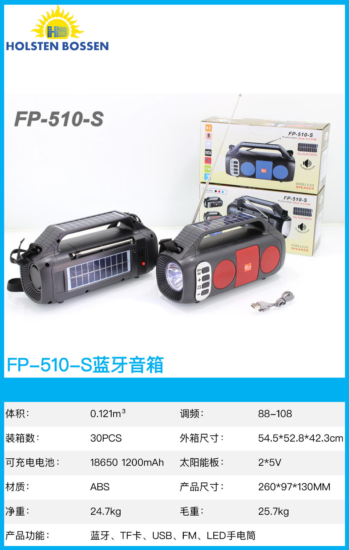 FP-510-S太阳能音响手提带天线收音FM插卡U盘手电热销蓝牙音箱