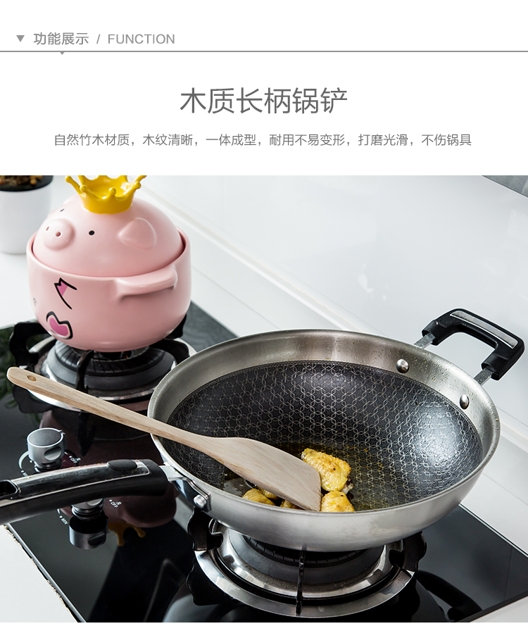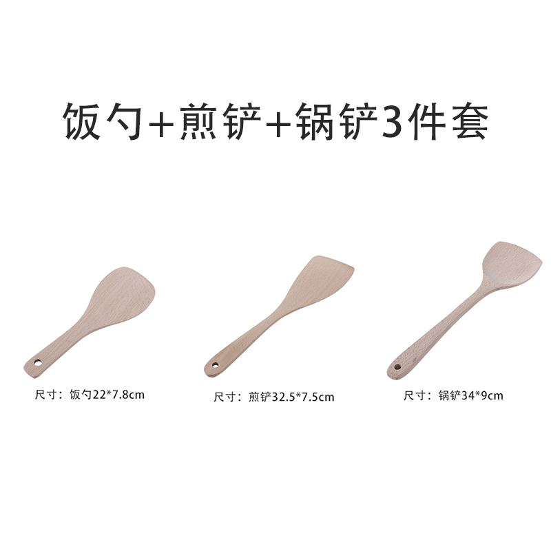 3JO厨房长柄炒菜铲子木质锅铲不粘锅家用木制厨具耐高温小木