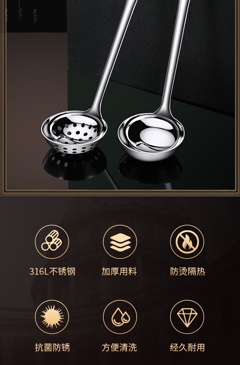 | 316 stainless steel soup ladle + colander 6.5(316不锈钢汤勺+漏勺6.5cm) | USD $3.58 | 2969 piece available |