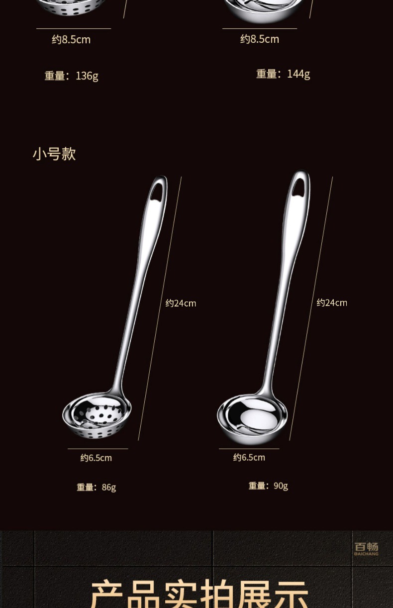 | 316 stainless steel soup ladle + colander 8.5cm(316不锈钢汤勺+漏勺8.5cm) | USD $4.85 | 1073 piece available |
