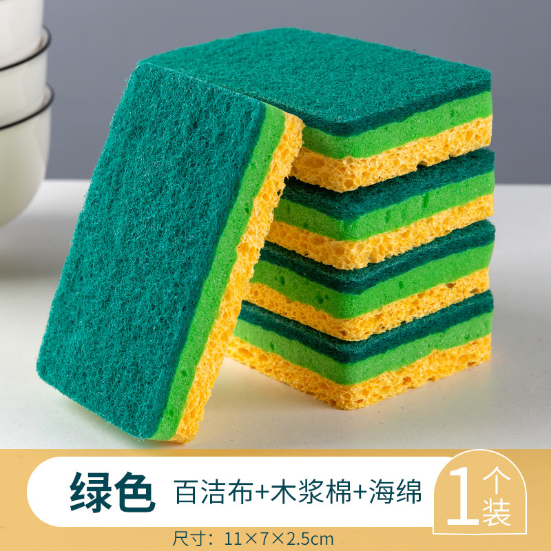 木浆棉海绵擦三层洗碗棉海绵双面洗碗棉易风干厨房木浆海绵跨境