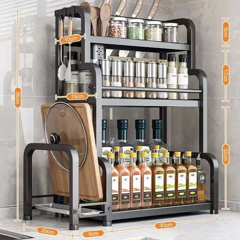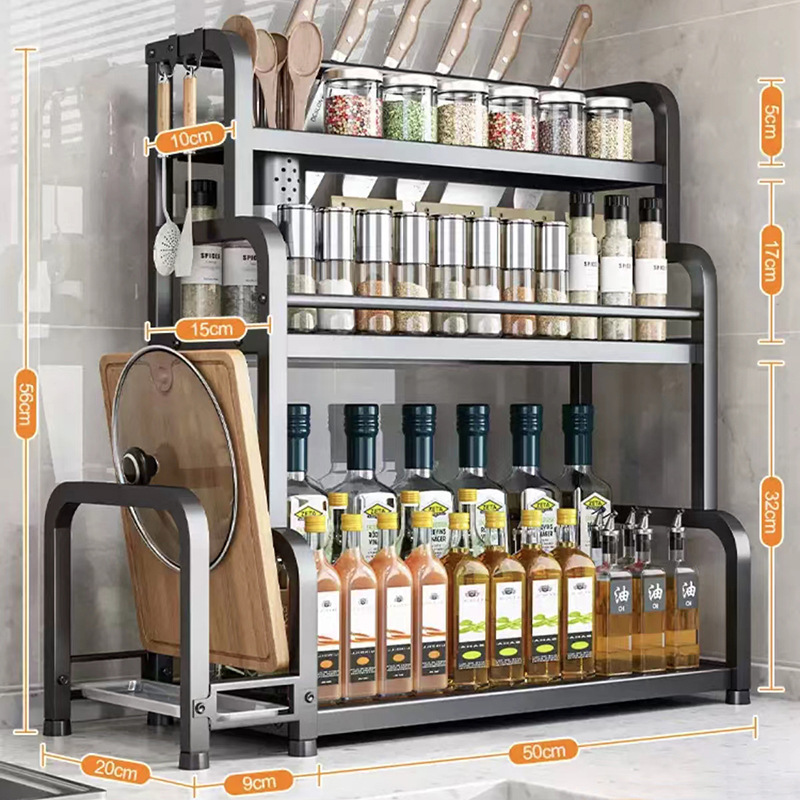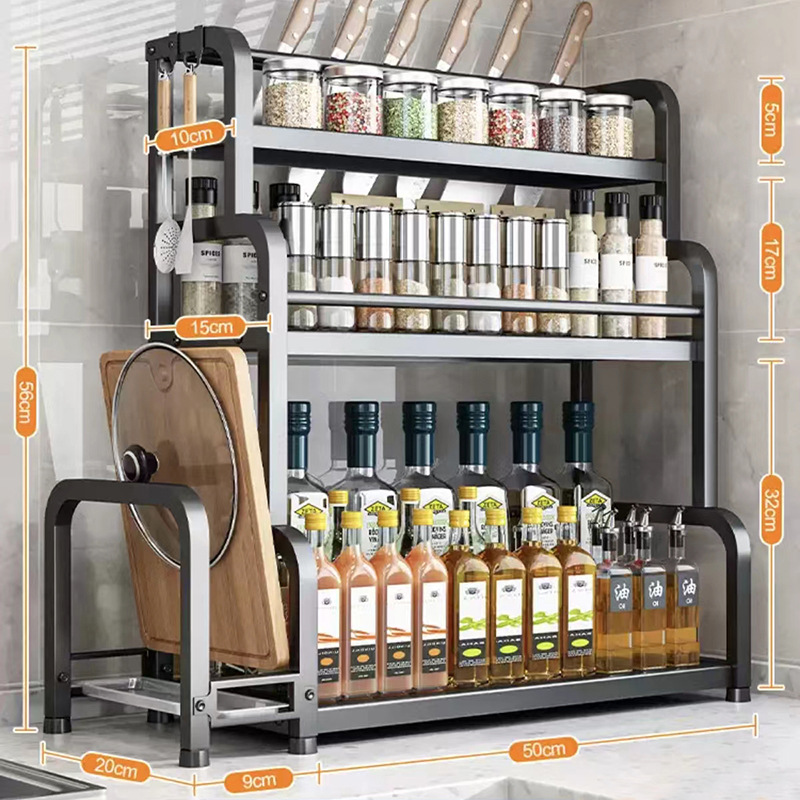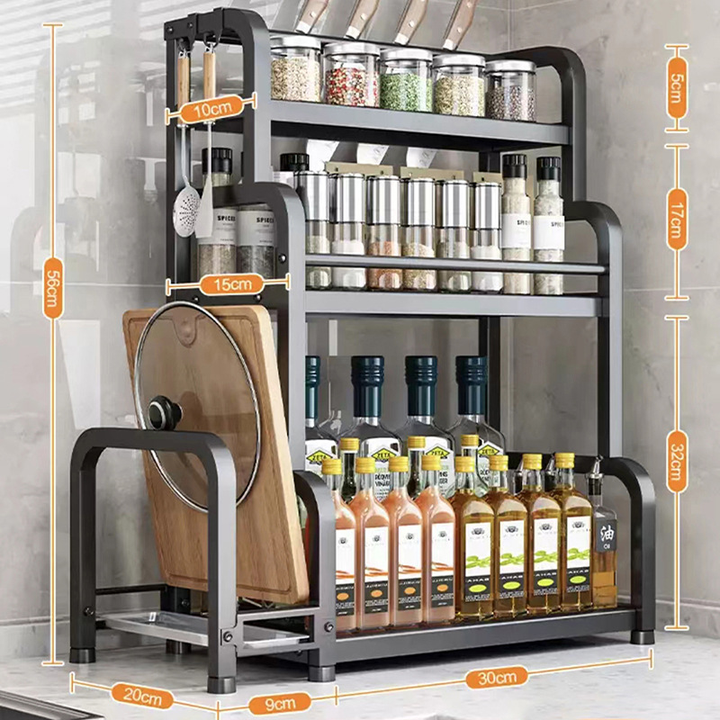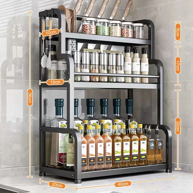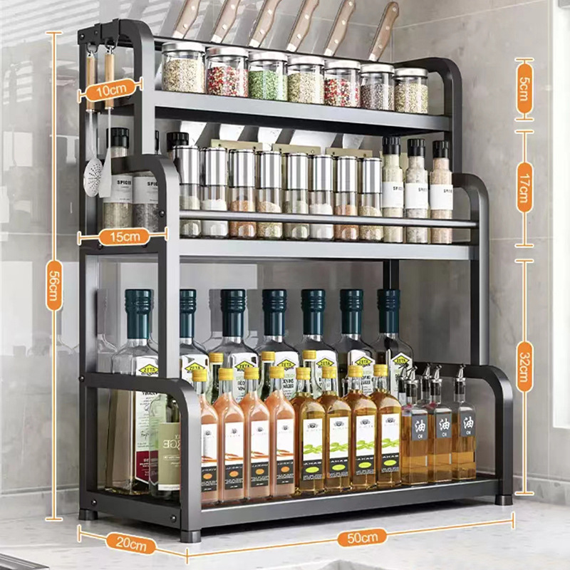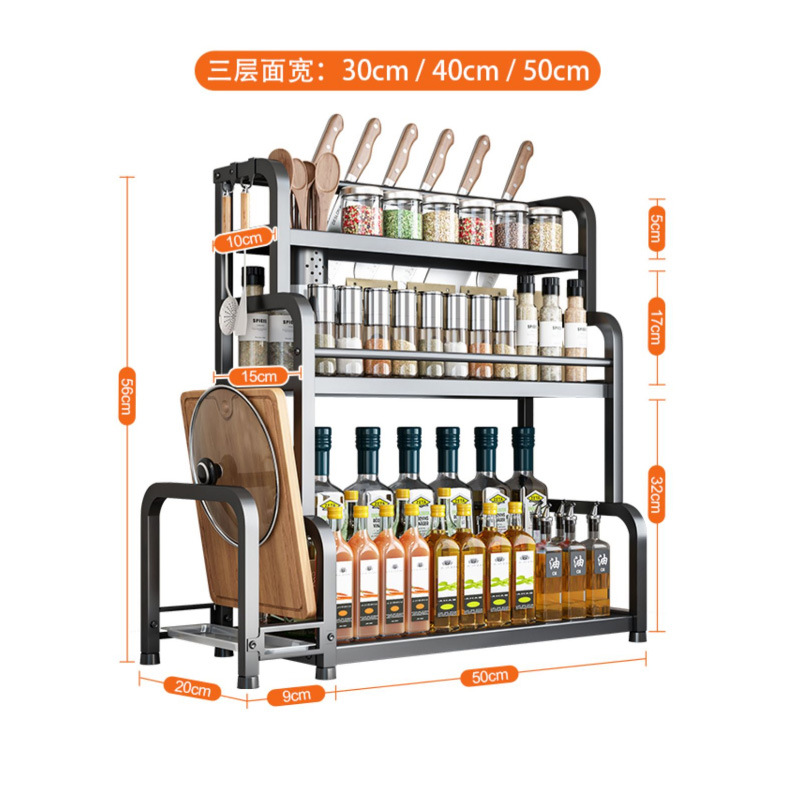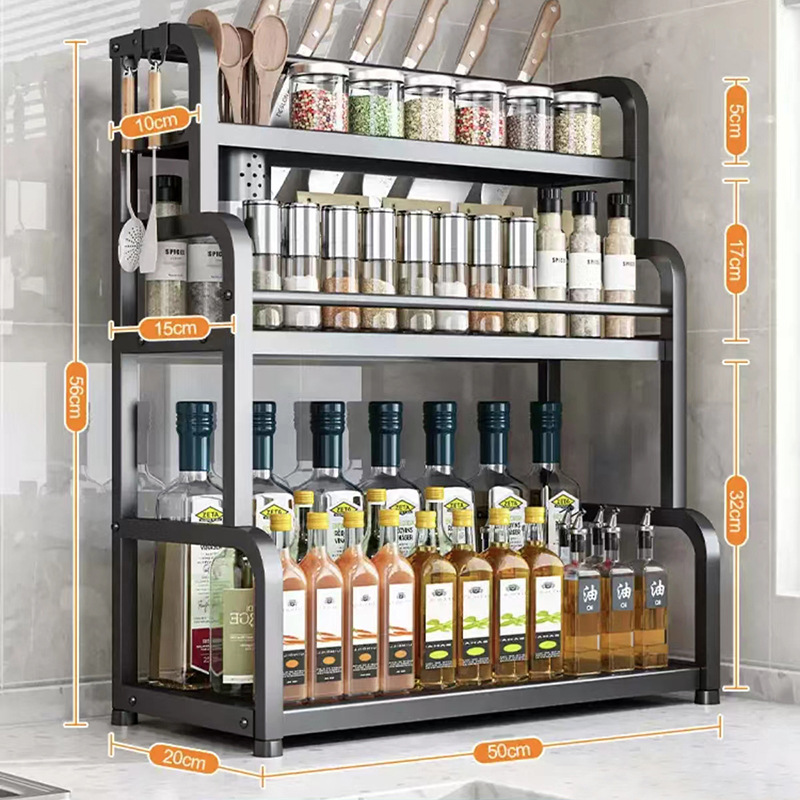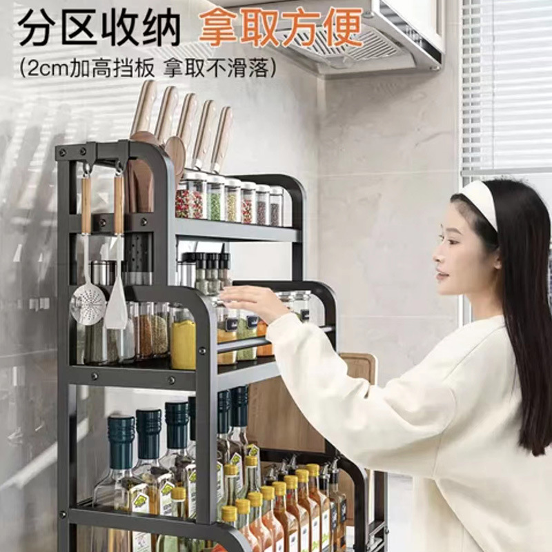 碳钢厨房置物架多层油盐酱醋收纳架折叠架免打孔调料架批发
