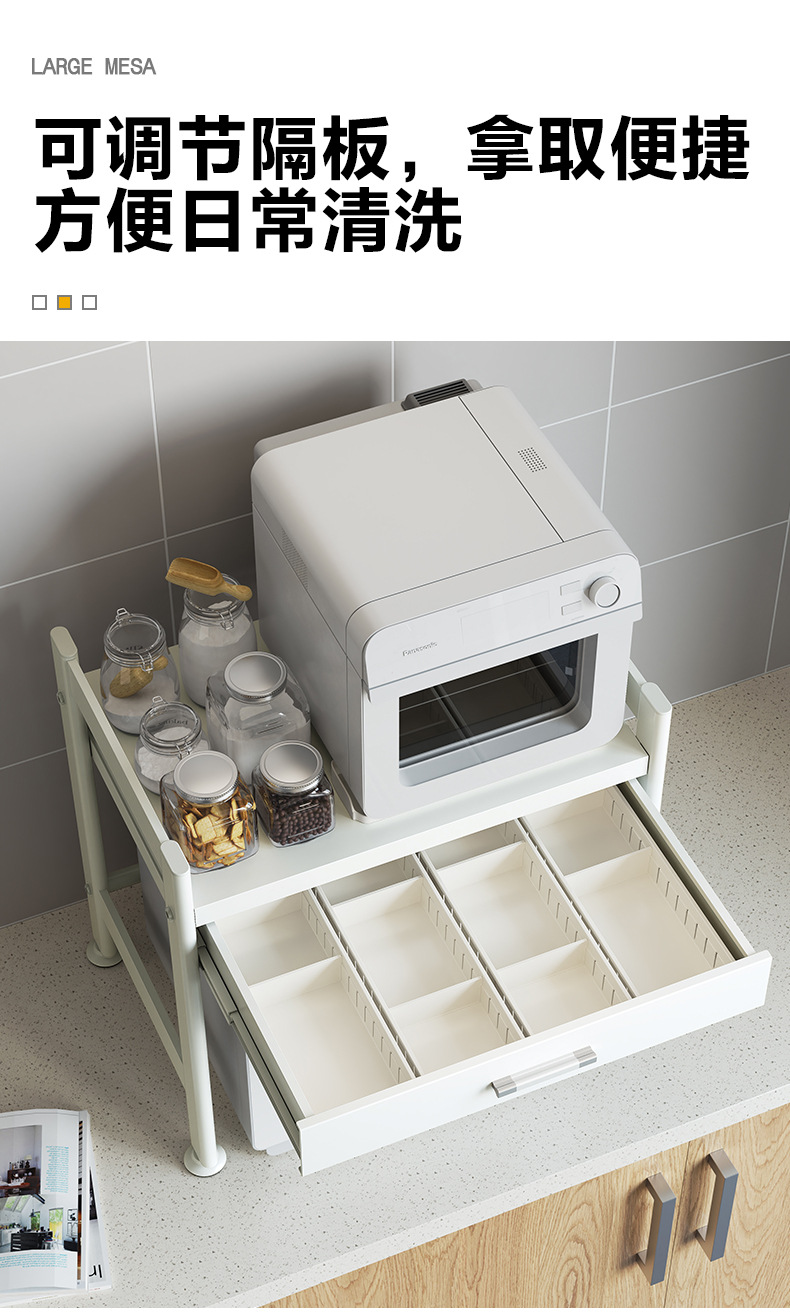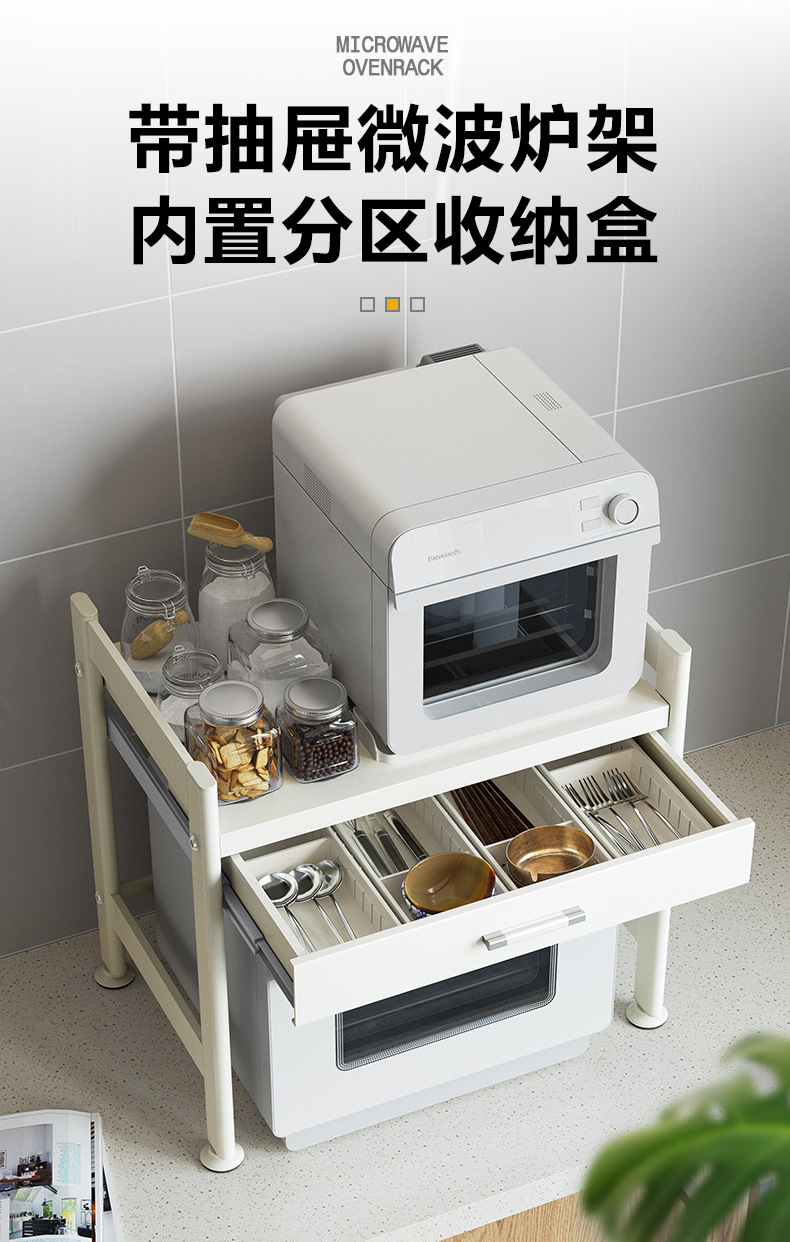 奶油风厨房桌面微波炉置物架专用架不锈钢台面收纳整理架厨房用品