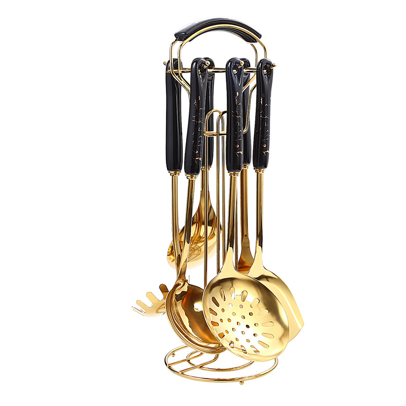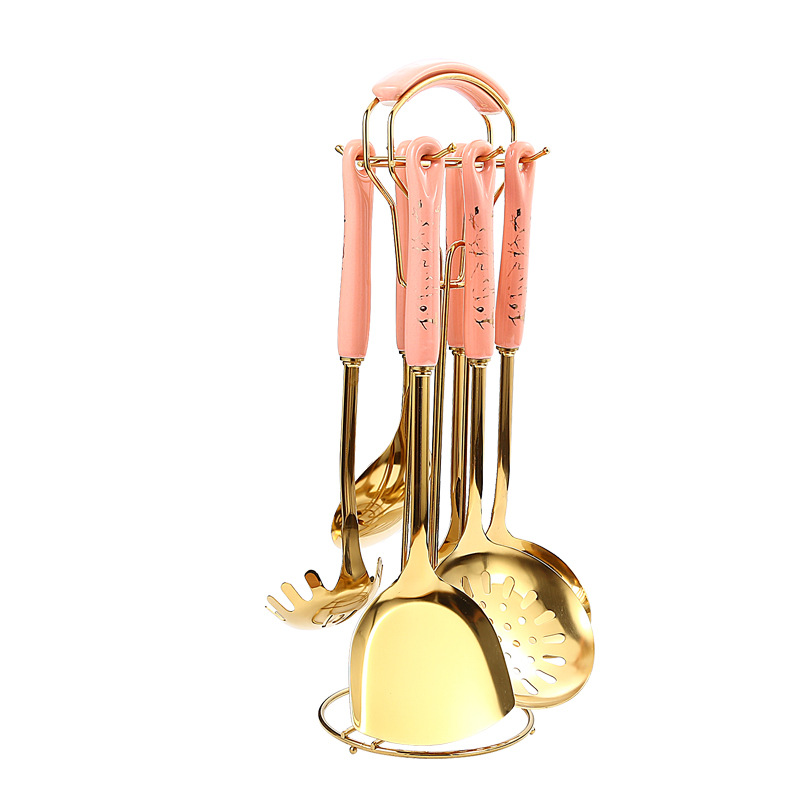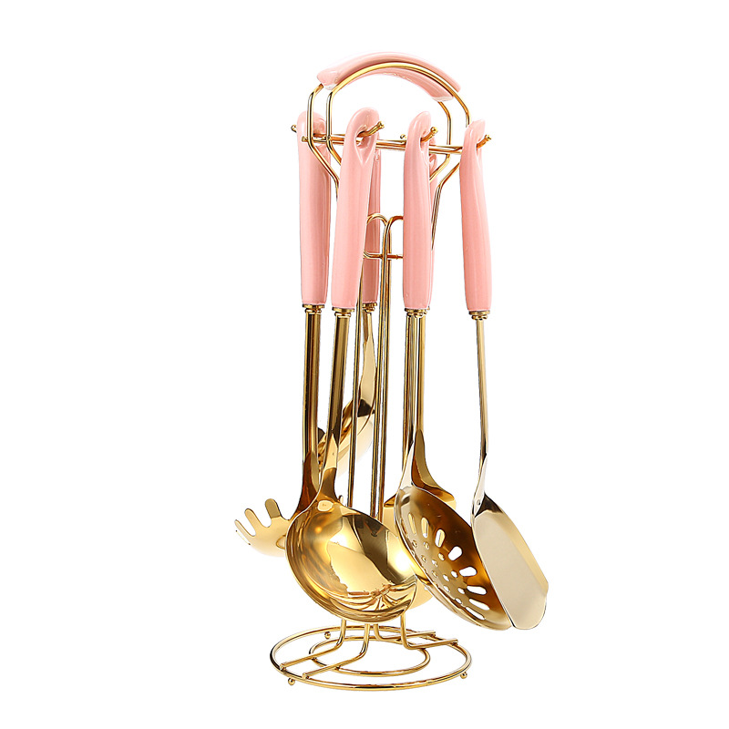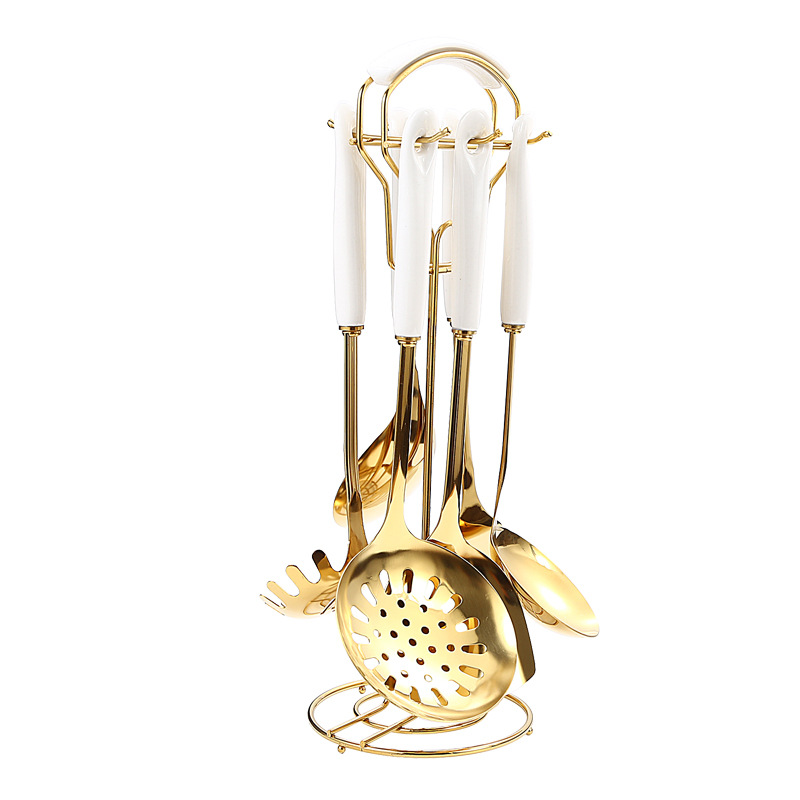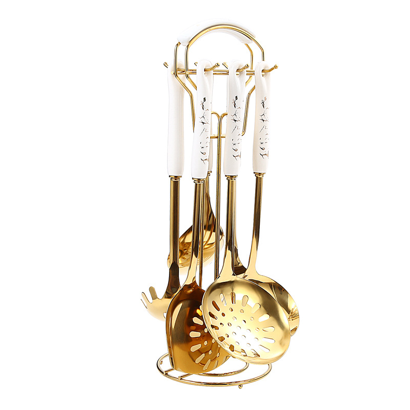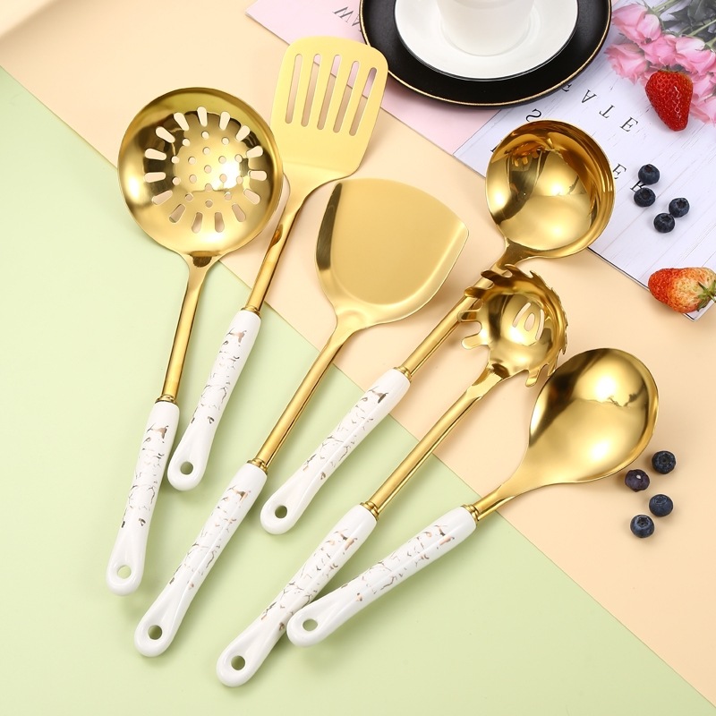 不锈钢锅铲家用厨房汤勺漏勺北欧ins轻奢陶瓷手柄厨具套装七件套