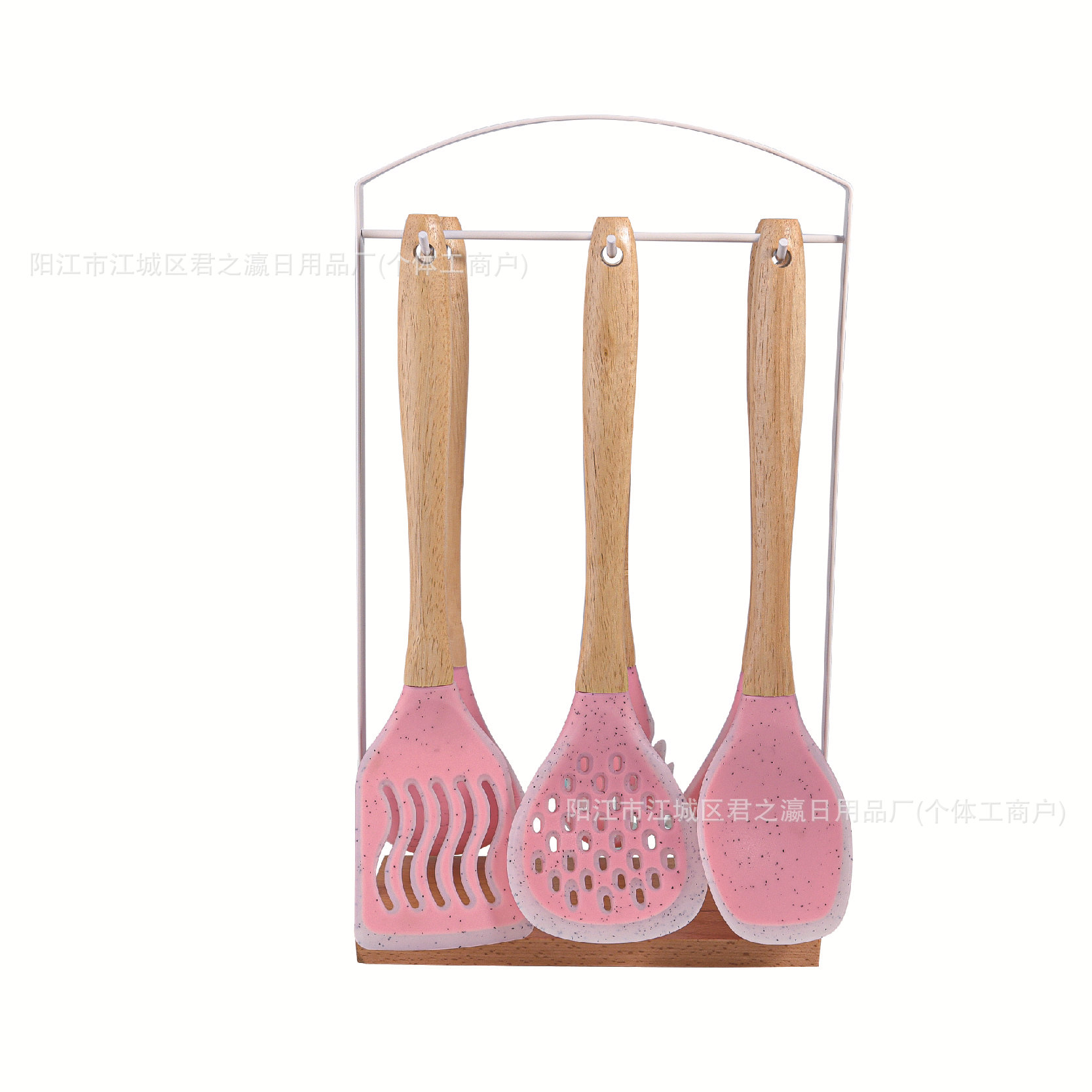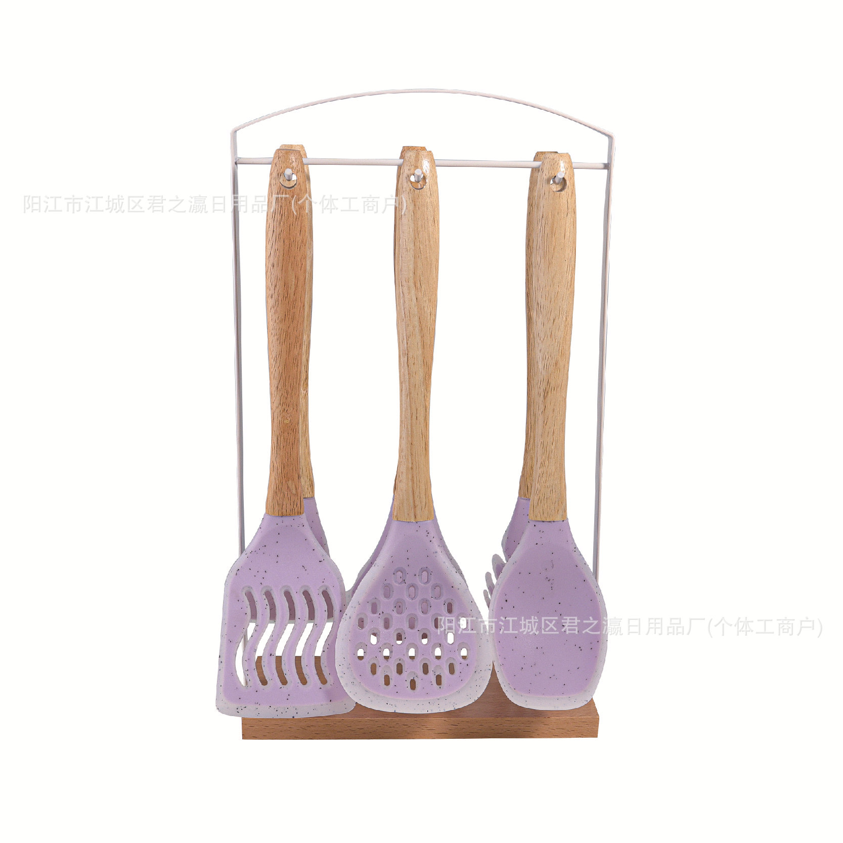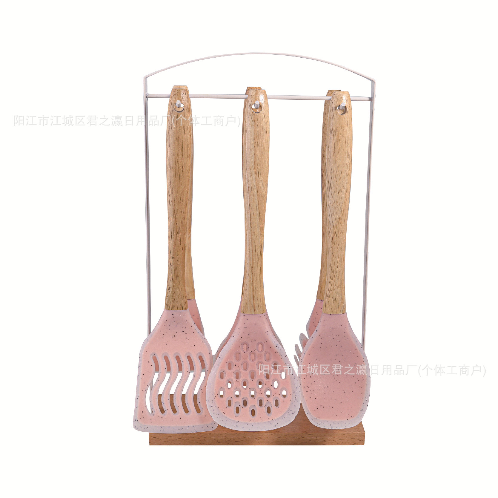跨境木柄硅胶厨具七套装厨房用品锅铲汤勺收纳架漏勺面捞铲勺套装